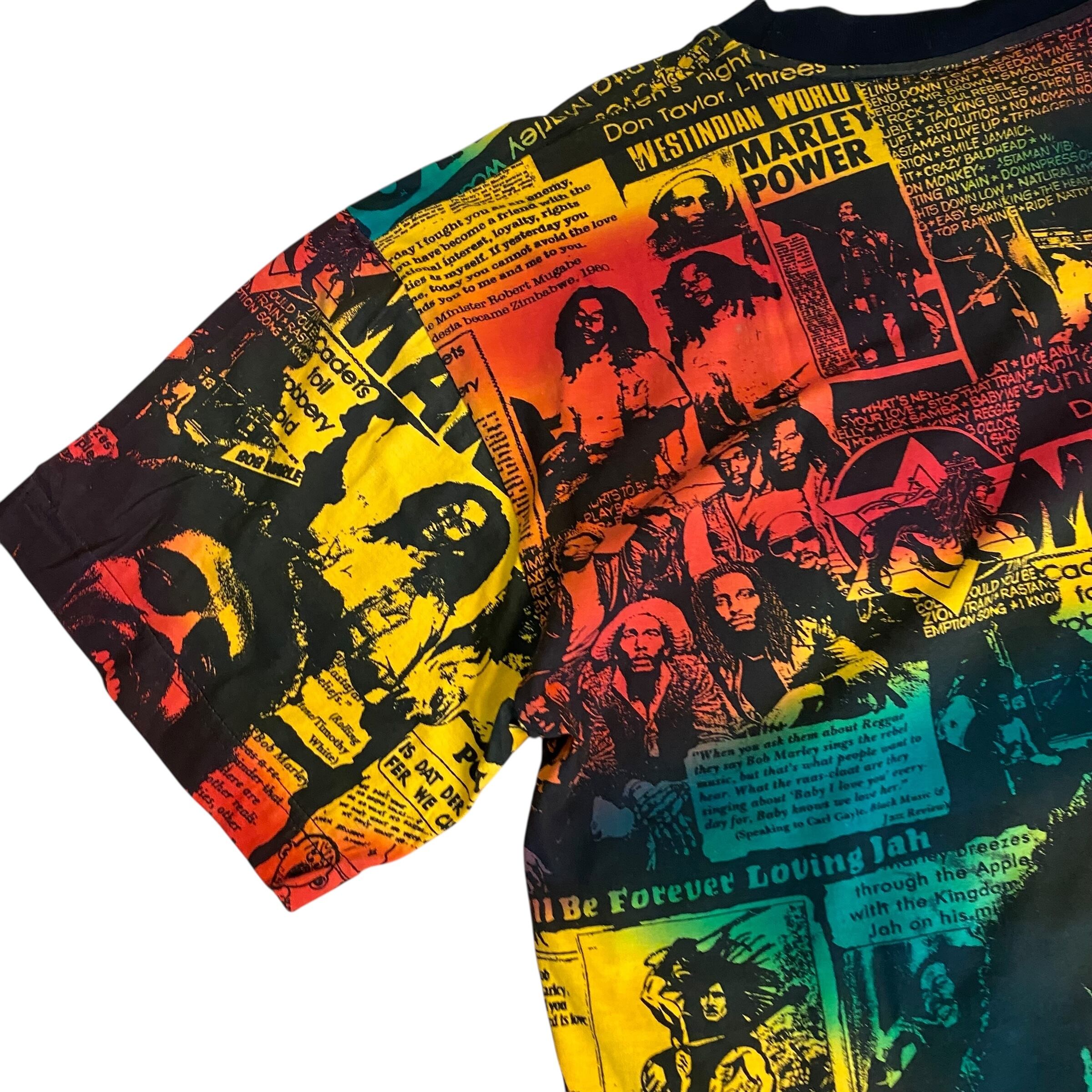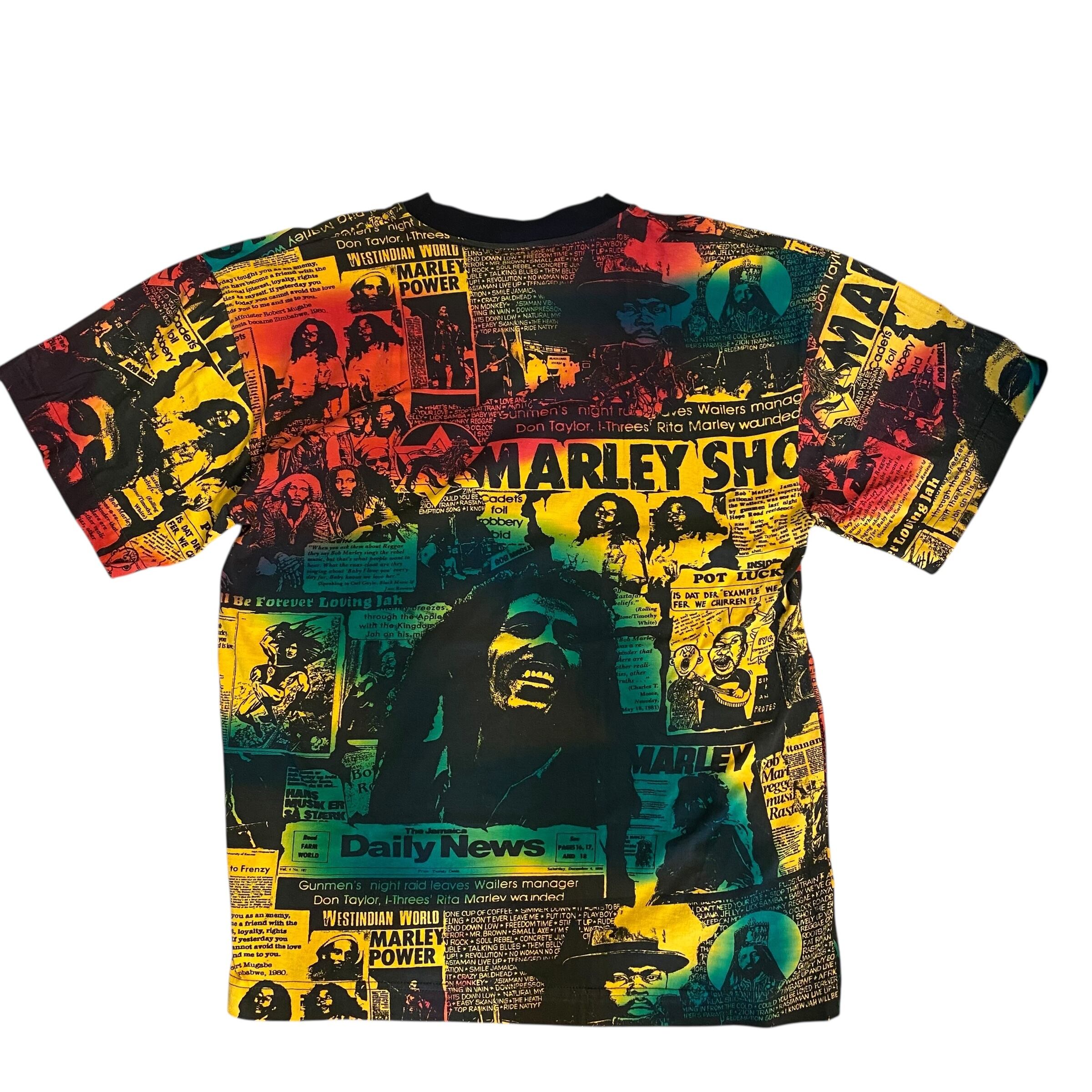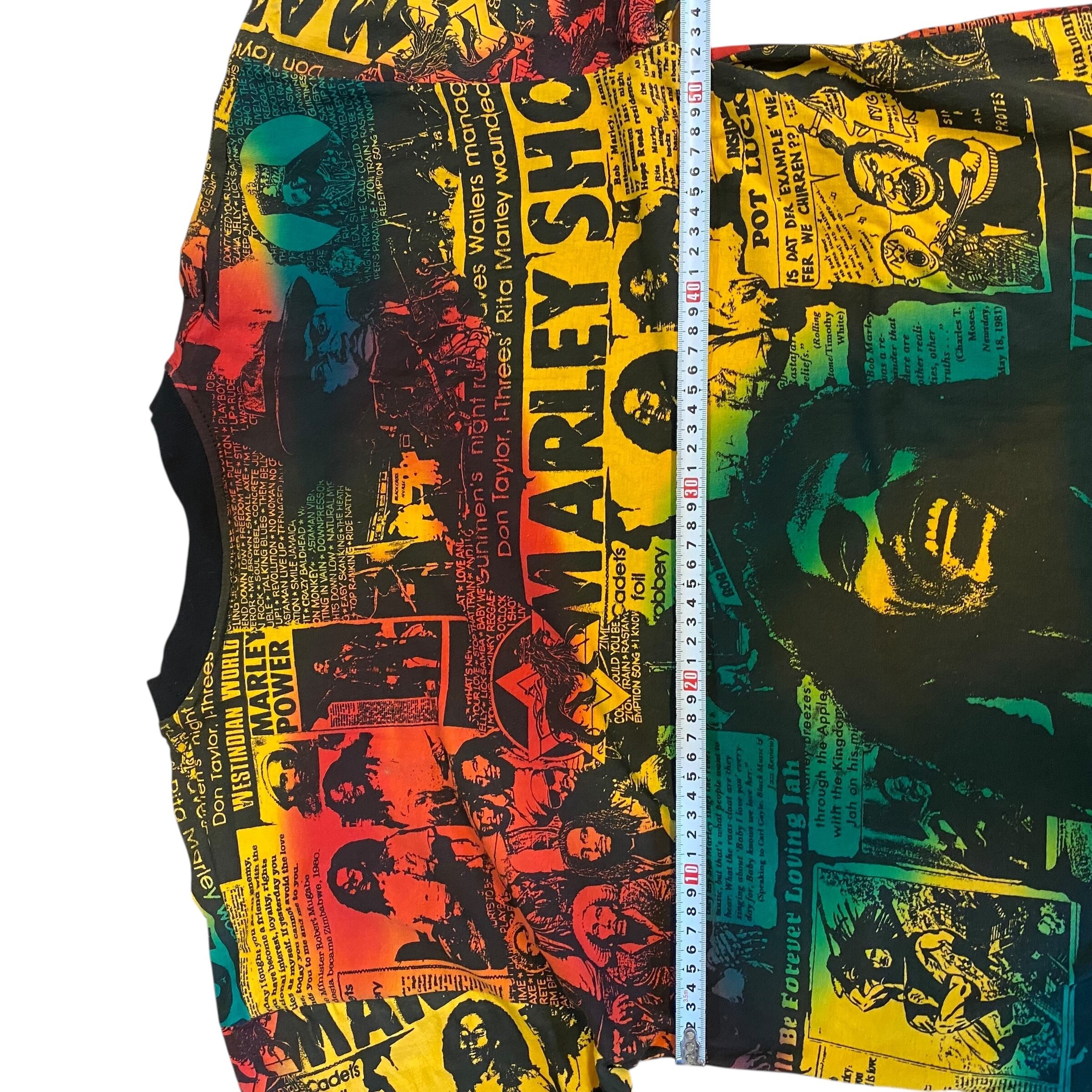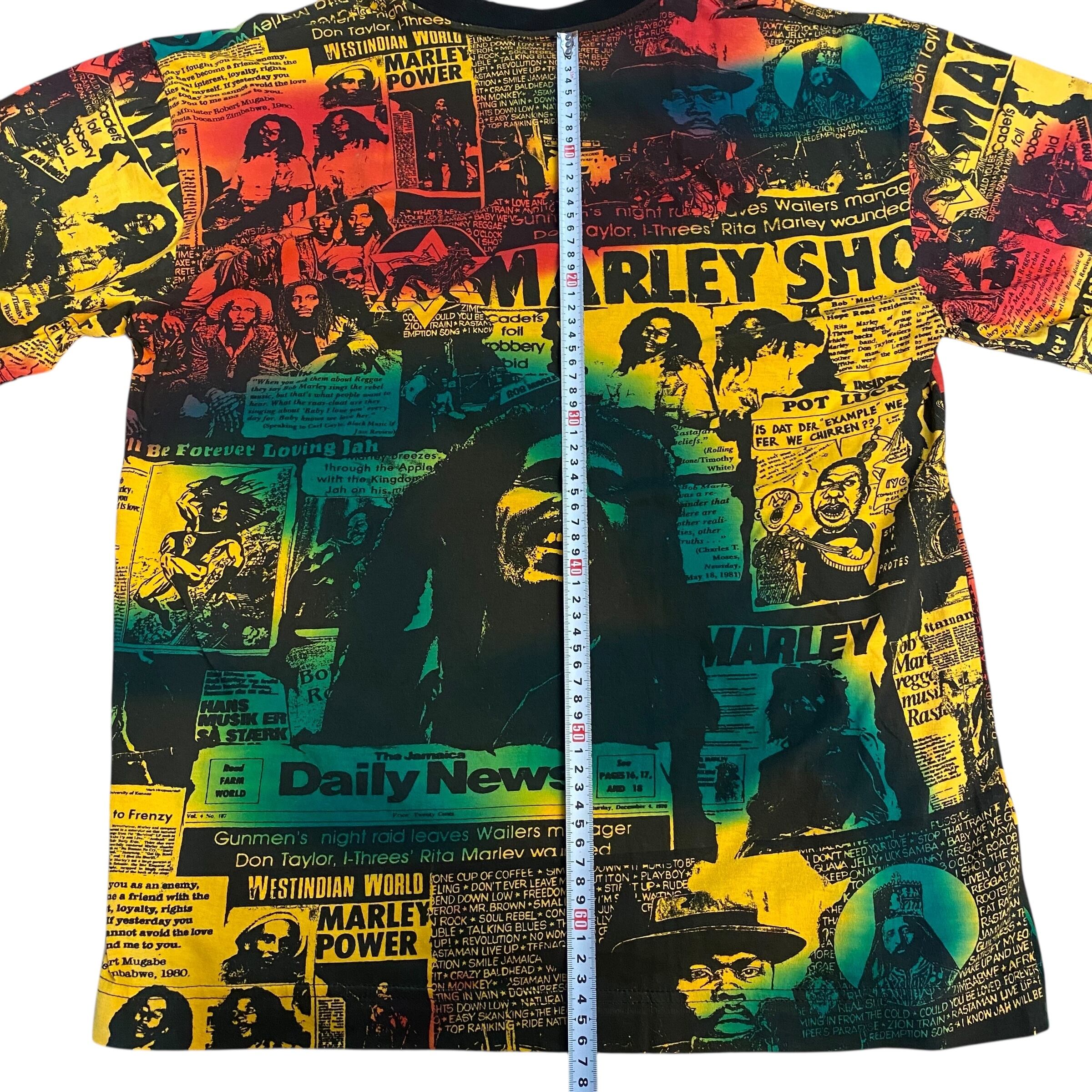 レゲエ界の重鎮ボブマーリーの総柄Tシャツです。ボブマーリーのTシャツは良く見かけますが、このアイテムは柄、プリント共に一級品