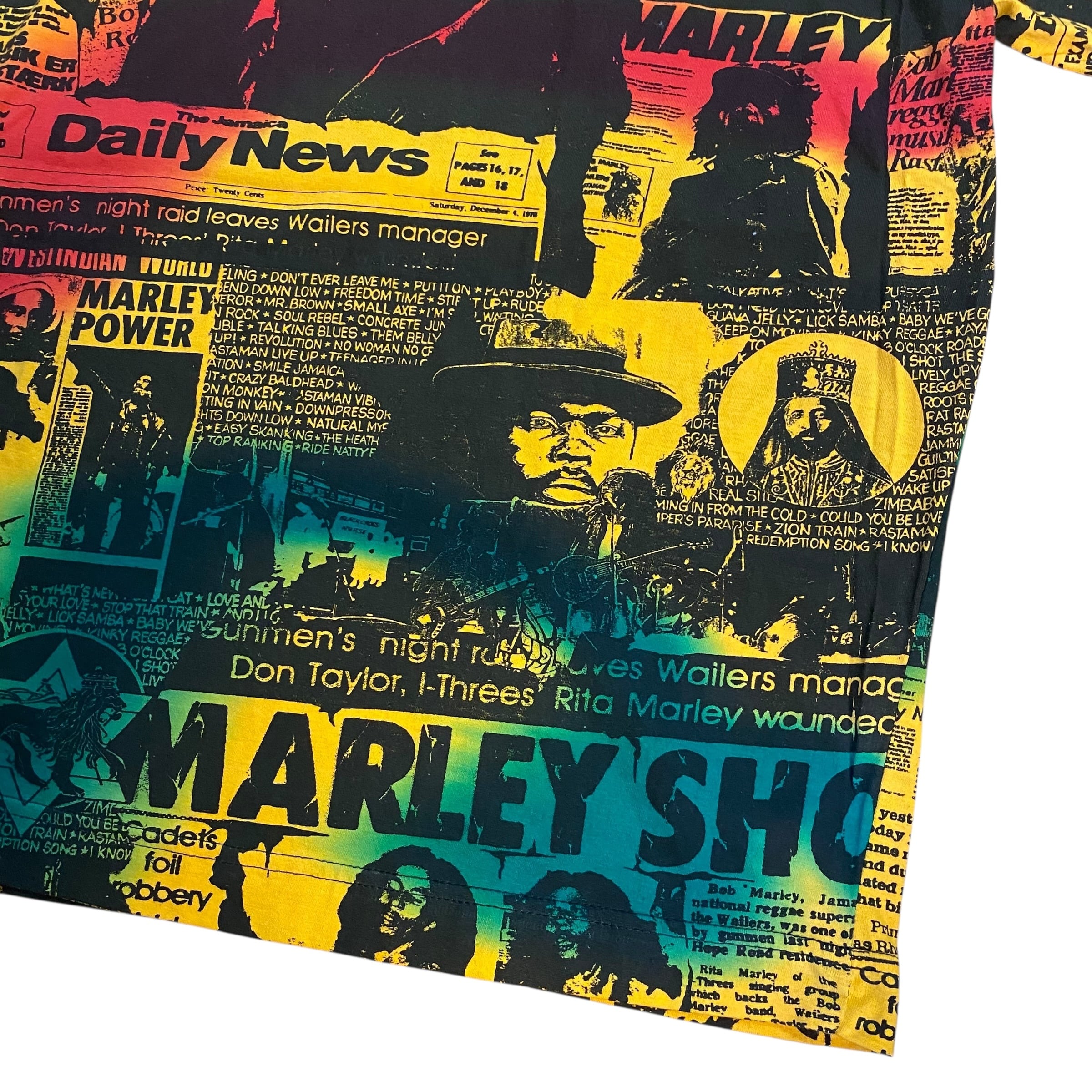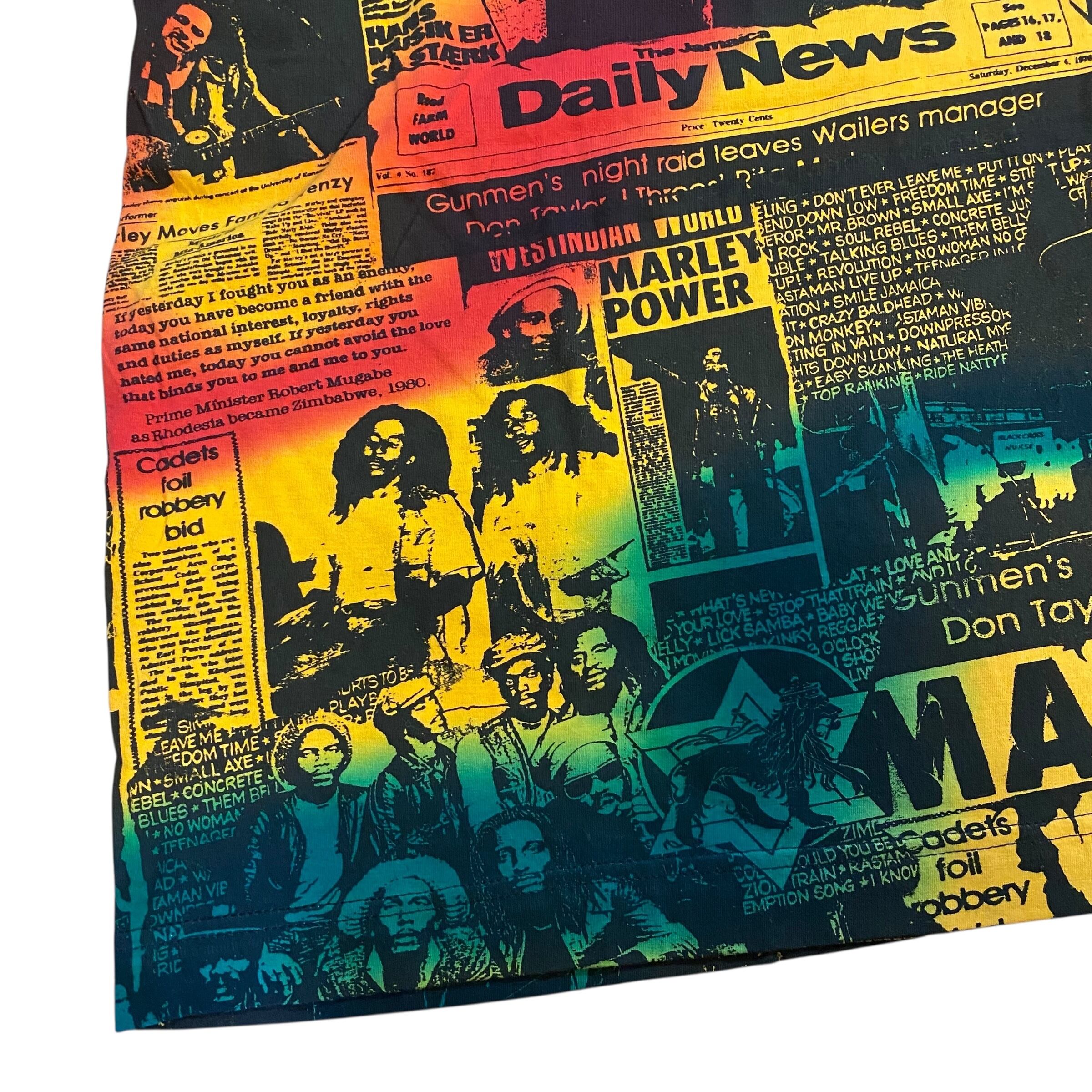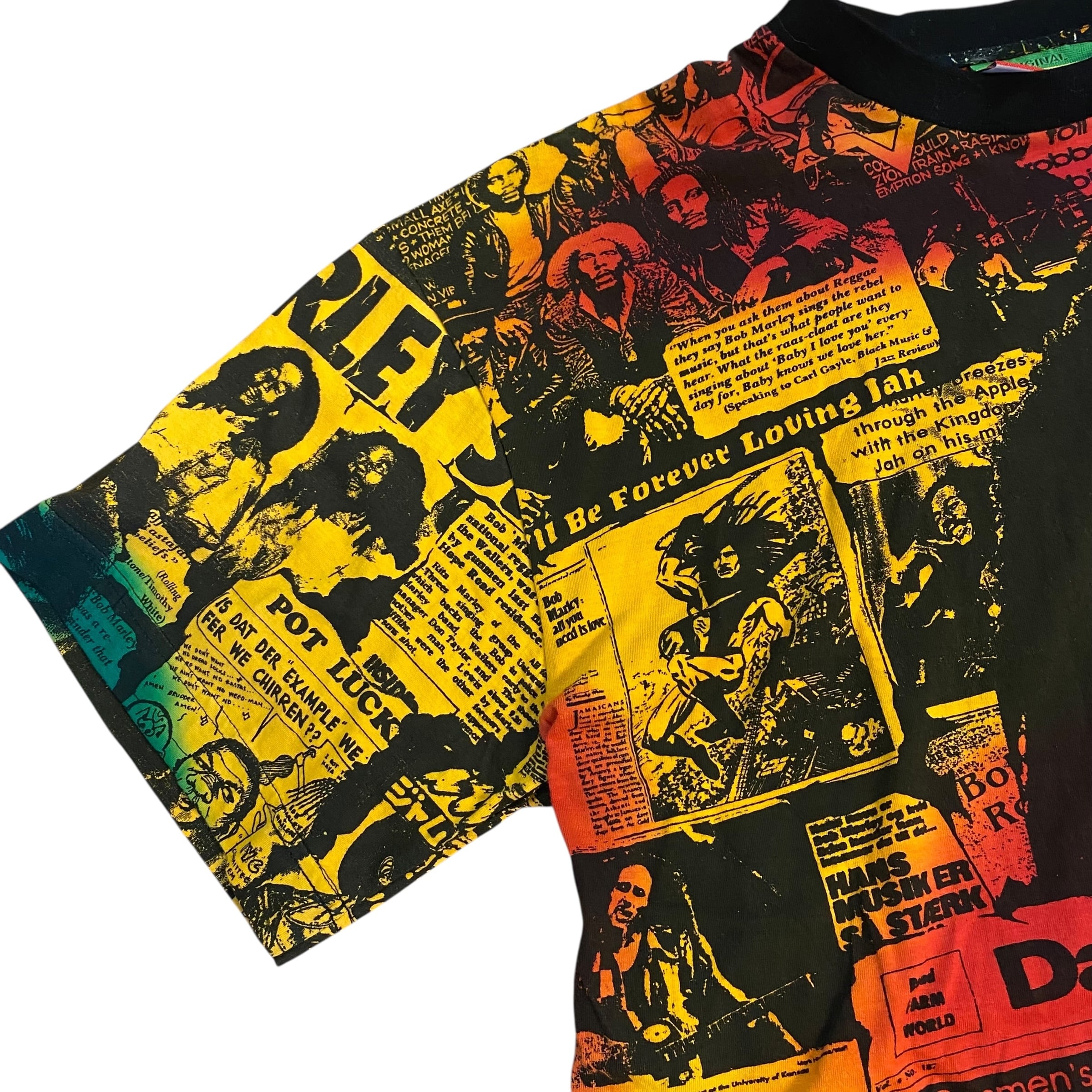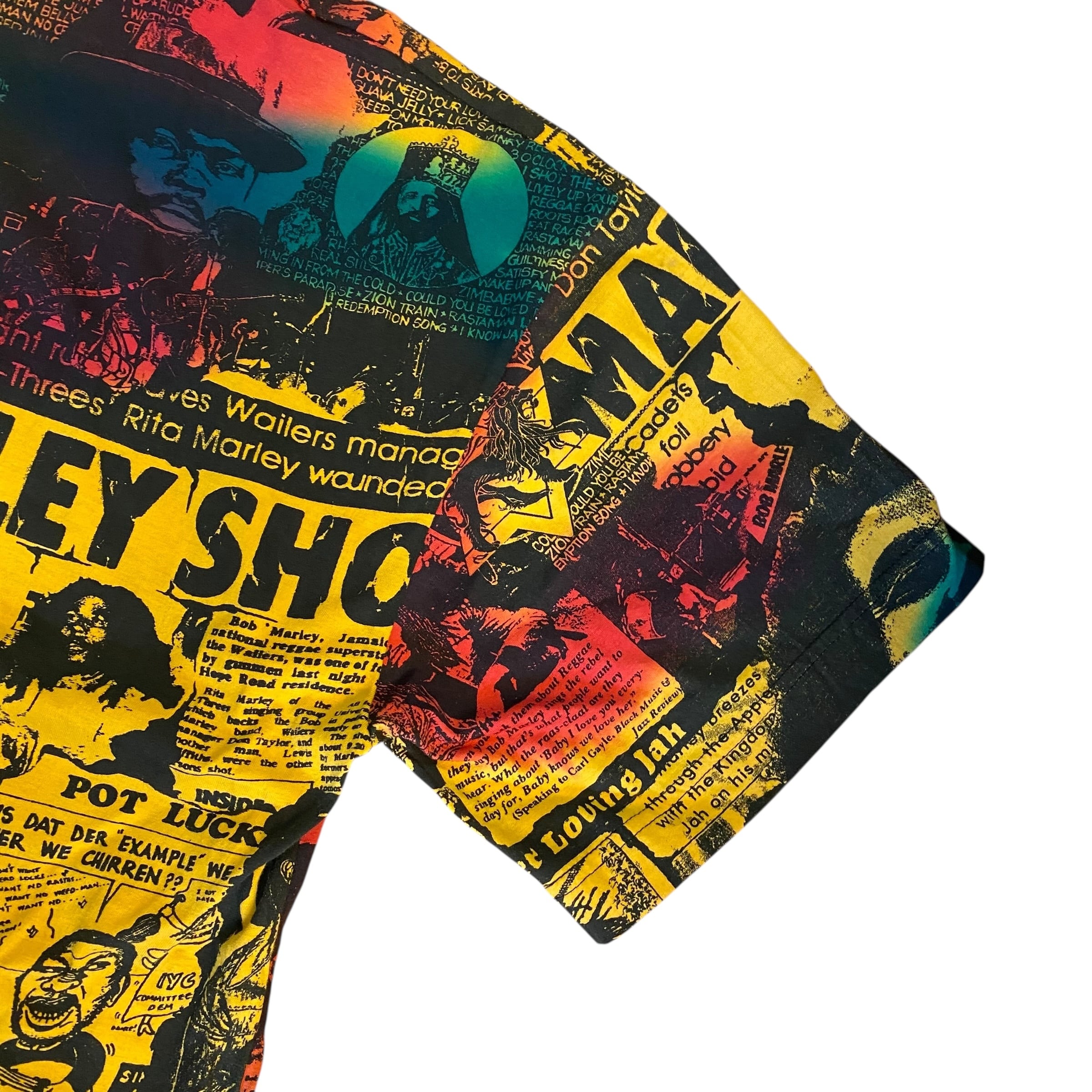レゲエ界の重鎮ボブマーリーの総柄Tシャツです。ボブマーリーのTシャツは良く見かけますが、このアイテムは柄、プリント共に一級品
