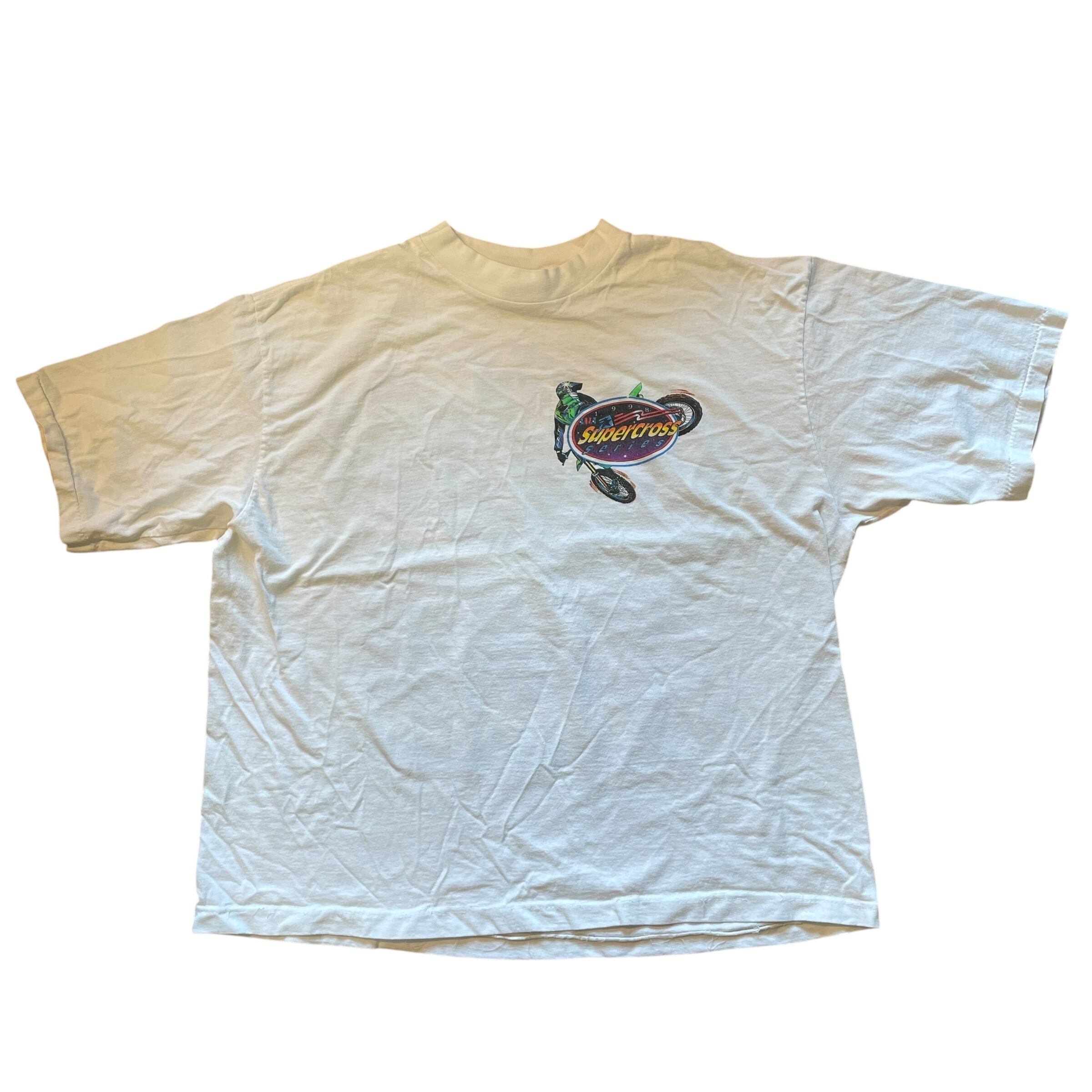 フロントにはライダーとSupercrossのロゴ、バックには燃えるようなバイクジャンプシーンがド迫力でプリント!
