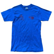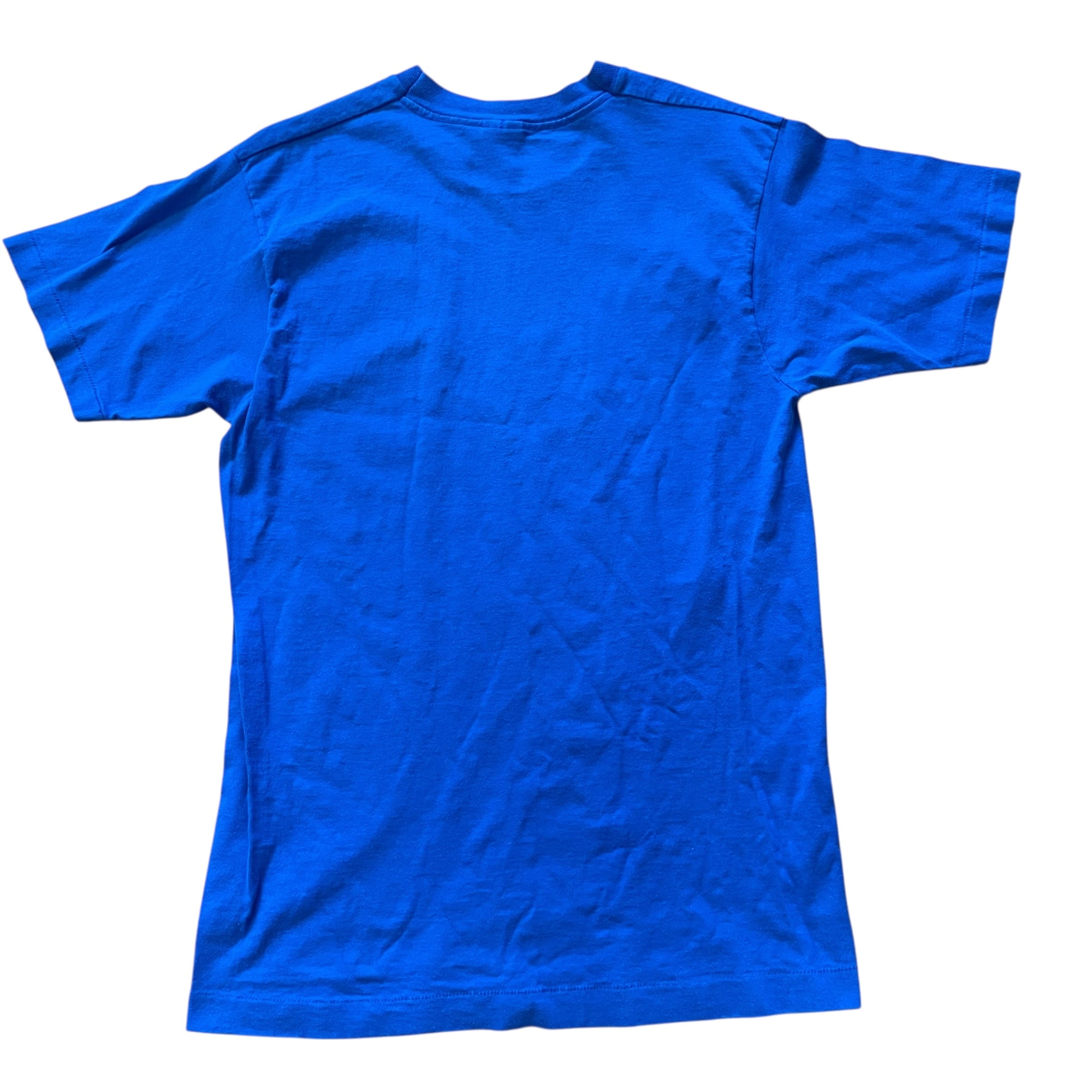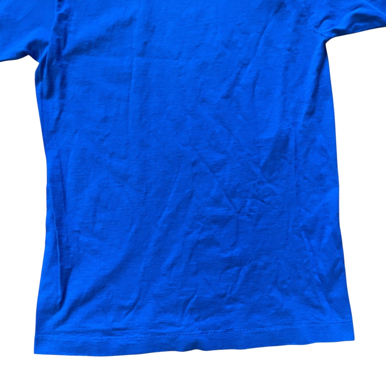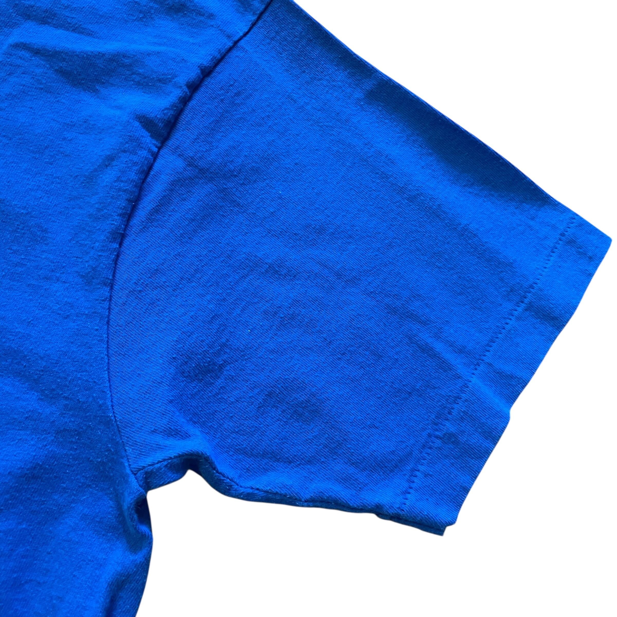 鮮やかなブルーに映えるレッドの刺繍ロゴが魅力のヴィンテージTシャツ。