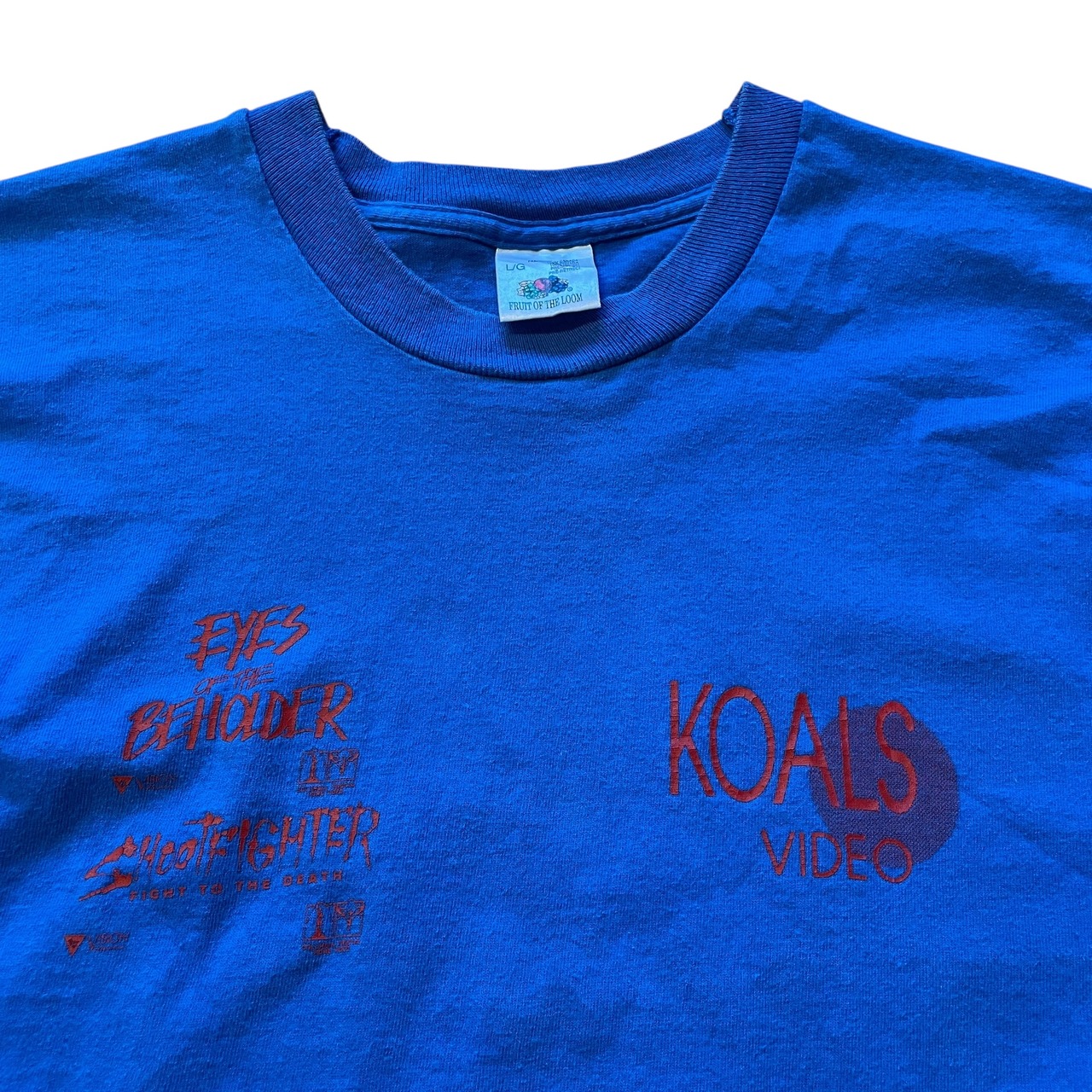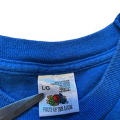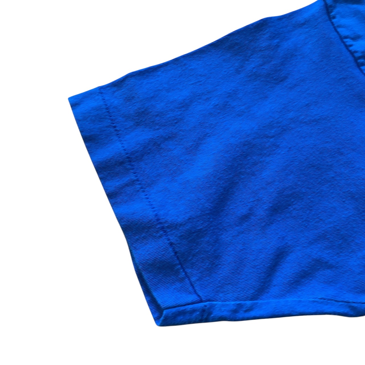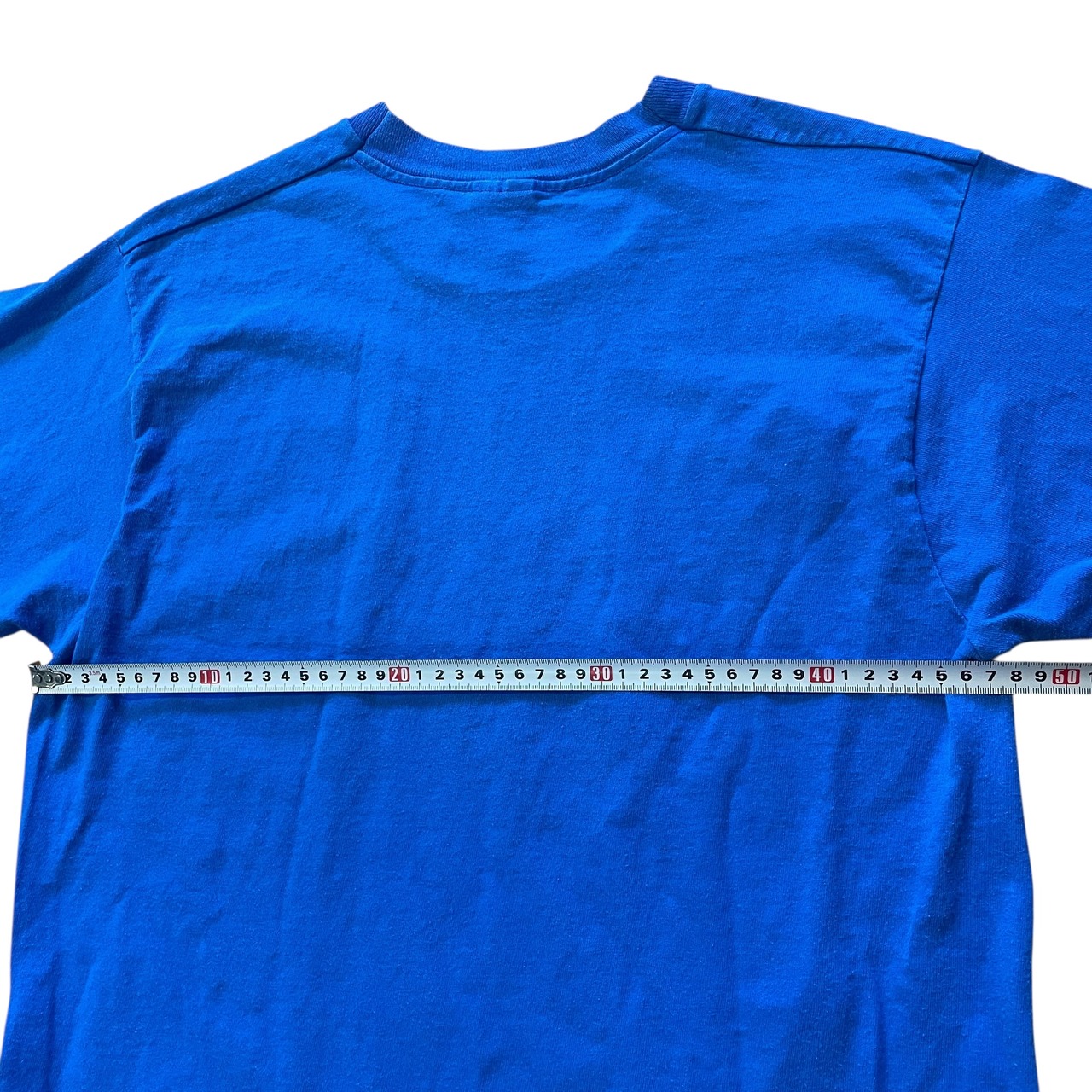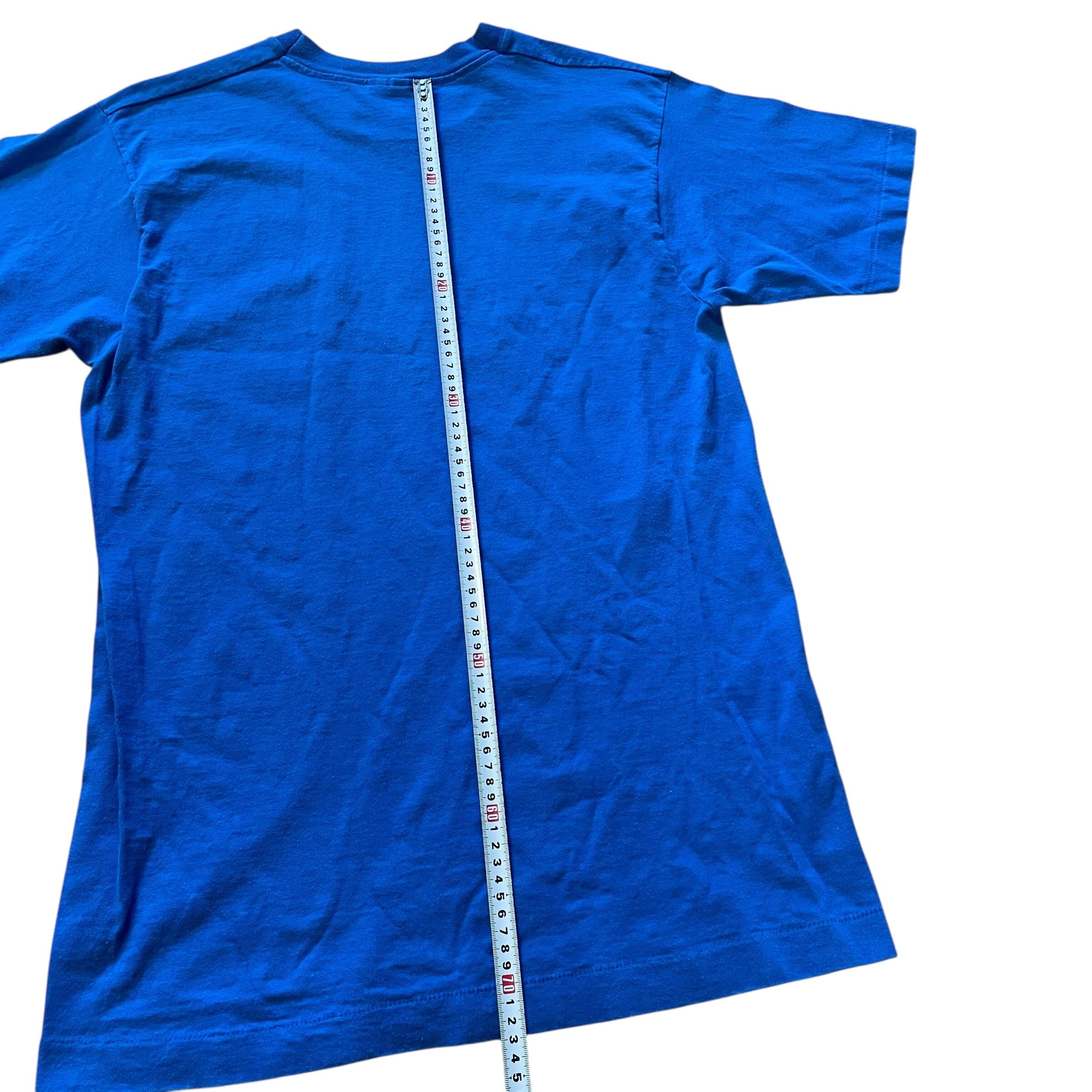 鮮やかなブルーに映えるレッドの刺繍ロゴが魅力のヴィンテージTシャツ。