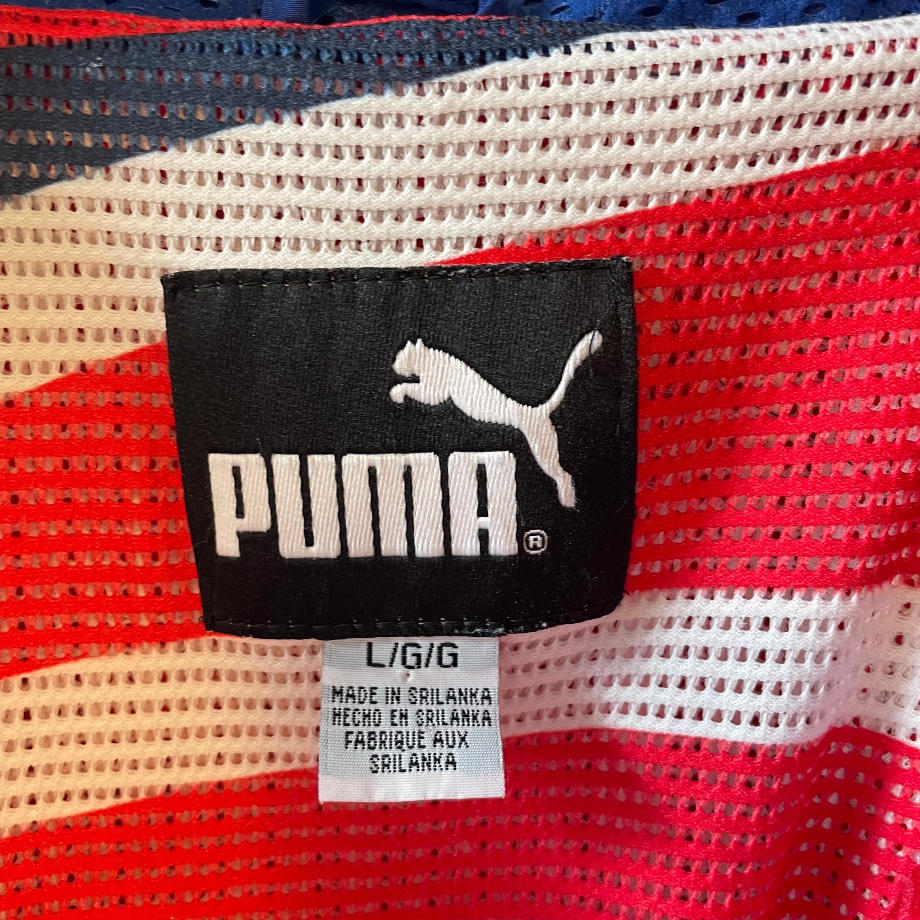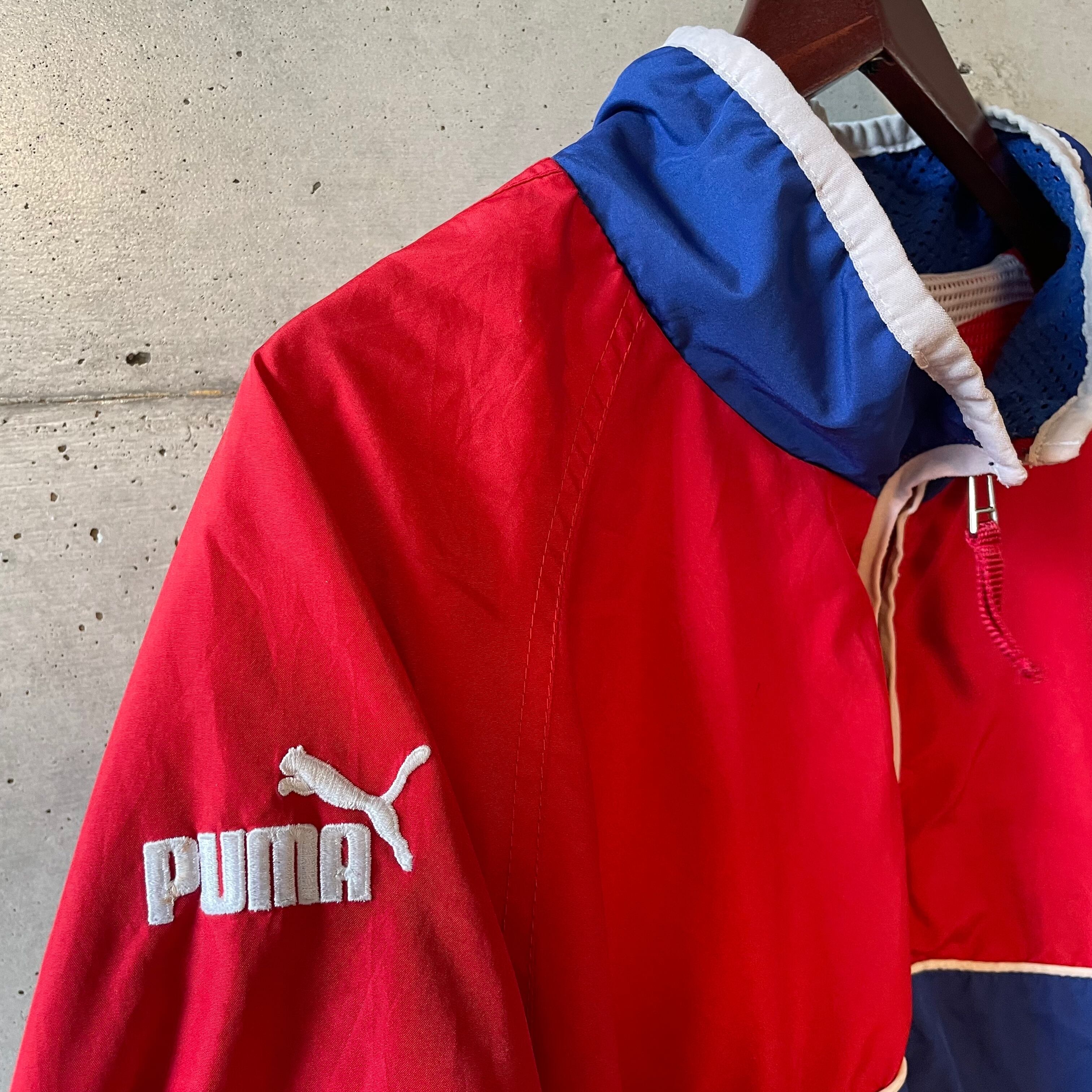 フード裏地のメッシュやPUMAロゴ刺繍、NFLパッチまでディテール満載。希少なPUMAタグのNFLアイテムは古着市場でも数が少なく貴重です。