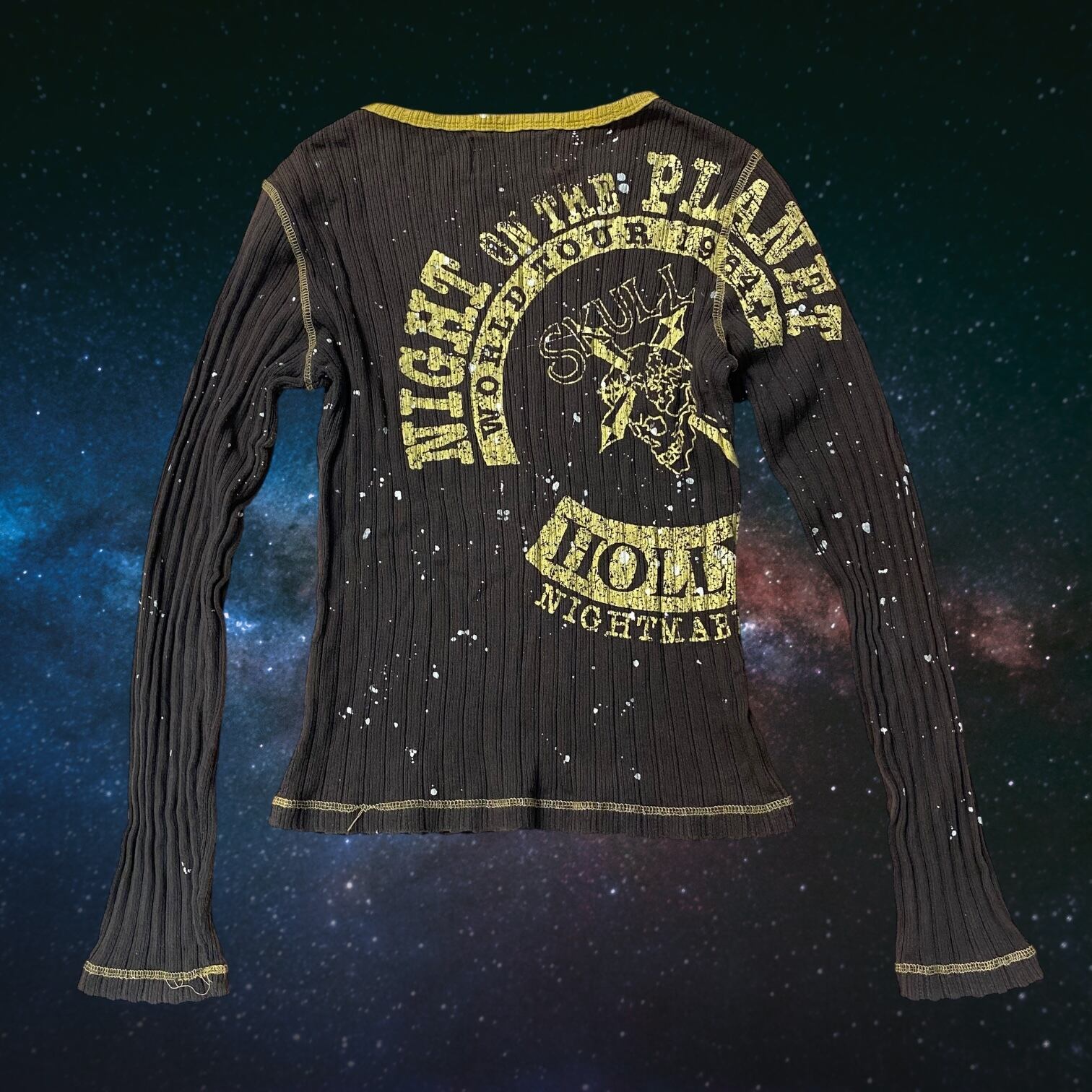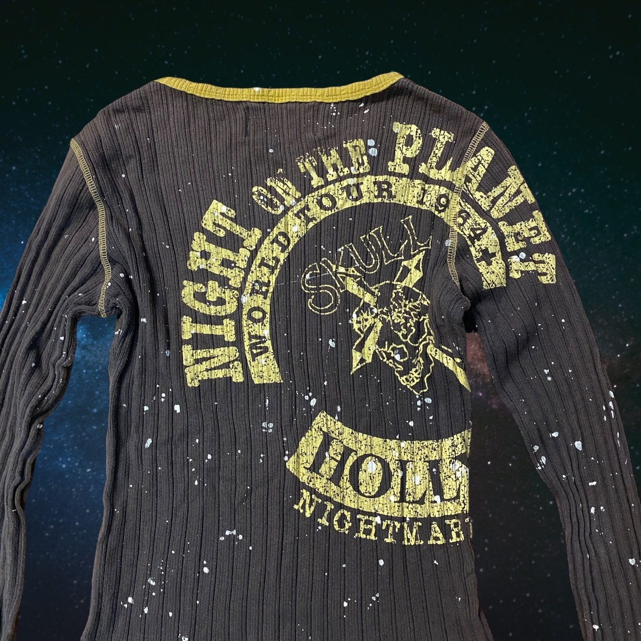 ロックで退廃的なグラフィックがたまらないロングスリーブニットTee