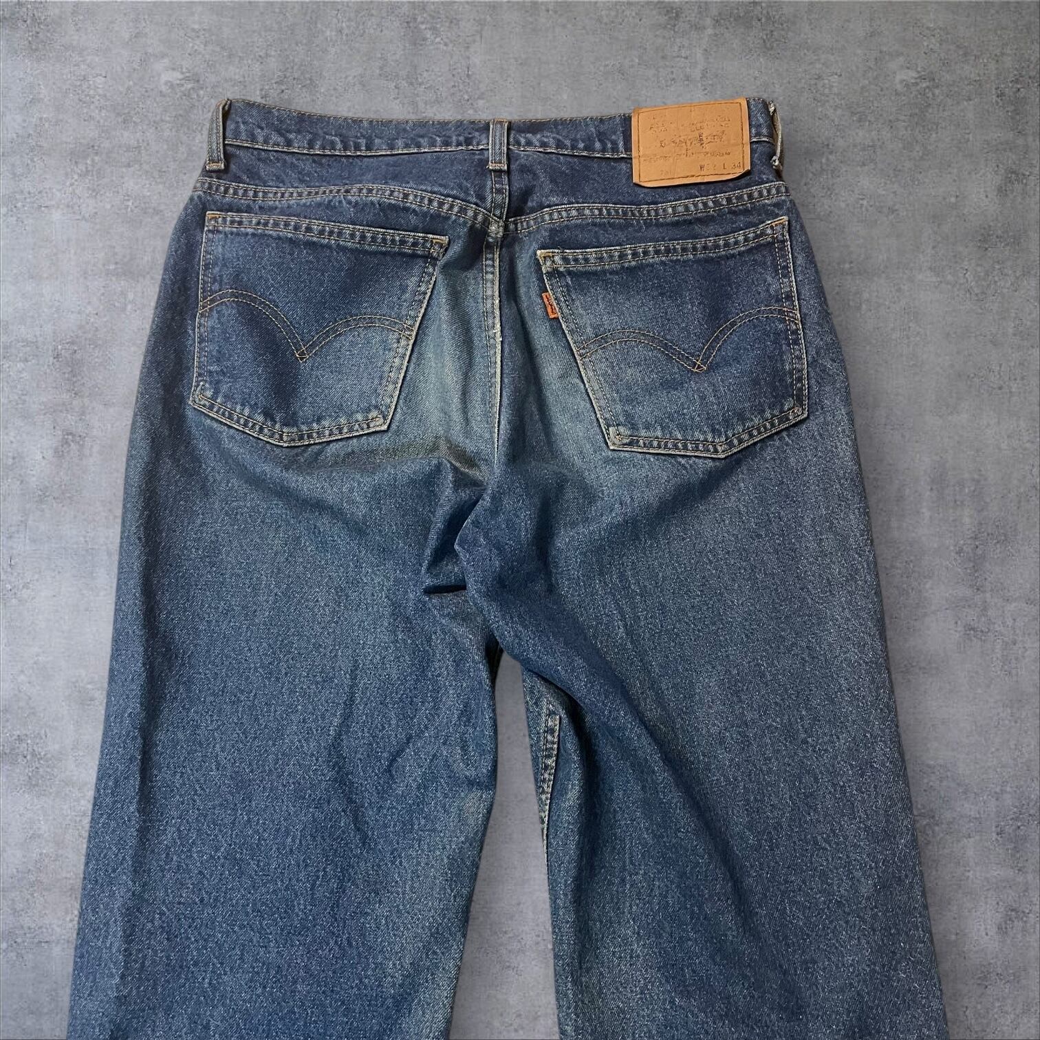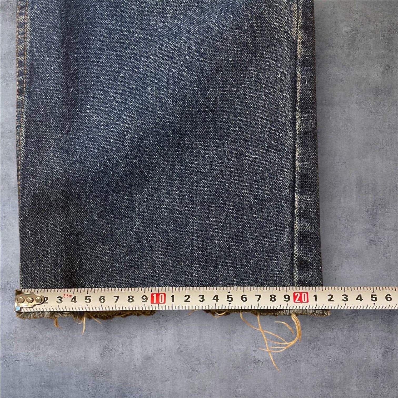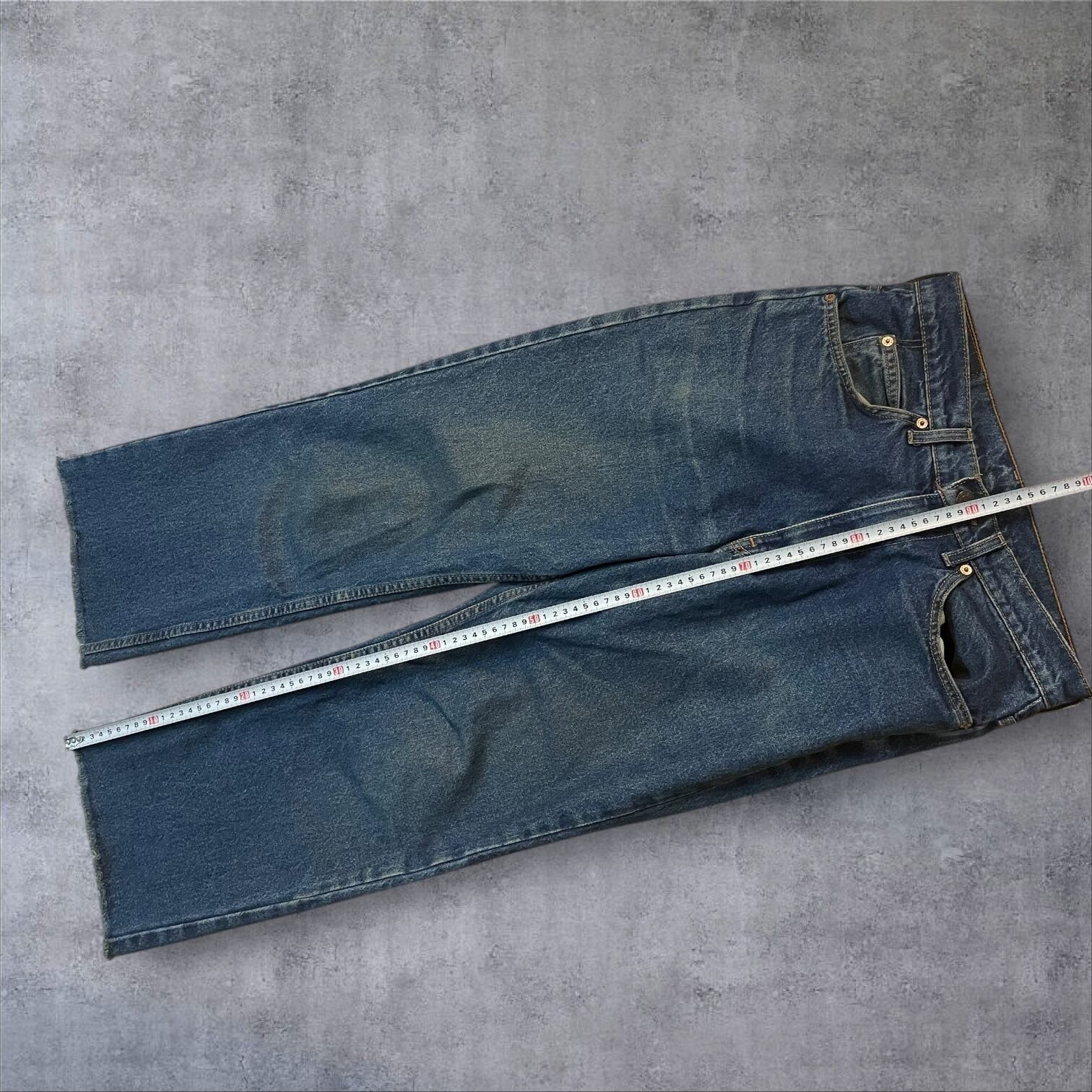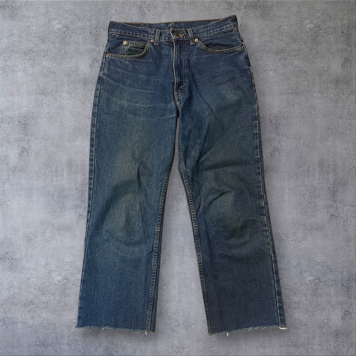ヴィンテージ好きにはたまらない雰囲気抜群の一本。程よい色落ちとヒゲの表情が90sスタイルを彷彿とさせ、カットオフ仕様の裾がラフでこなれた印象を演出します。