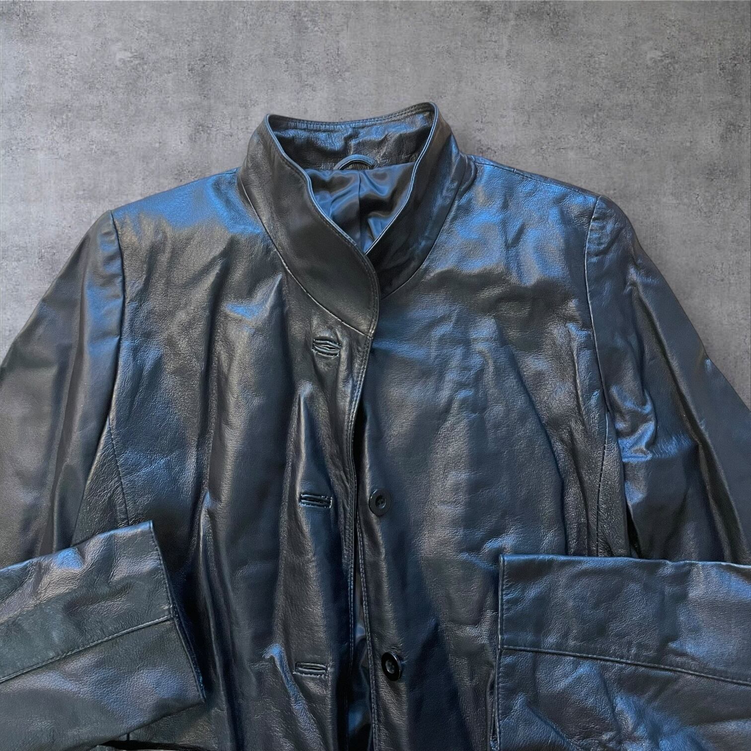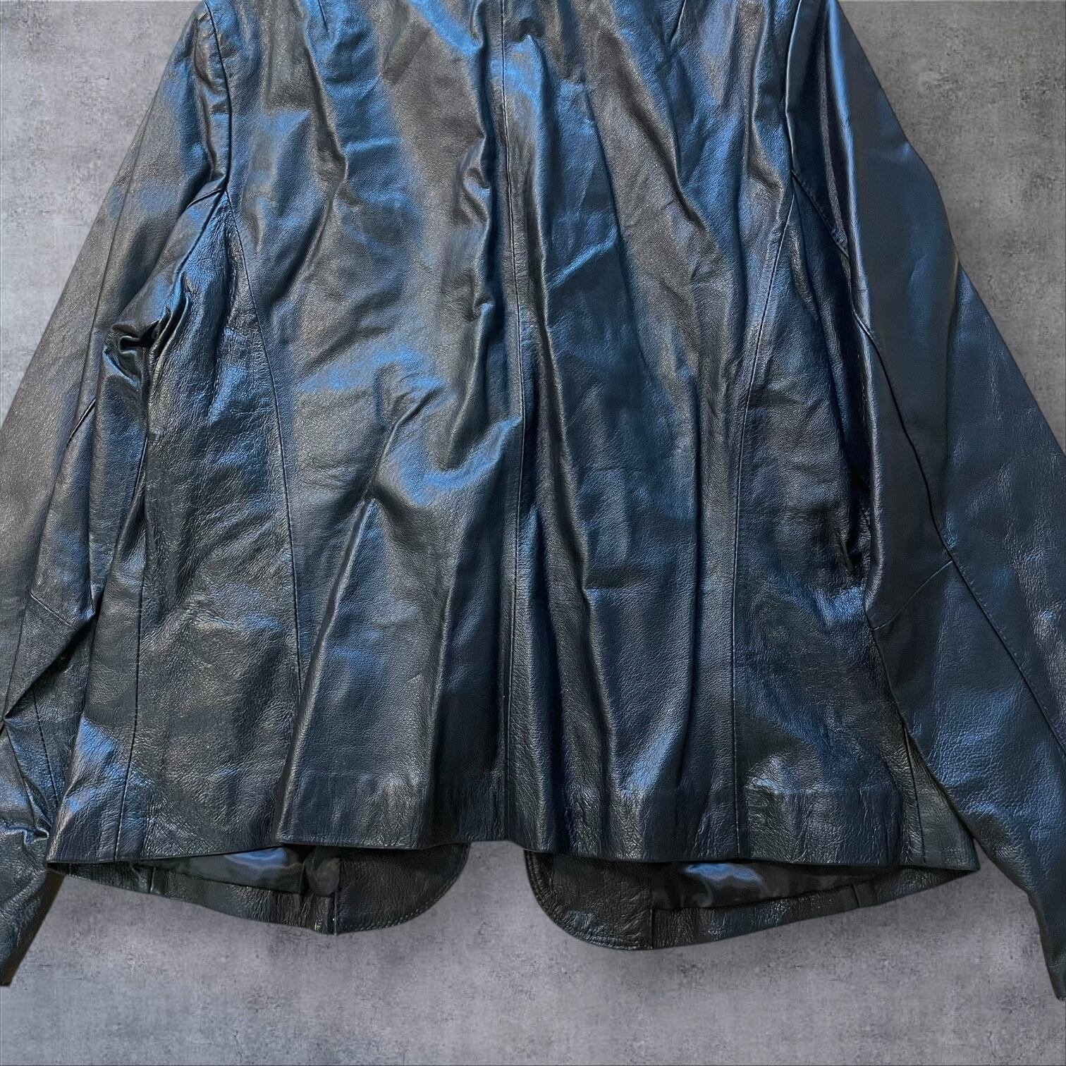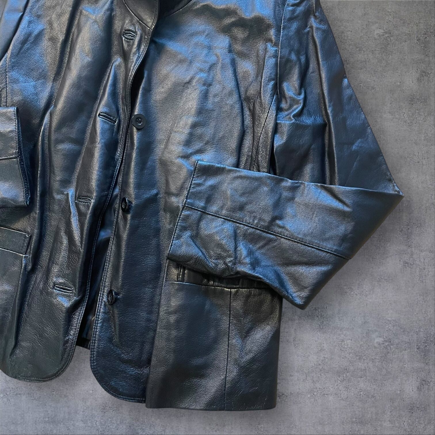 光沢感のあるブラックレザーが雰囲気抜群で、シンプルながらも個性を主張できる1着。