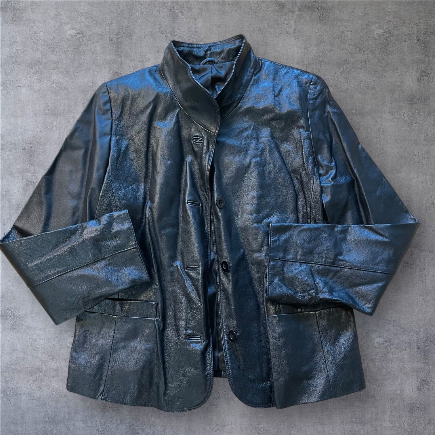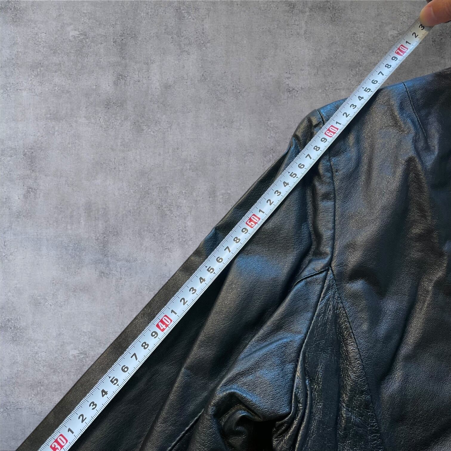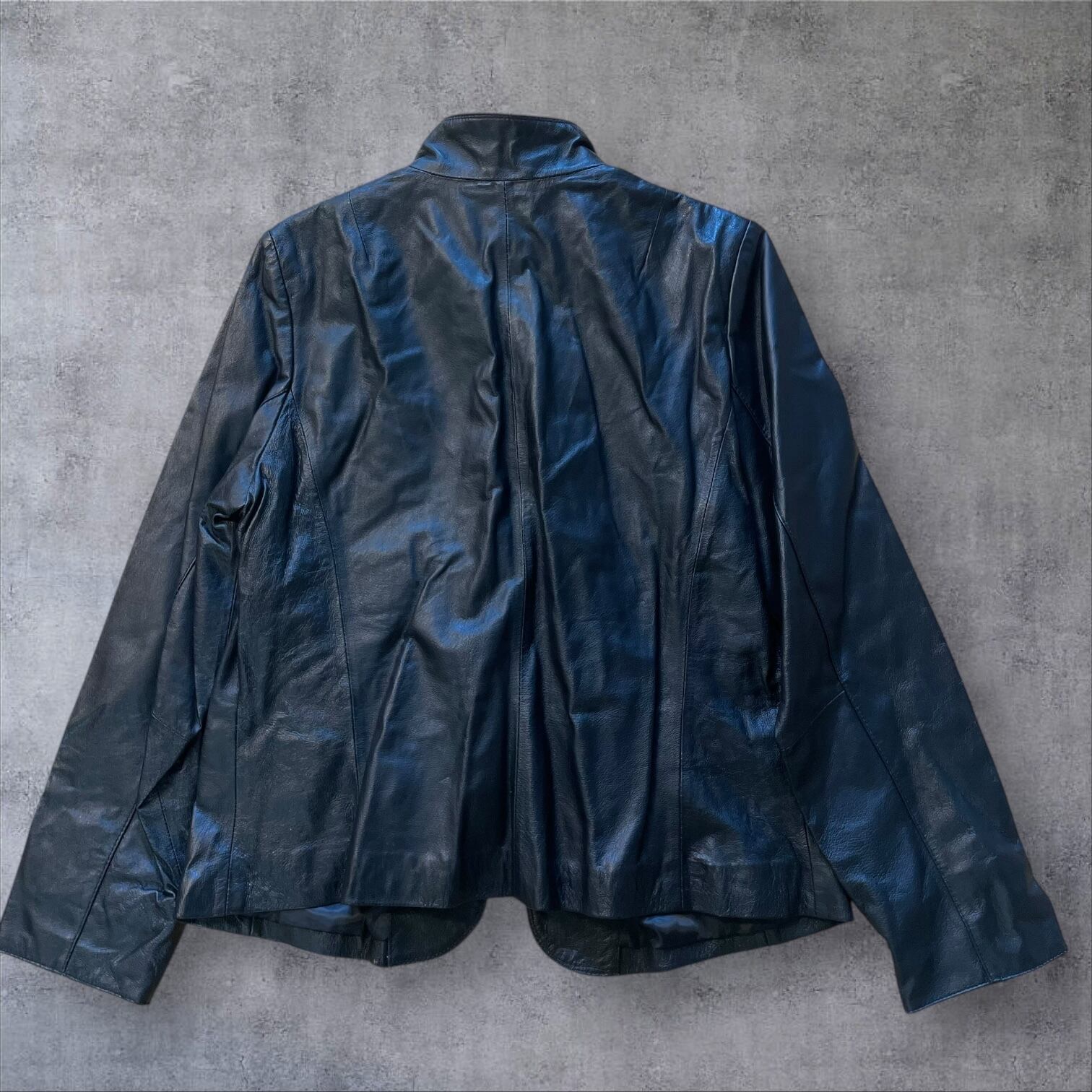光沢感のあるブラックレザーが雰囲気抜群で、シンプルながらも個性を主張できる1着。