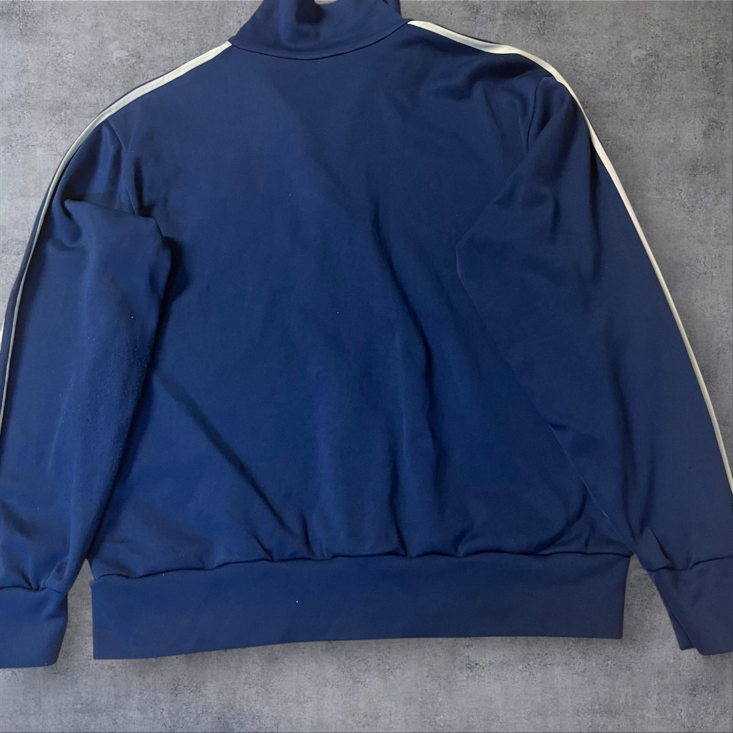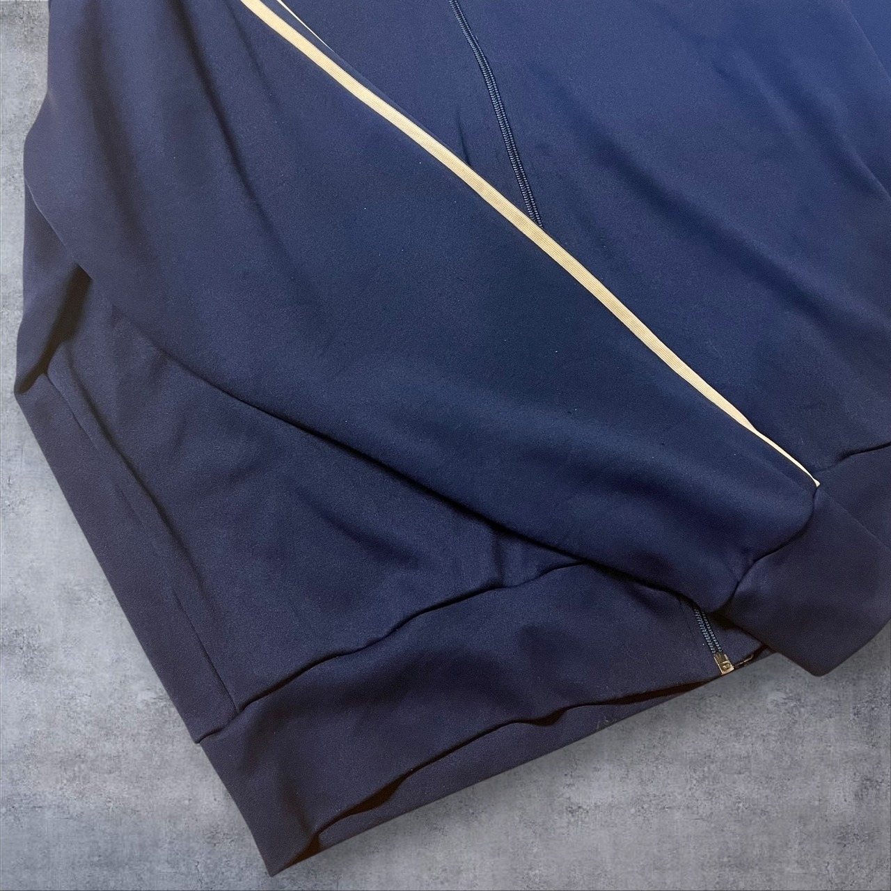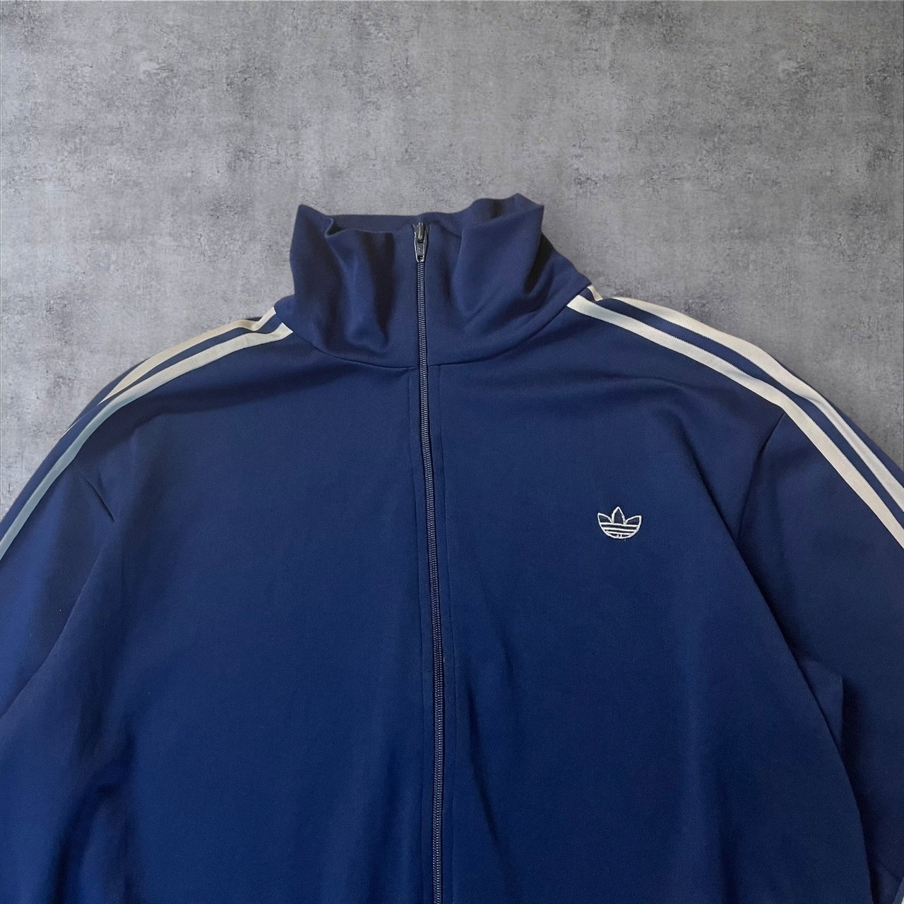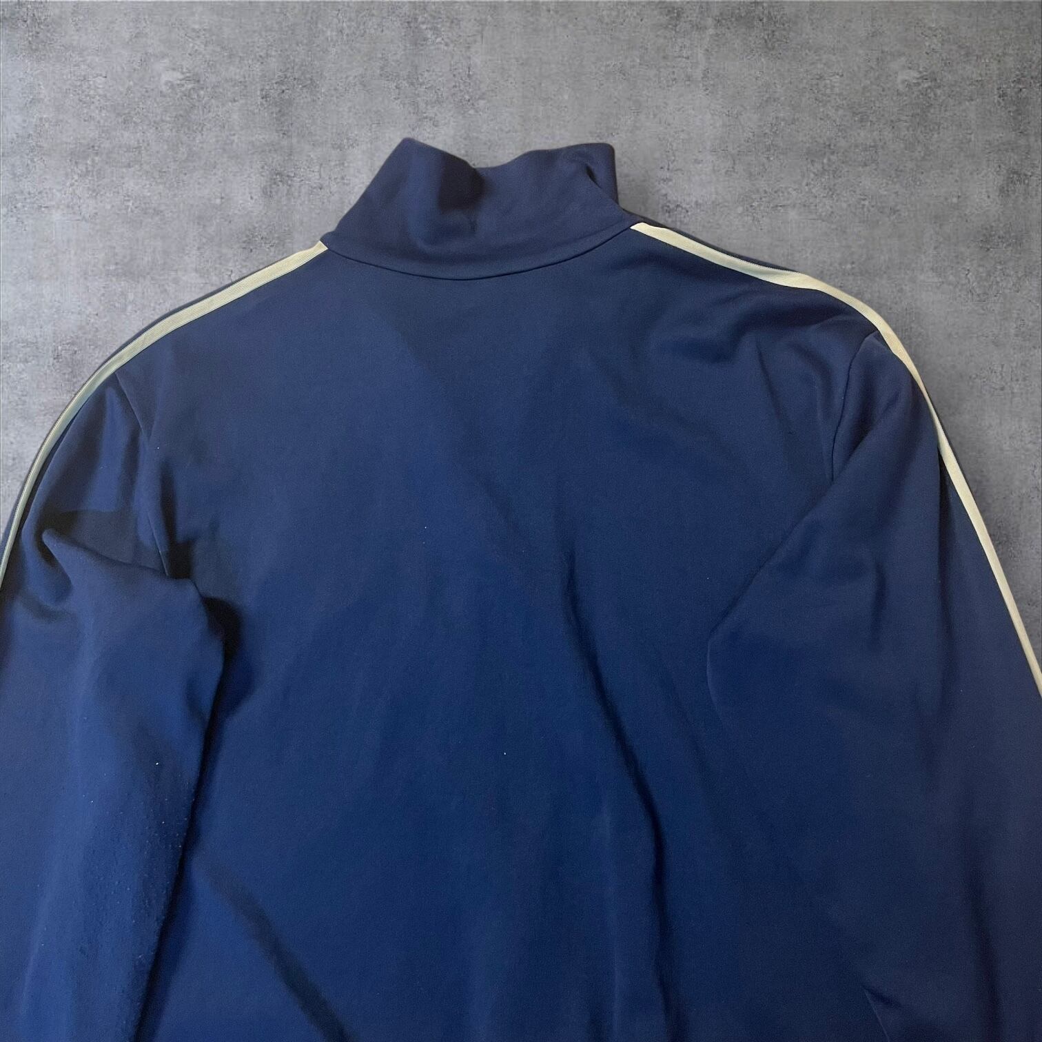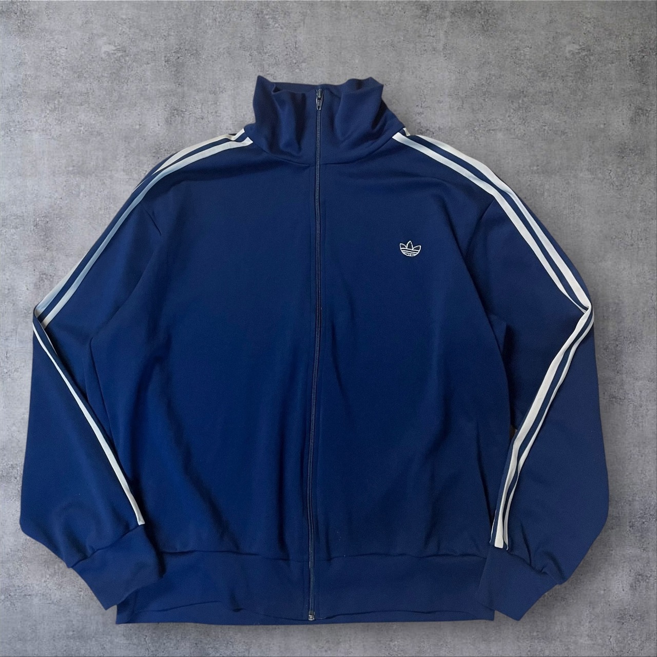 レトロスポーツの王道とも言えるこの1着は、クラシックなトレフォイルロゴ&3本ラインの鉄板デザイン。タグから見ても90sオリジナルで、古着好き・ストリートファッション好きにはたまらない一着です。