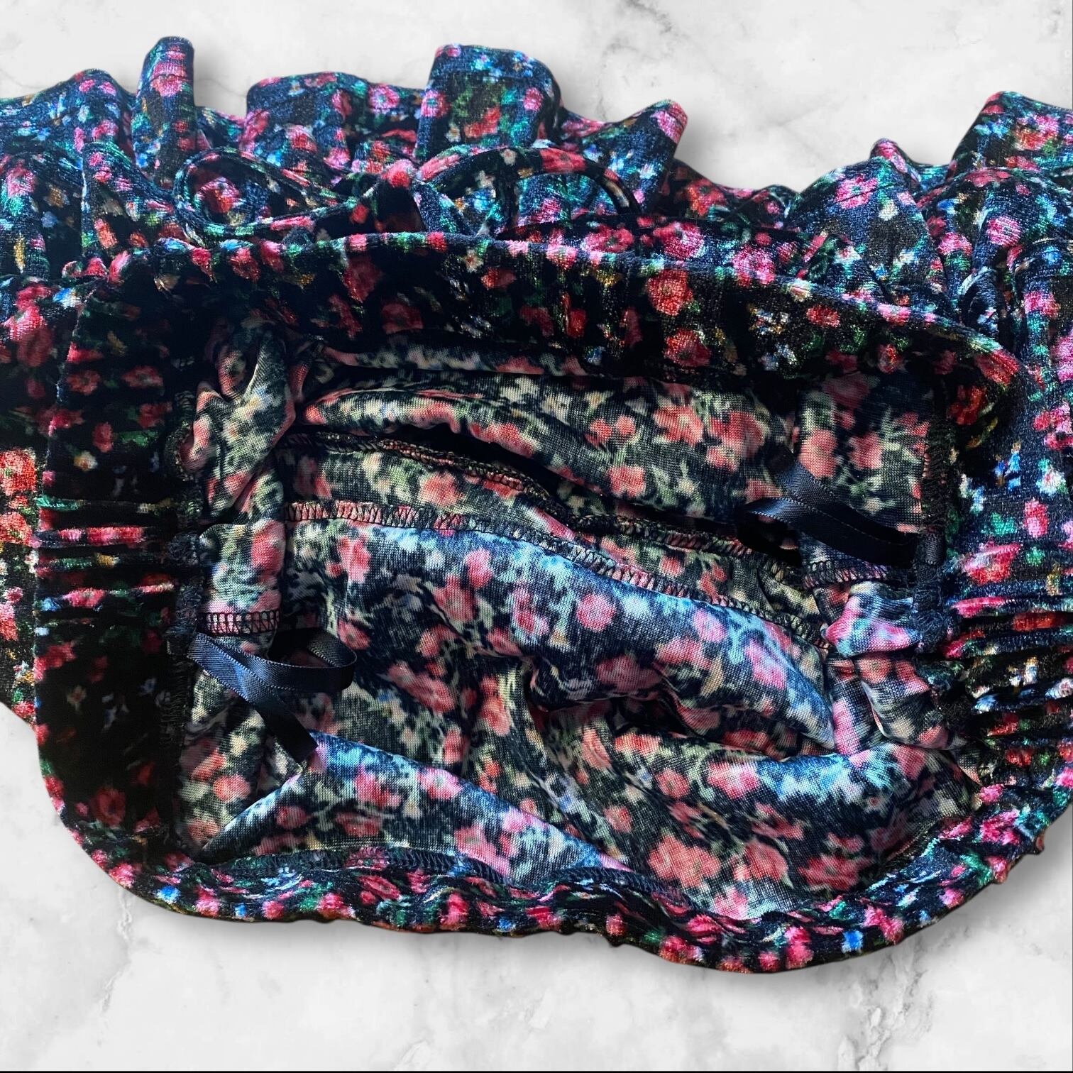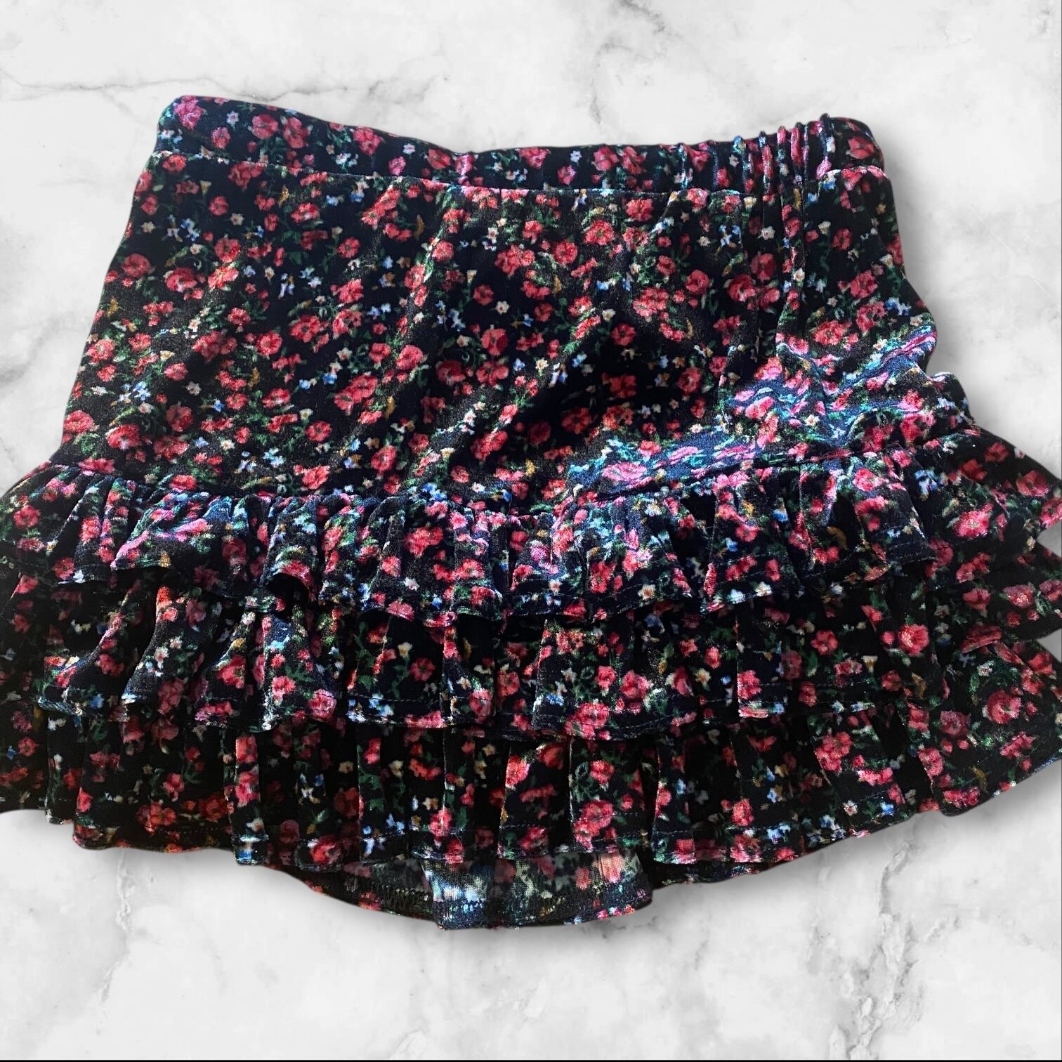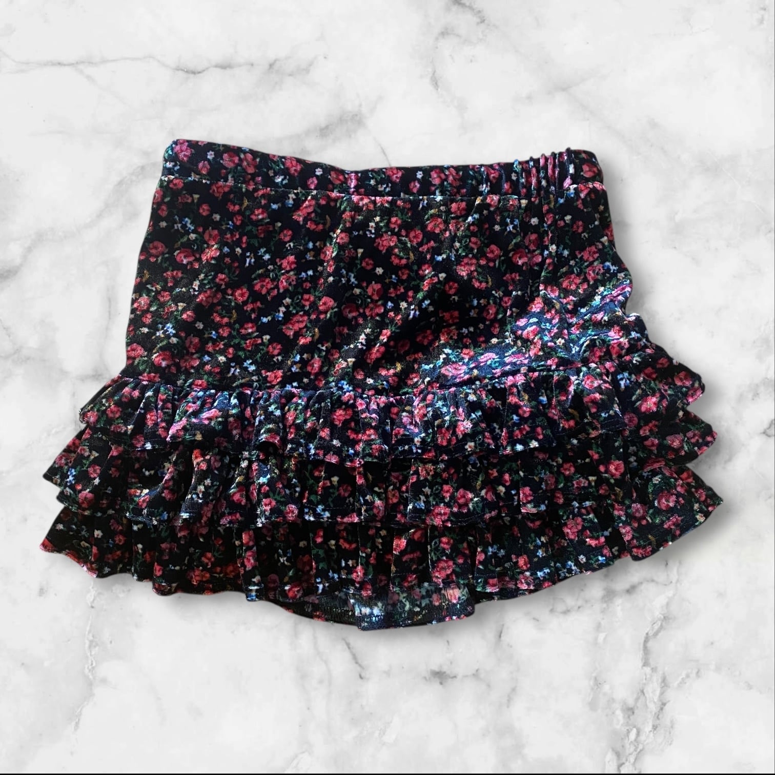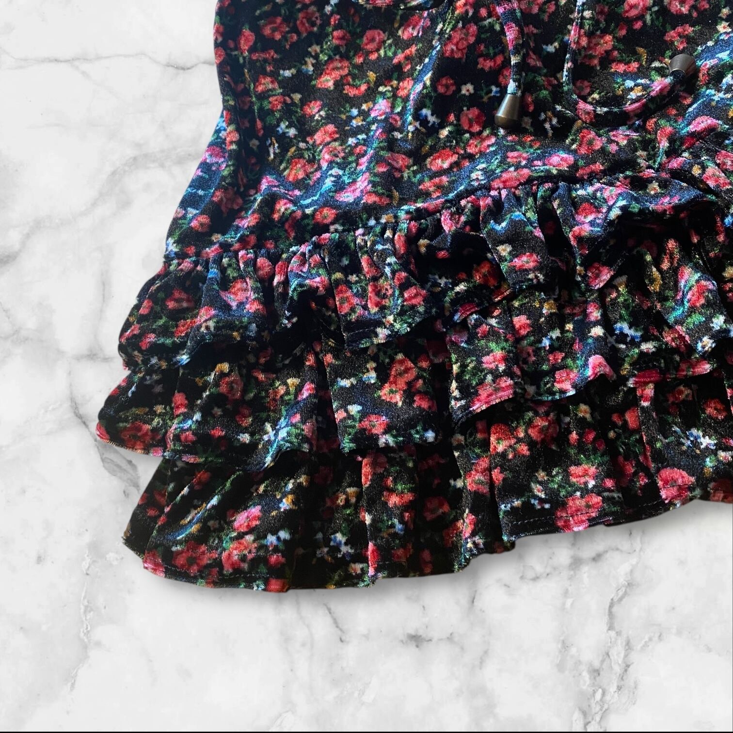 ベロア素材×小花柄の甘辛バランスが絶妙なティアードミニスカート。