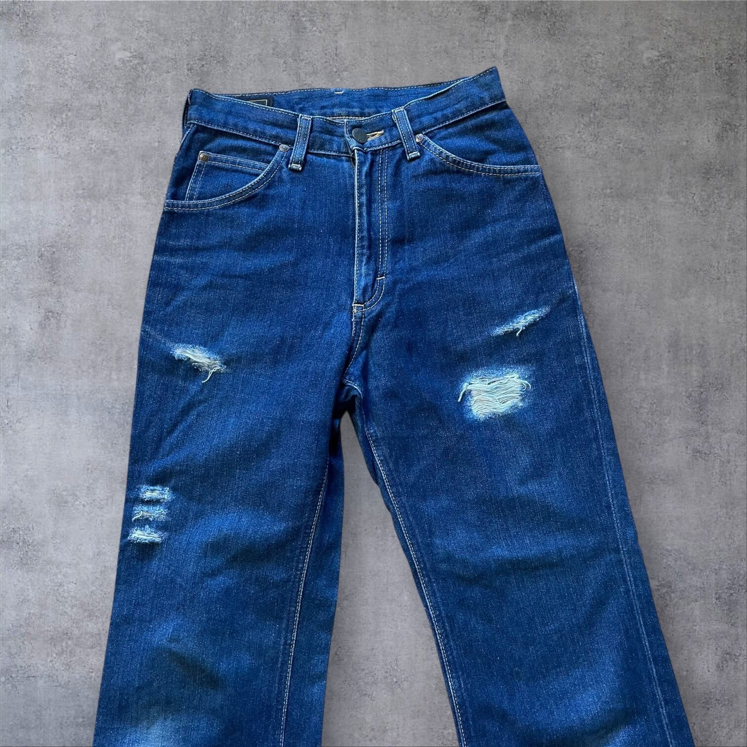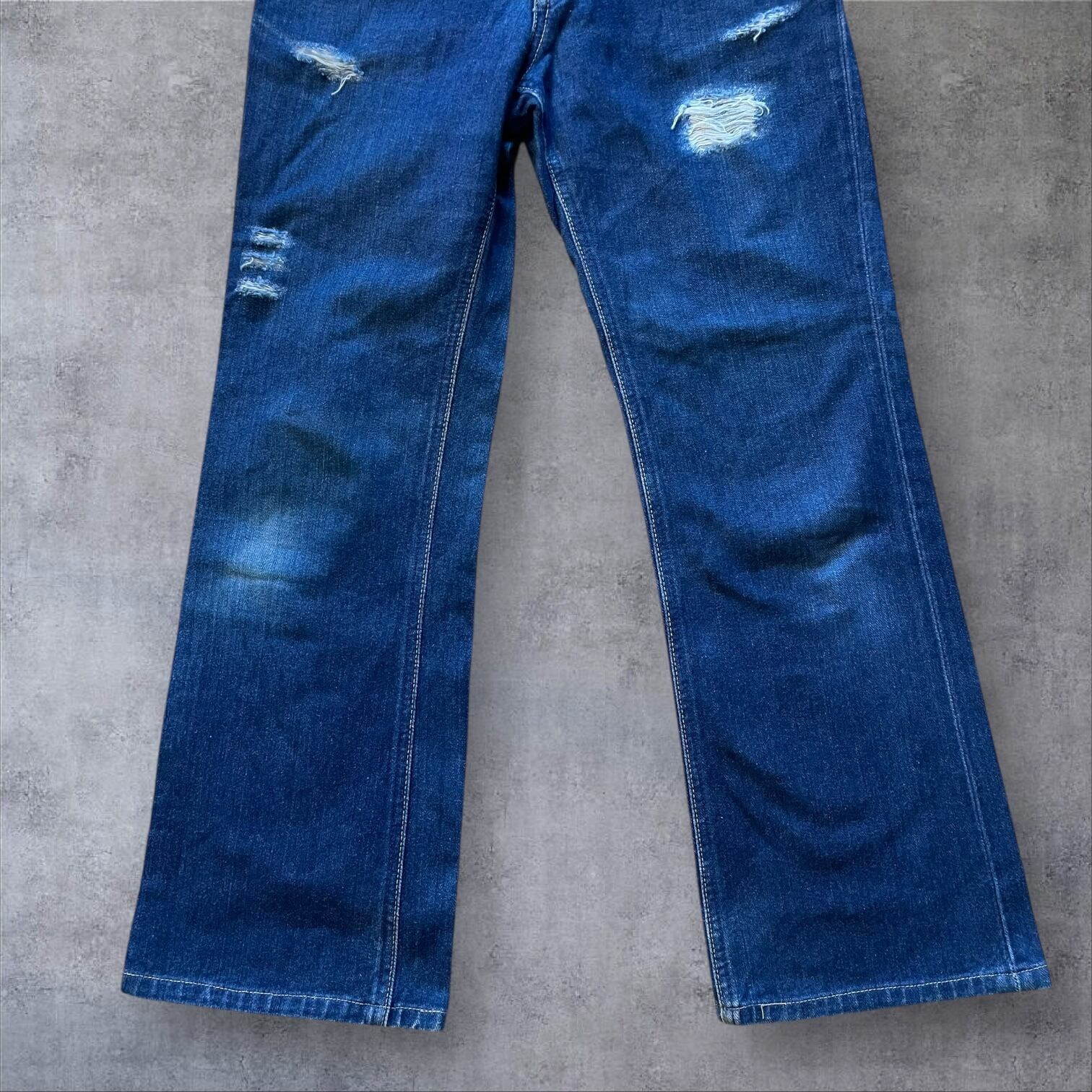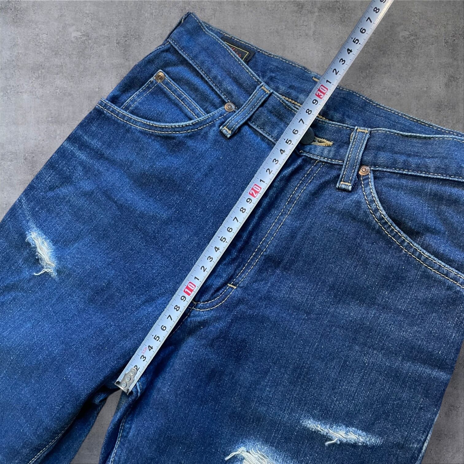 ダメージ加工&クラッシュ入りで、グランジ・Y2Kスタイルにぴったり。