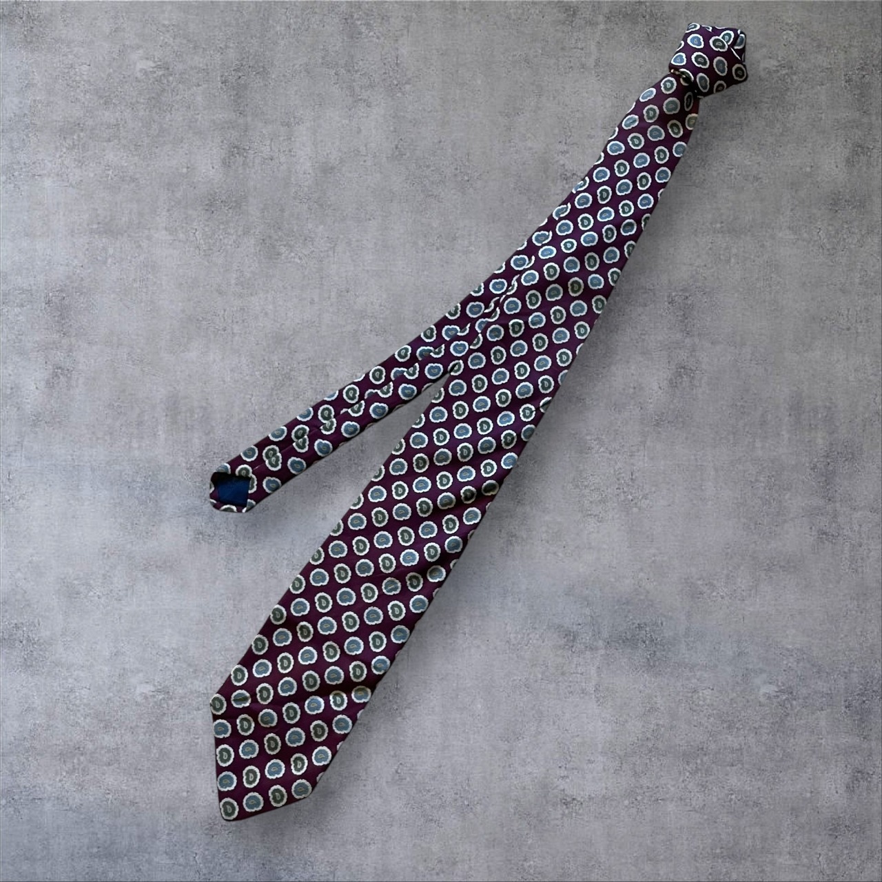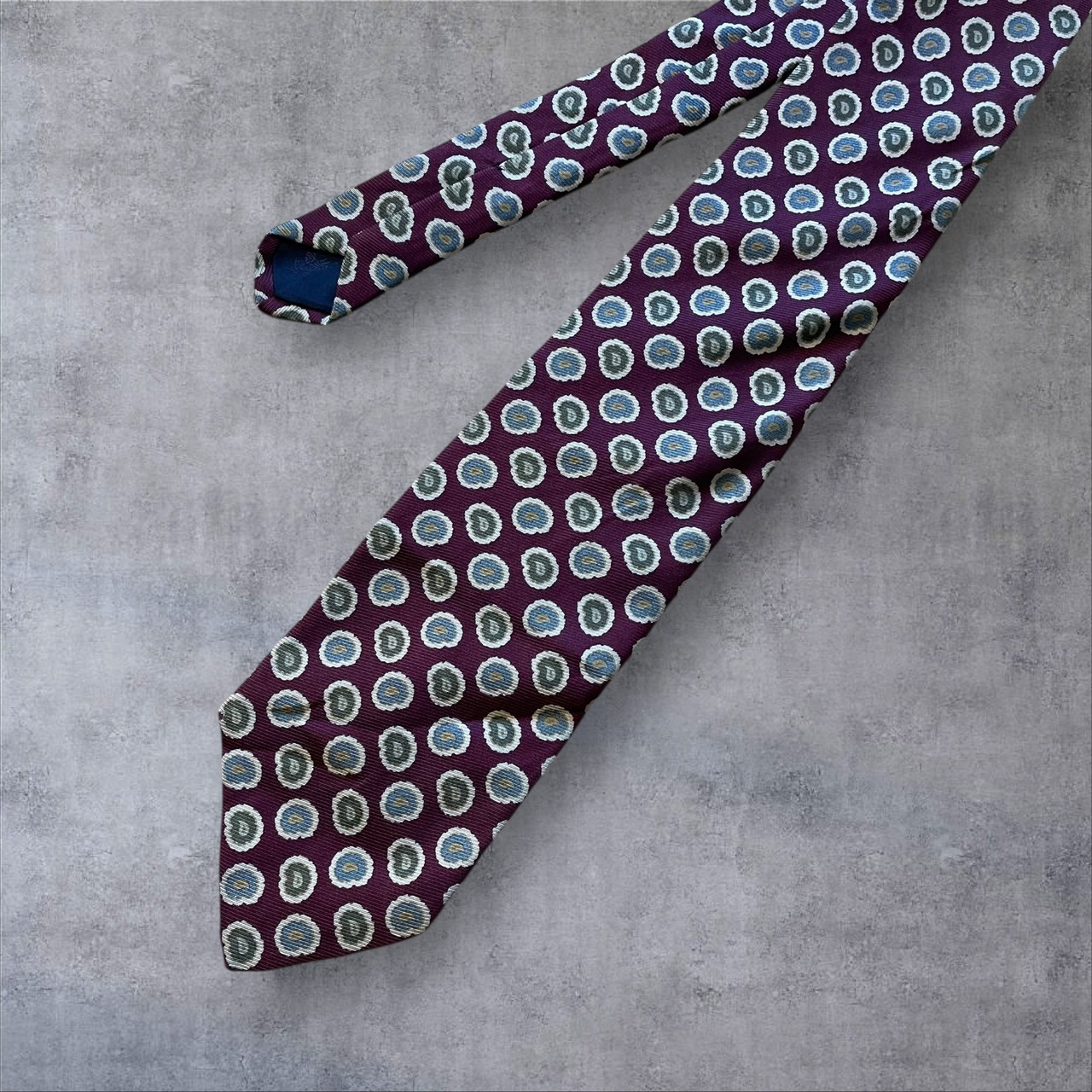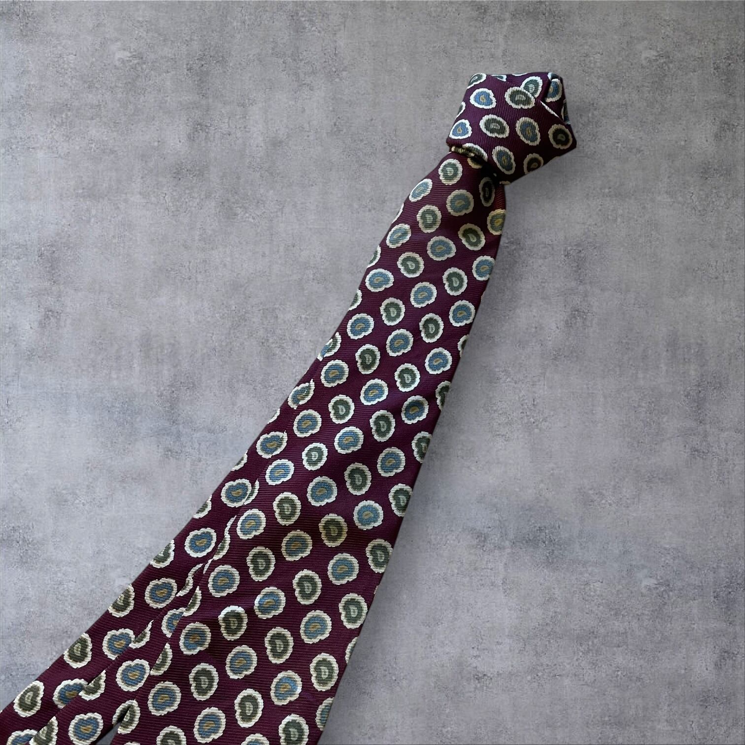 シルク100%・USA製の確かな品質で、レトロなサークル模様がクラシカルな雰囲気を演出します。