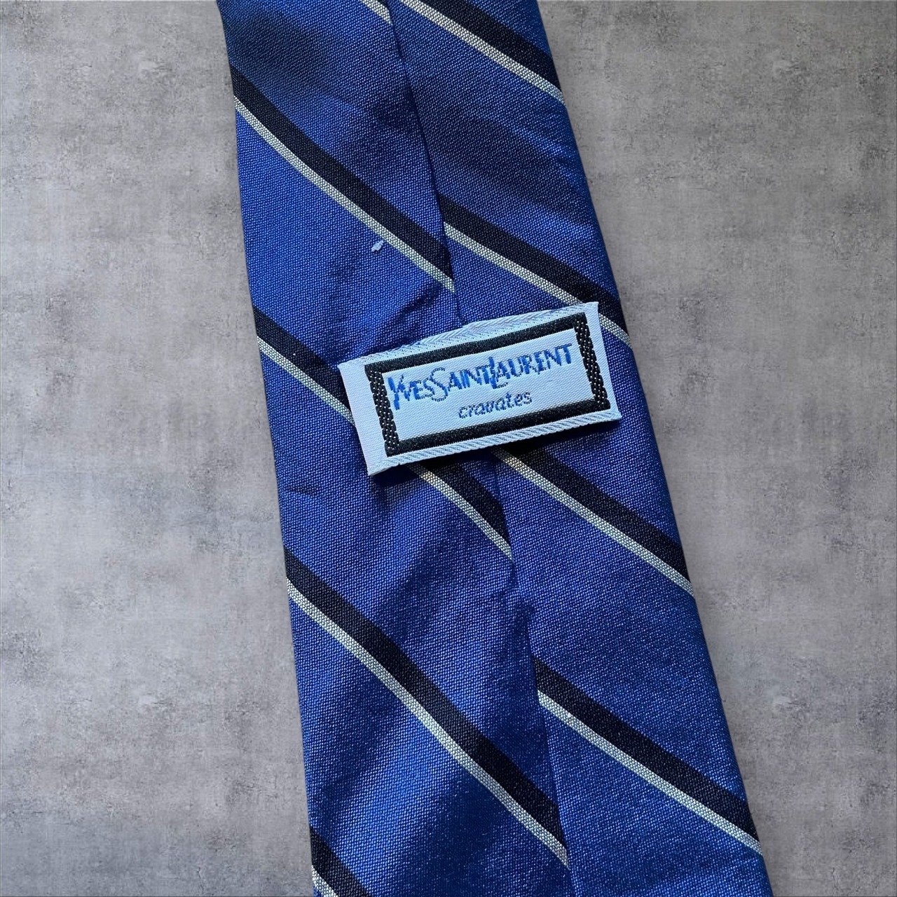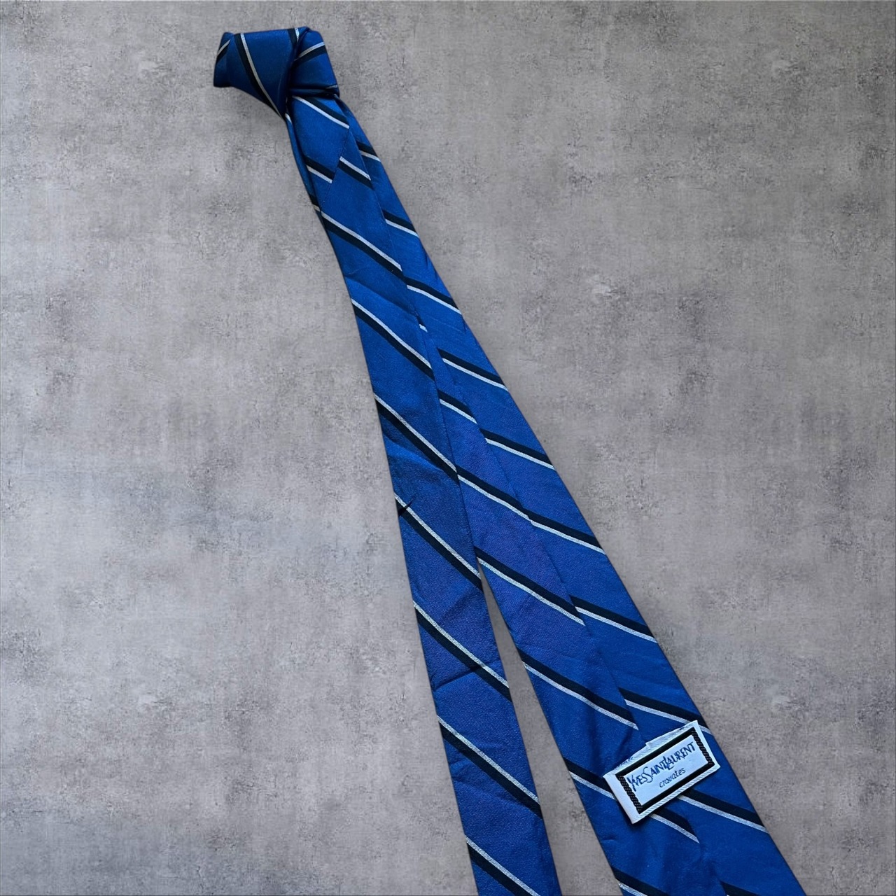 フランスの名門【Yves Saint Laurent】のブルー×ストライプ柄ネクタイ。