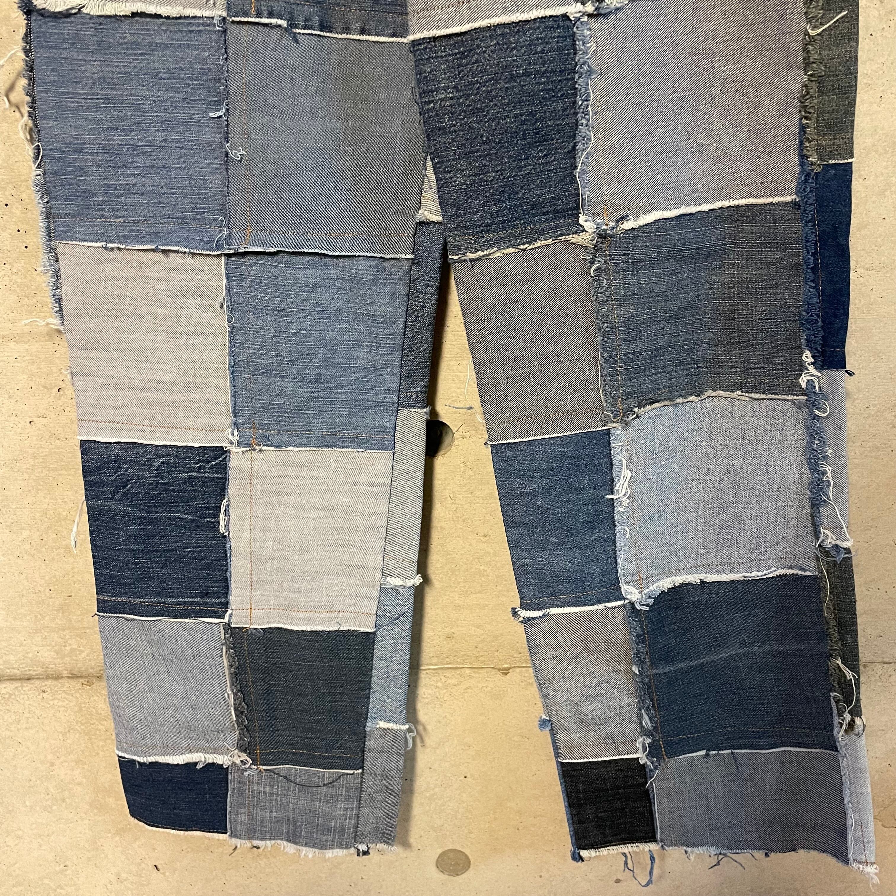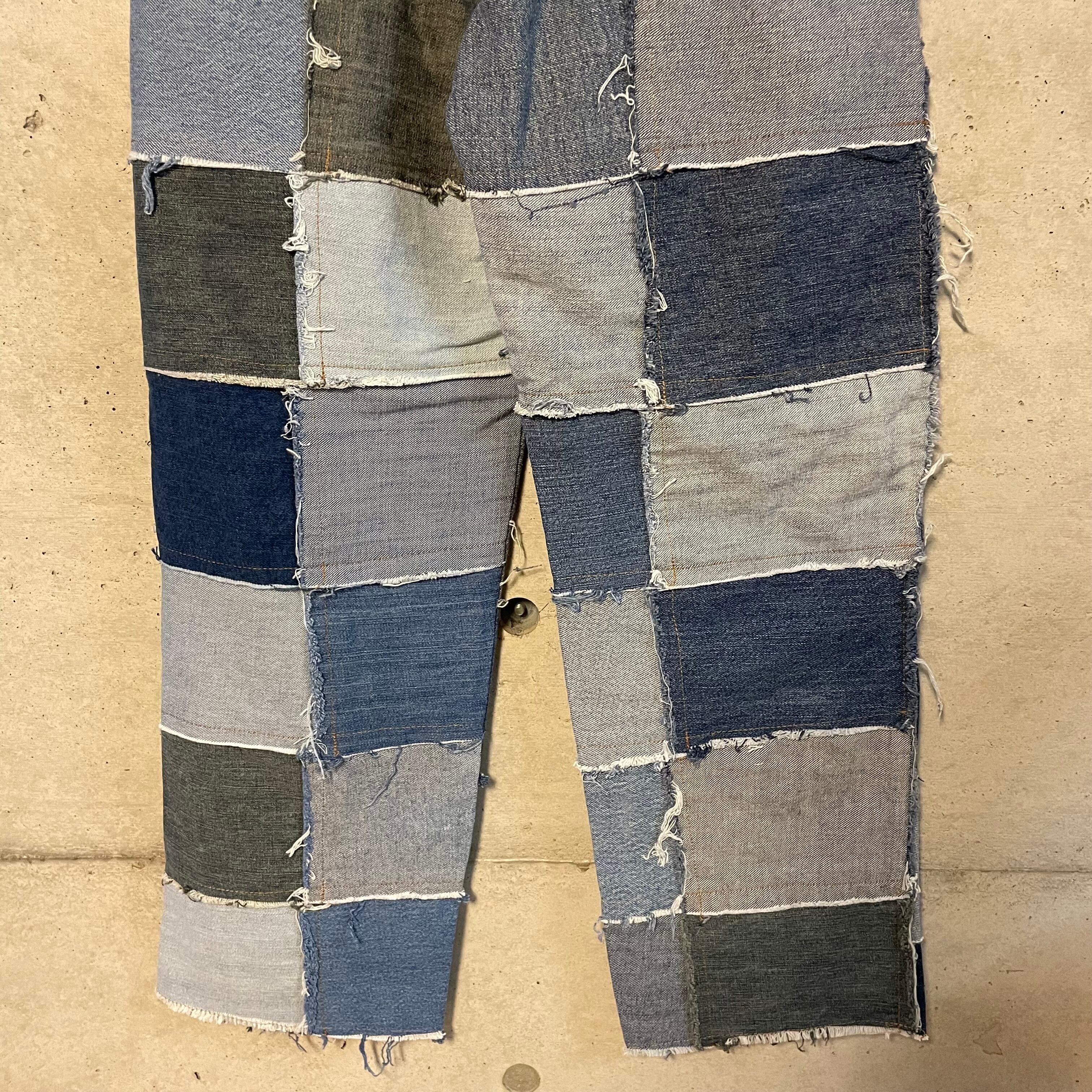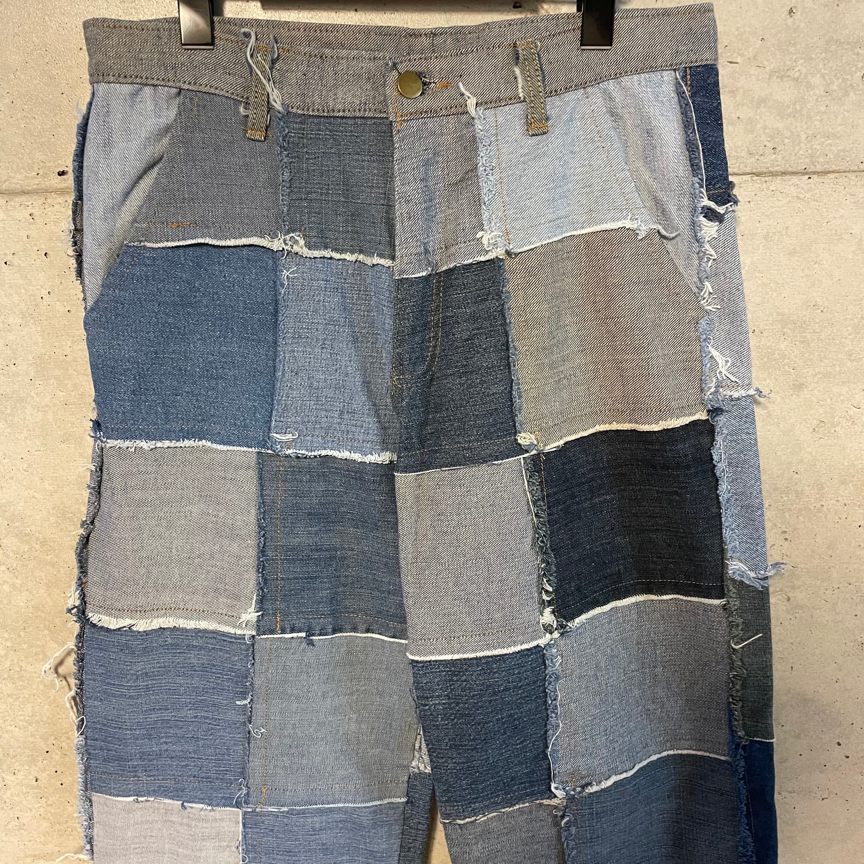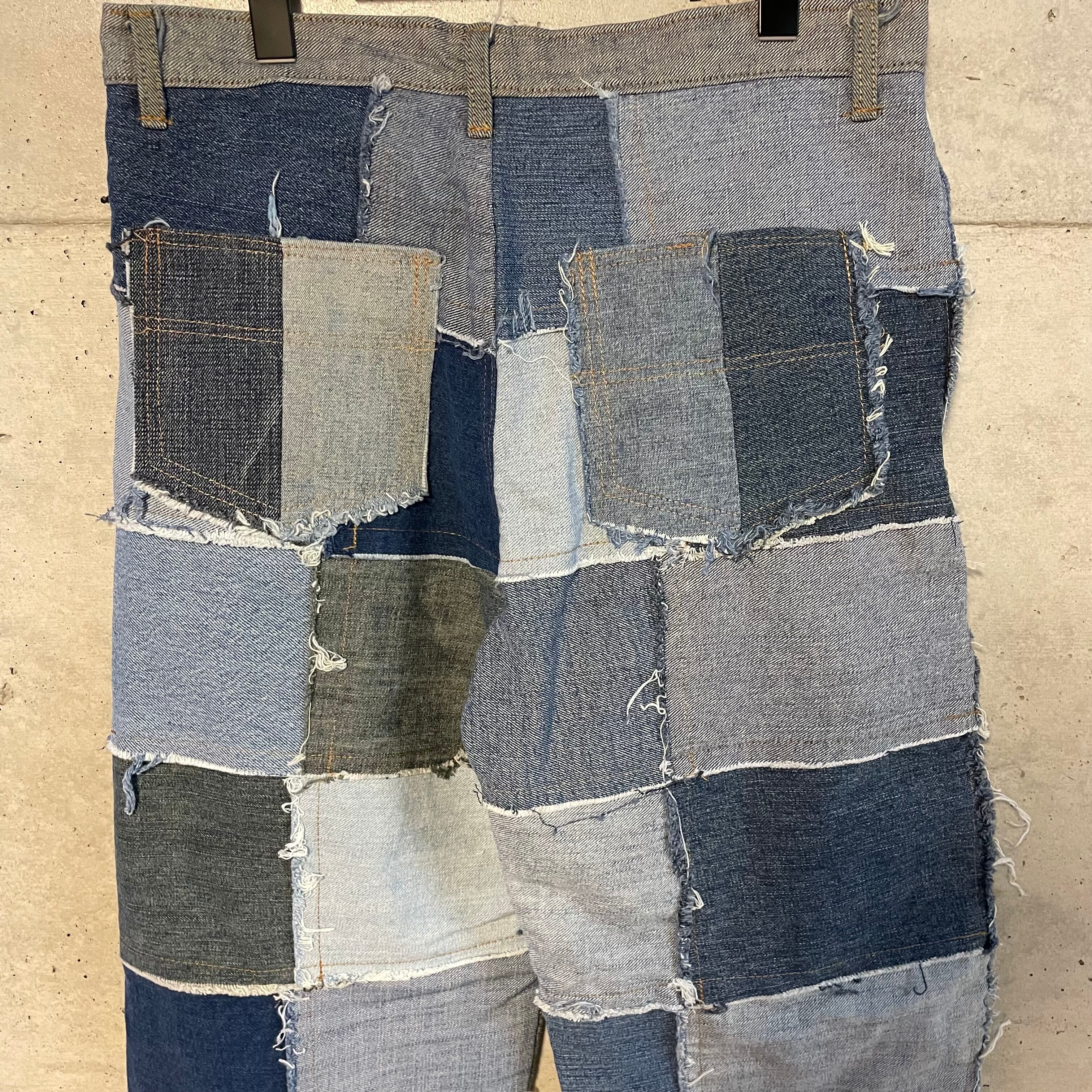 パッチワーク状に繋げたデニムのテキスタイルをそれぞれフレアさせたインパクト抜群な一着です。