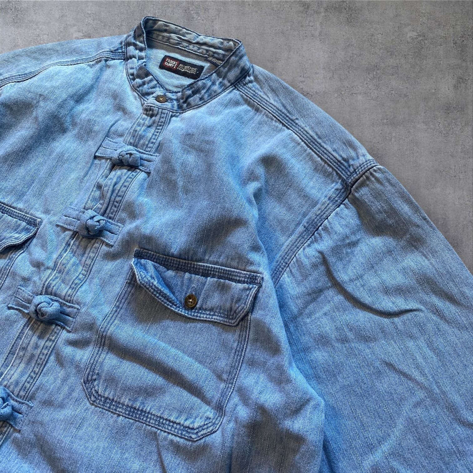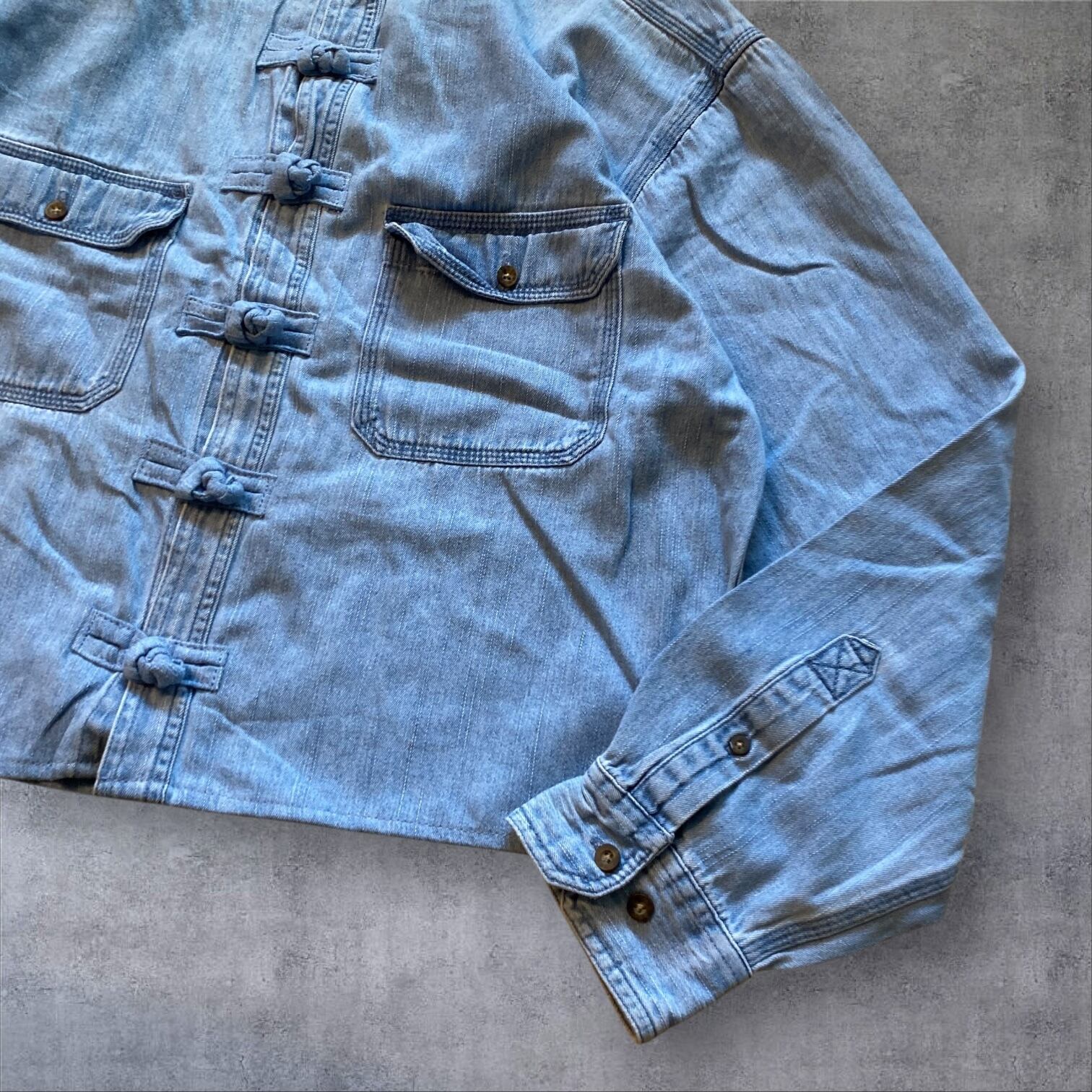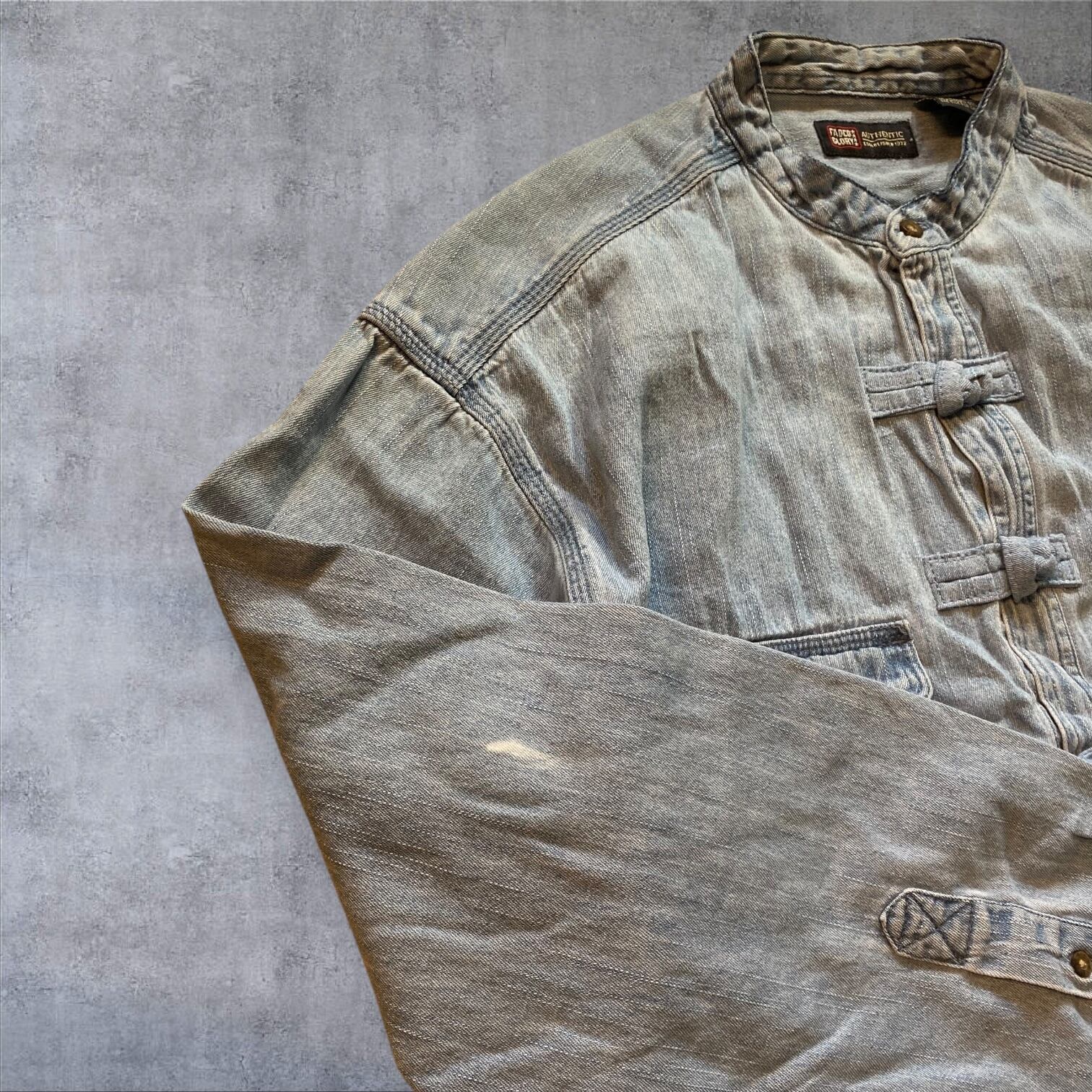 デニム素材を使用した珍しいチャイナシャツは、春先まで長く着用できるアイテムです。