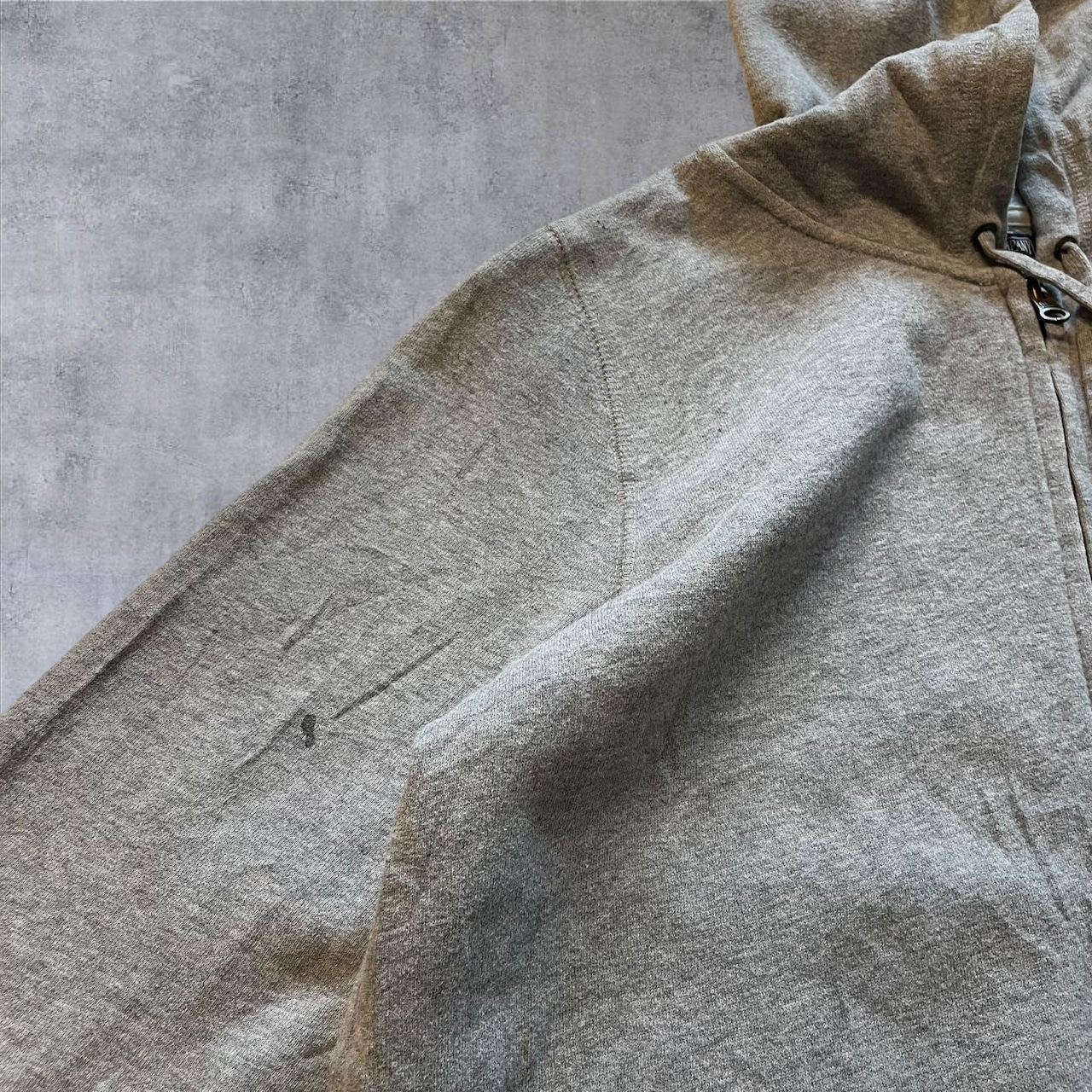 袖部分に小さな汚れがありますが、着用時に大きく目立つものではなく、古着ならではの風合いとして楽しめる状態です。
