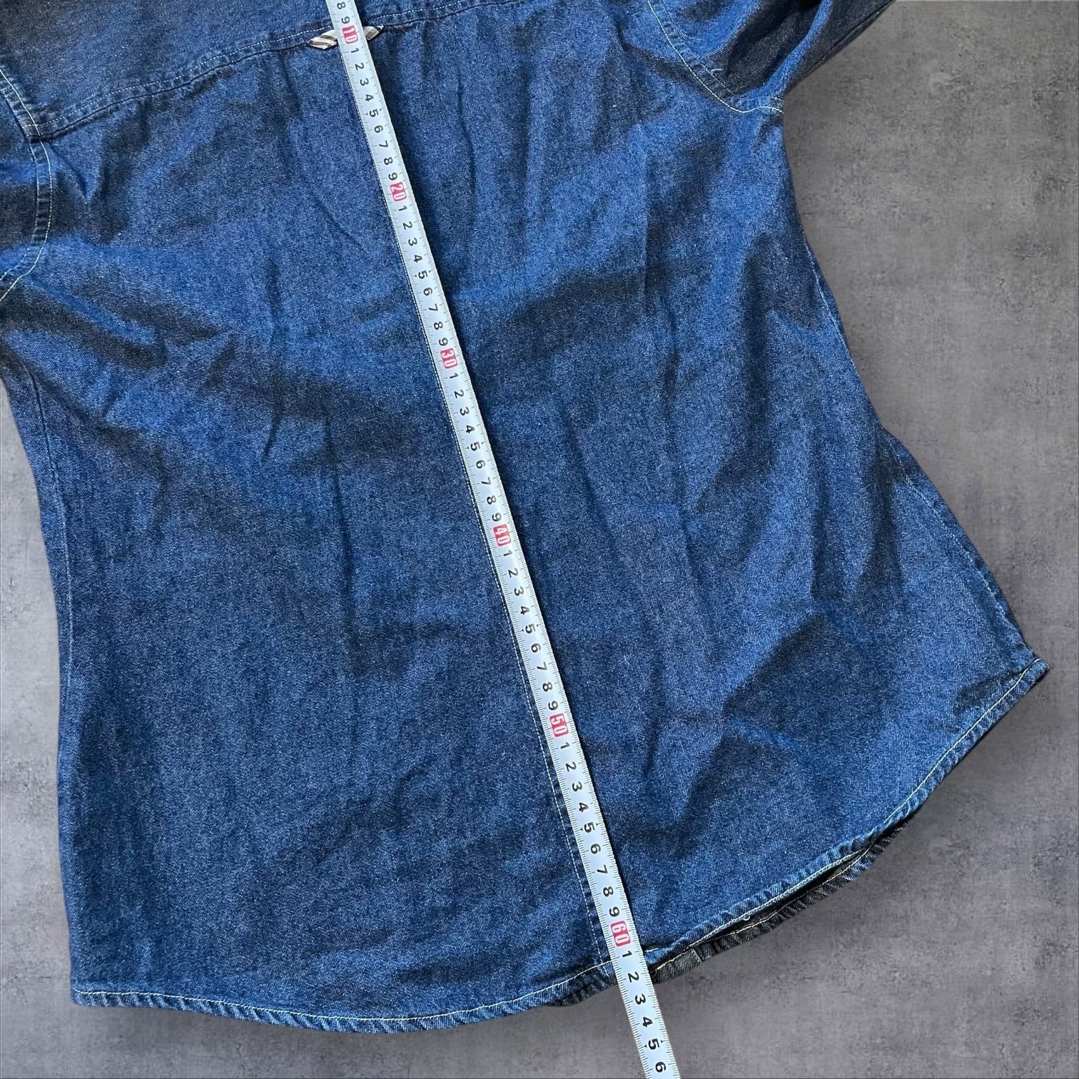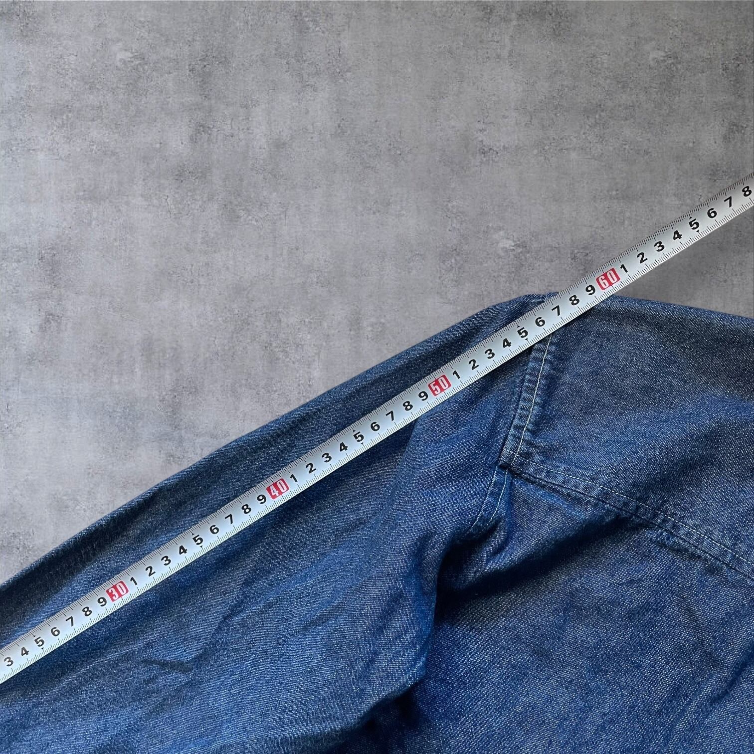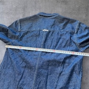 程よく色落ちしたインディゴデニムに、胸元の刺繍ロゴが映える一着です。
