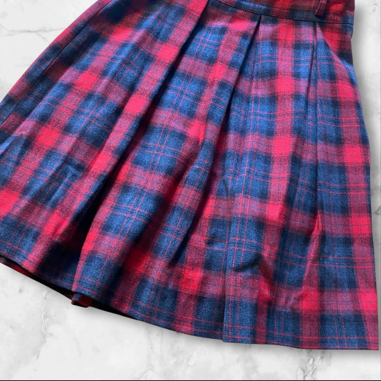 ほどよい広がりとプリーツ風シルエットで、脚がすらっと見えるバランスの良い一枚です。