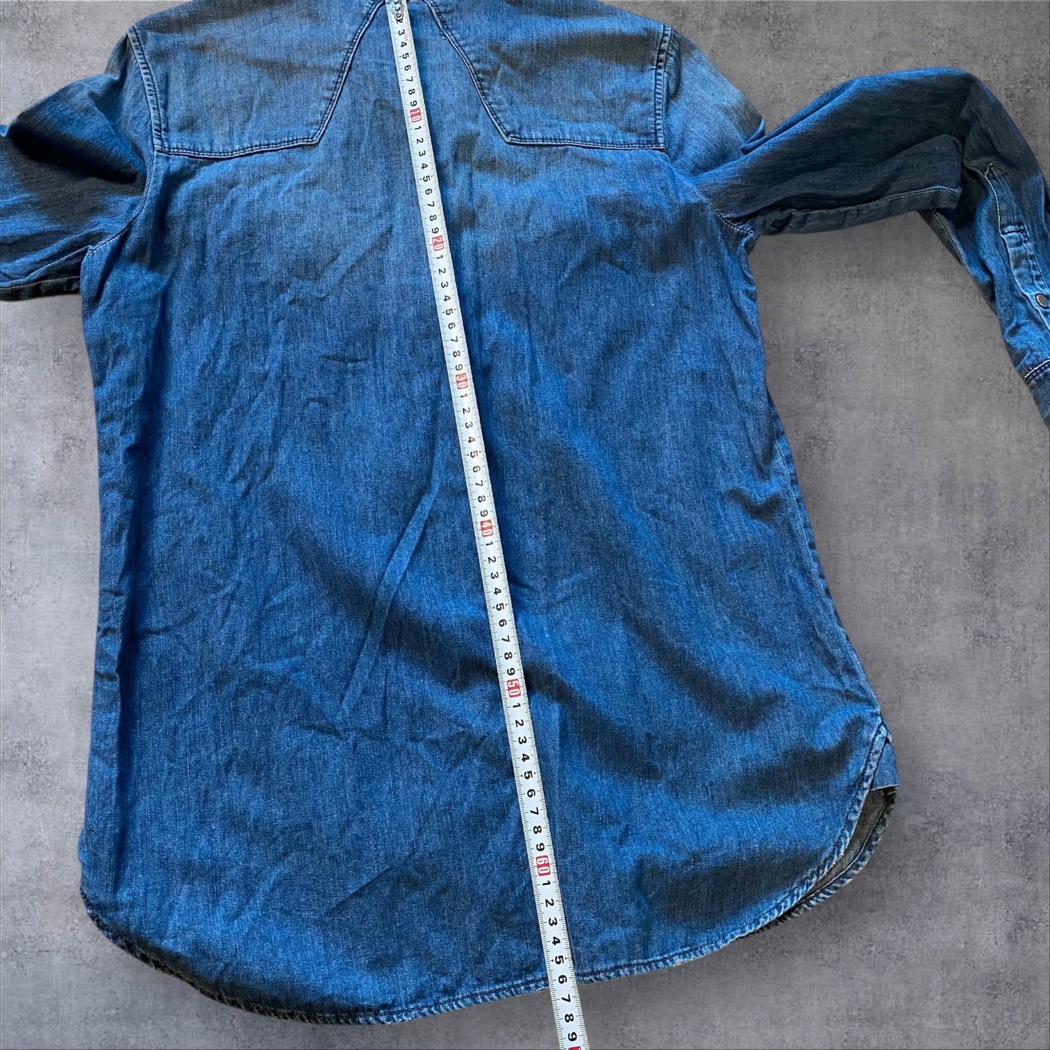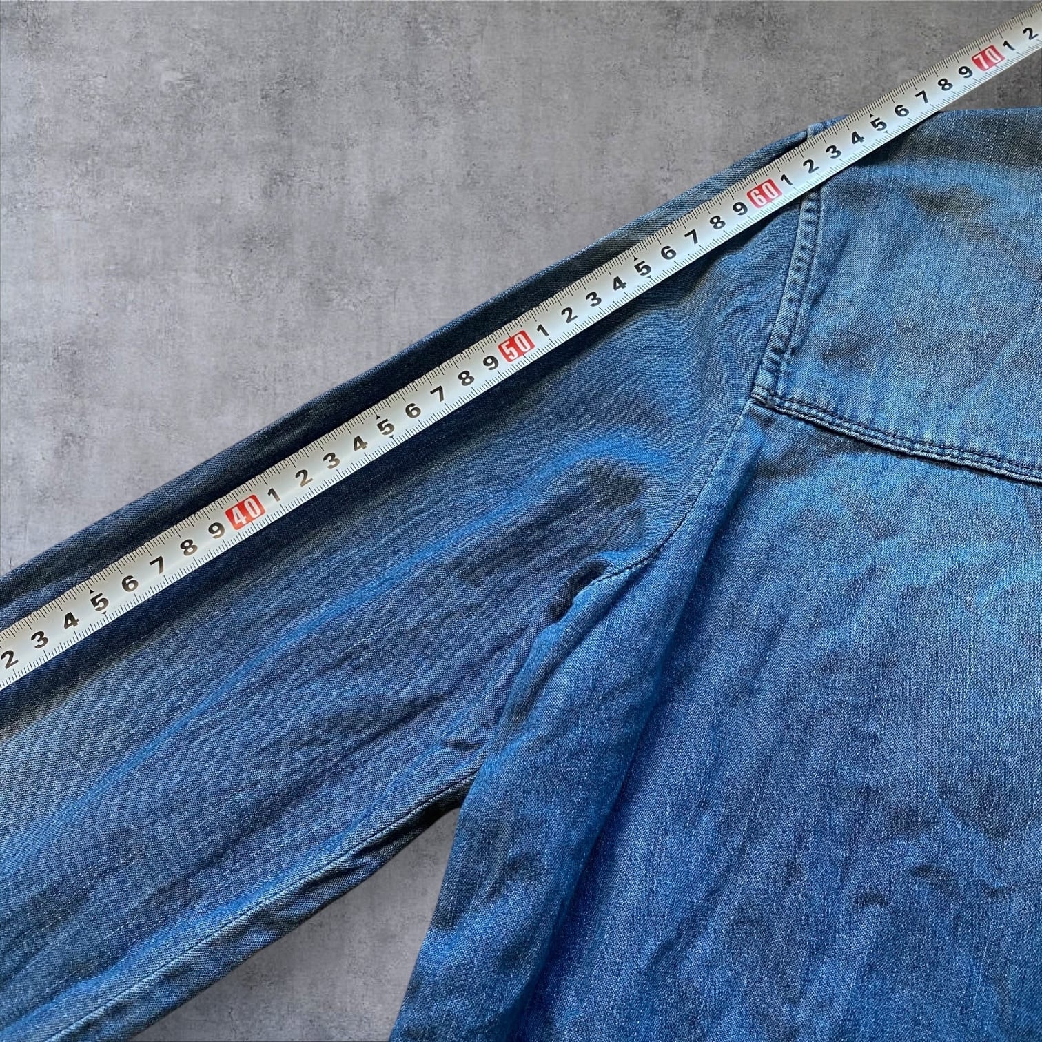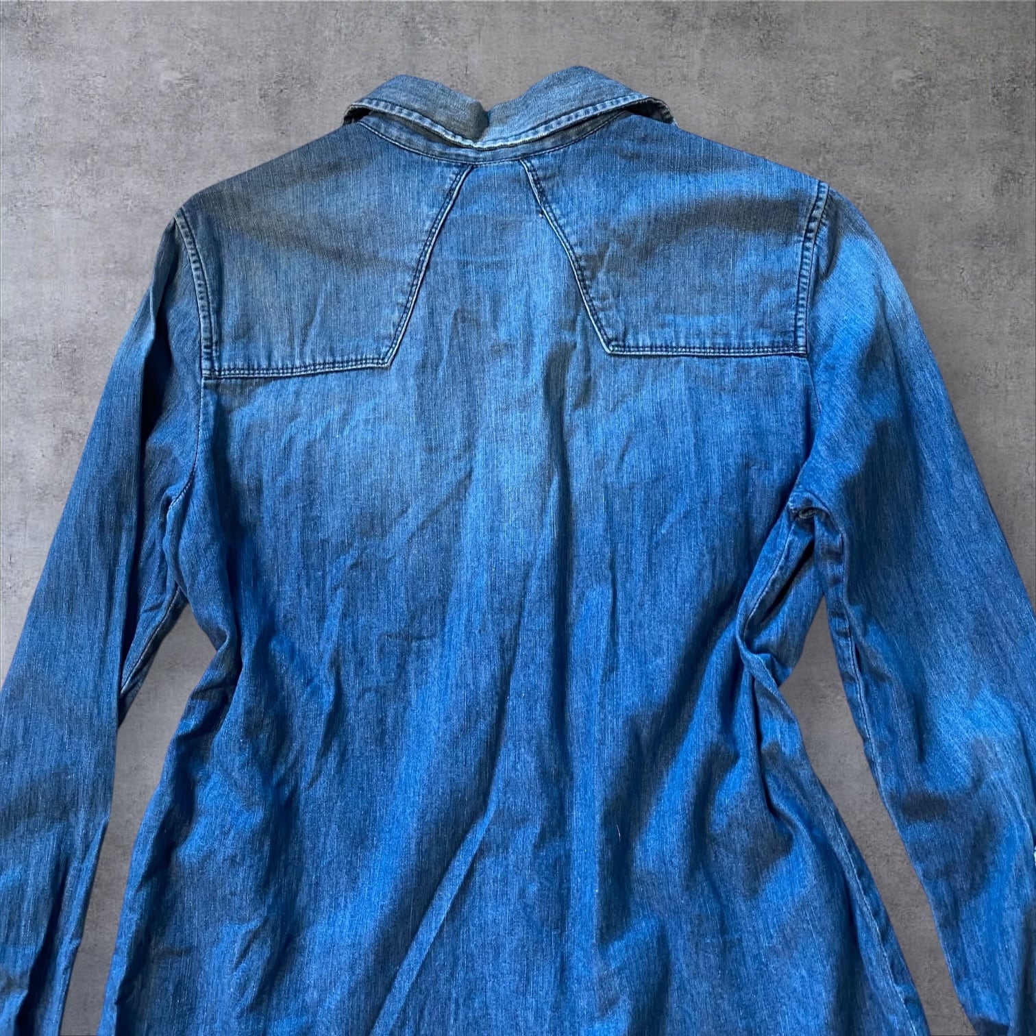 程よく色落ちしたデニムの表情と、ウエスタンライクな切り替え、スナップボタンや袖口ディテールがY2K感をしっかり演出してくれる一着です。
