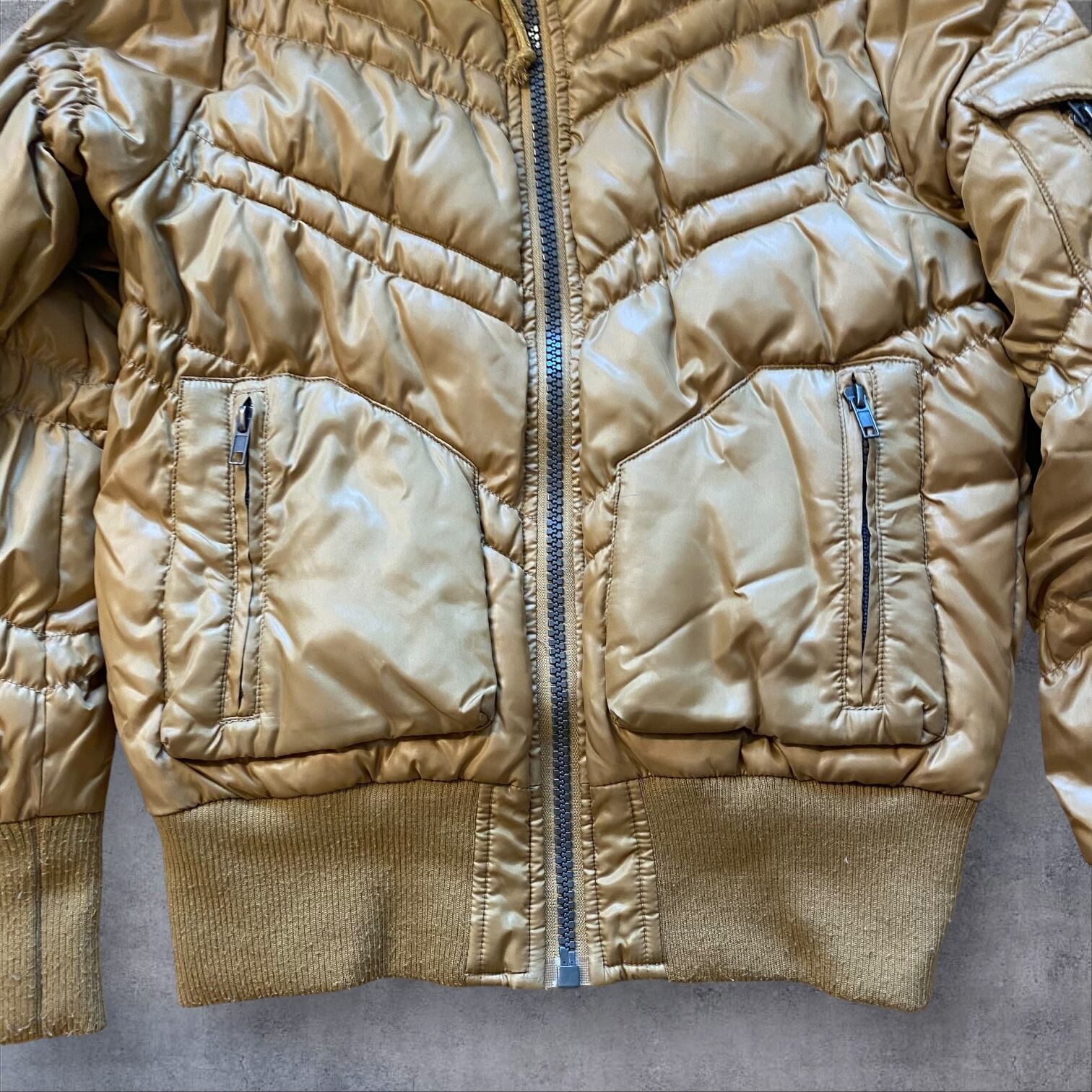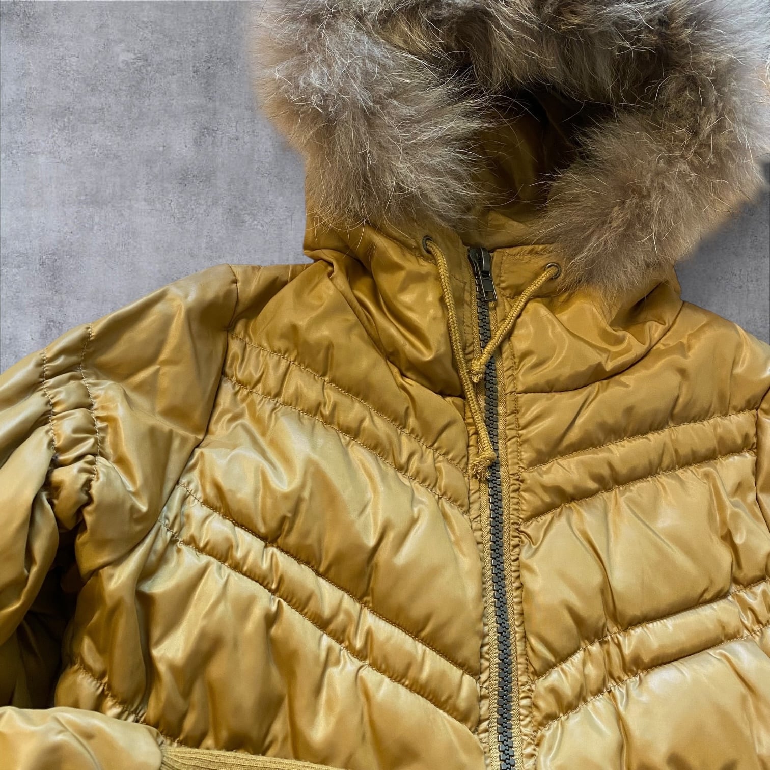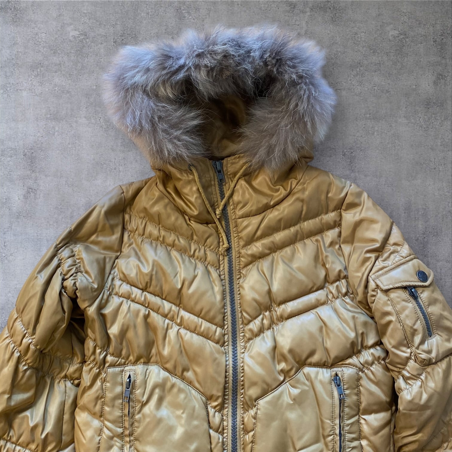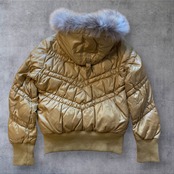 Y2Kムード全開のファー付きダウンジャケット。