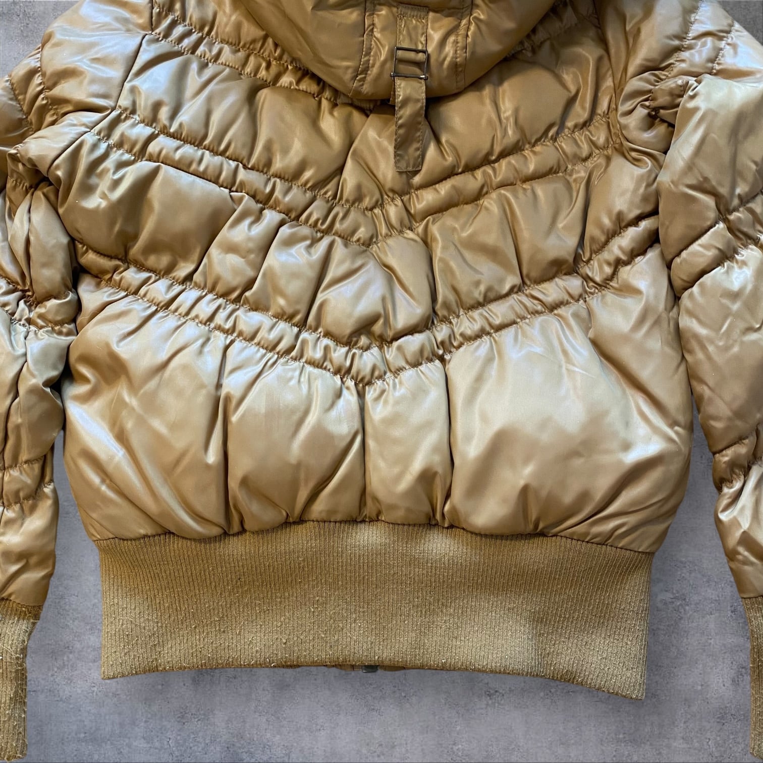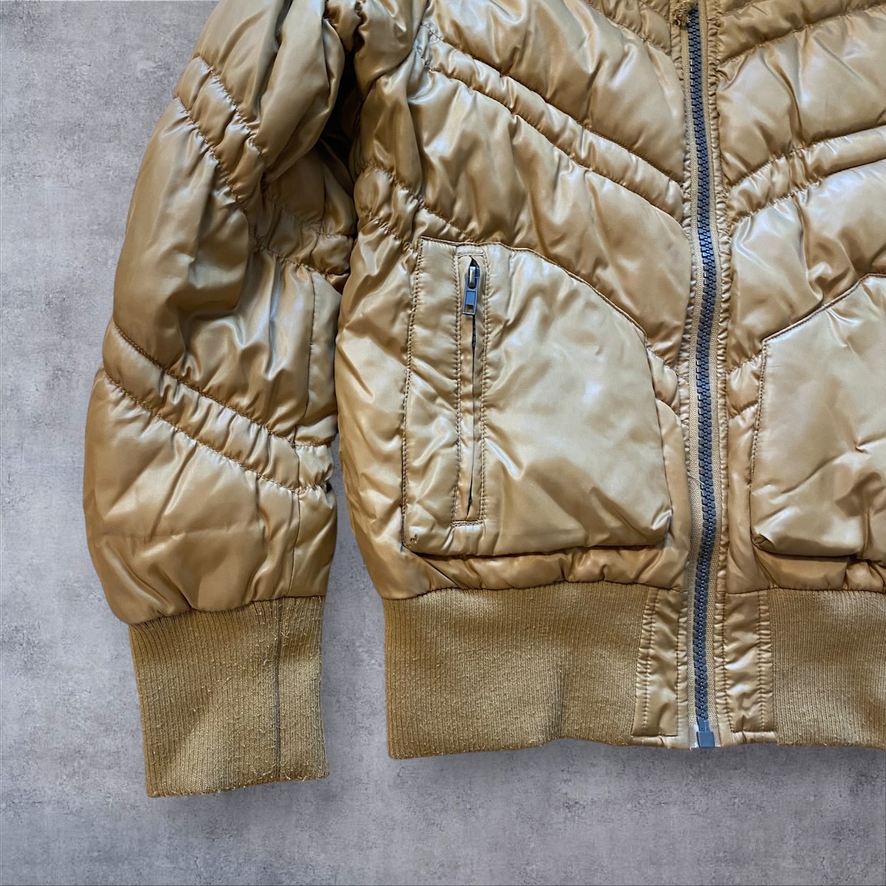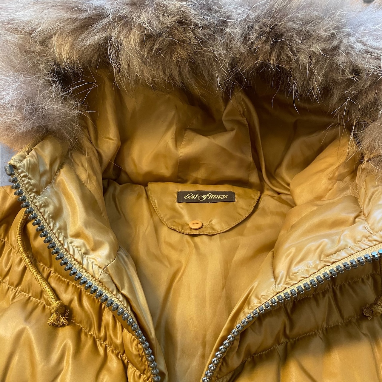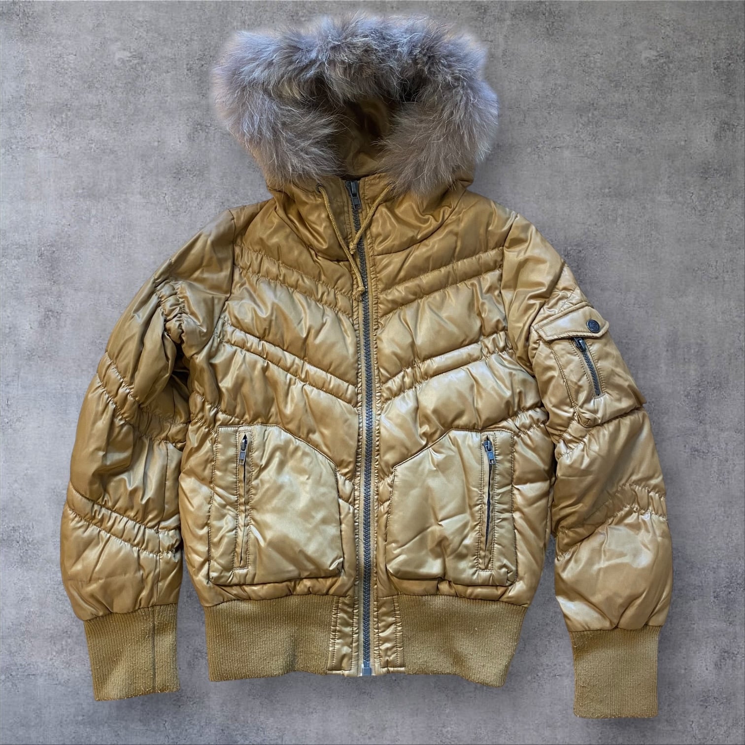 Y2Kムード全開のファー付きダウンジャケット。