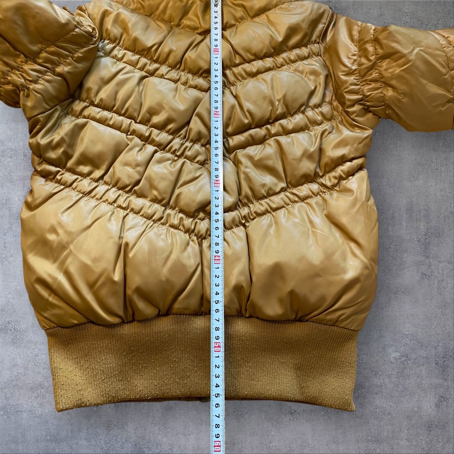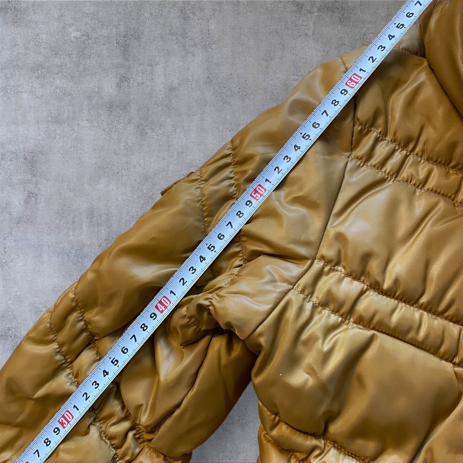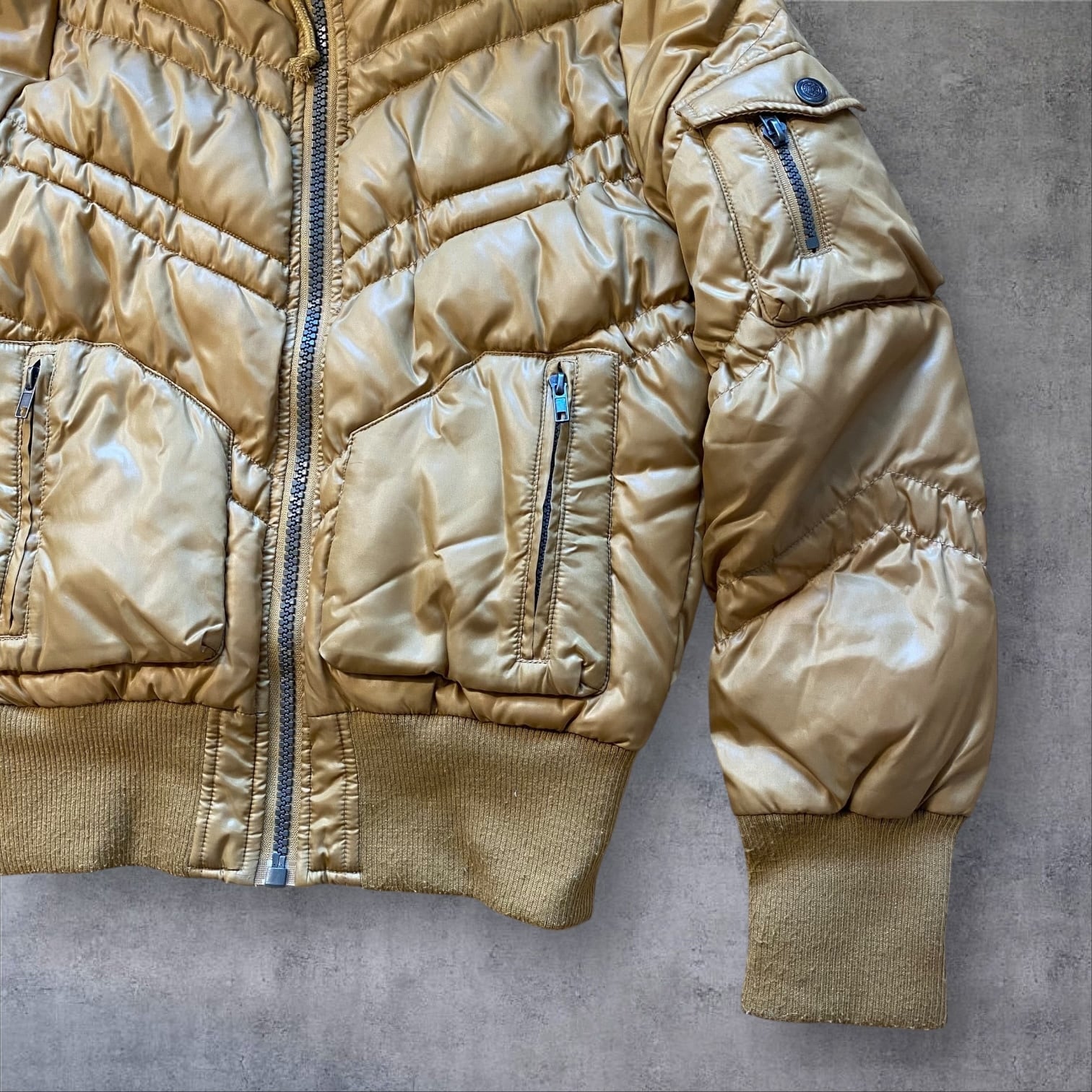 光沢感のあるマスタードカラーが、当時らしいギャル・ストリート感を強く演出します。