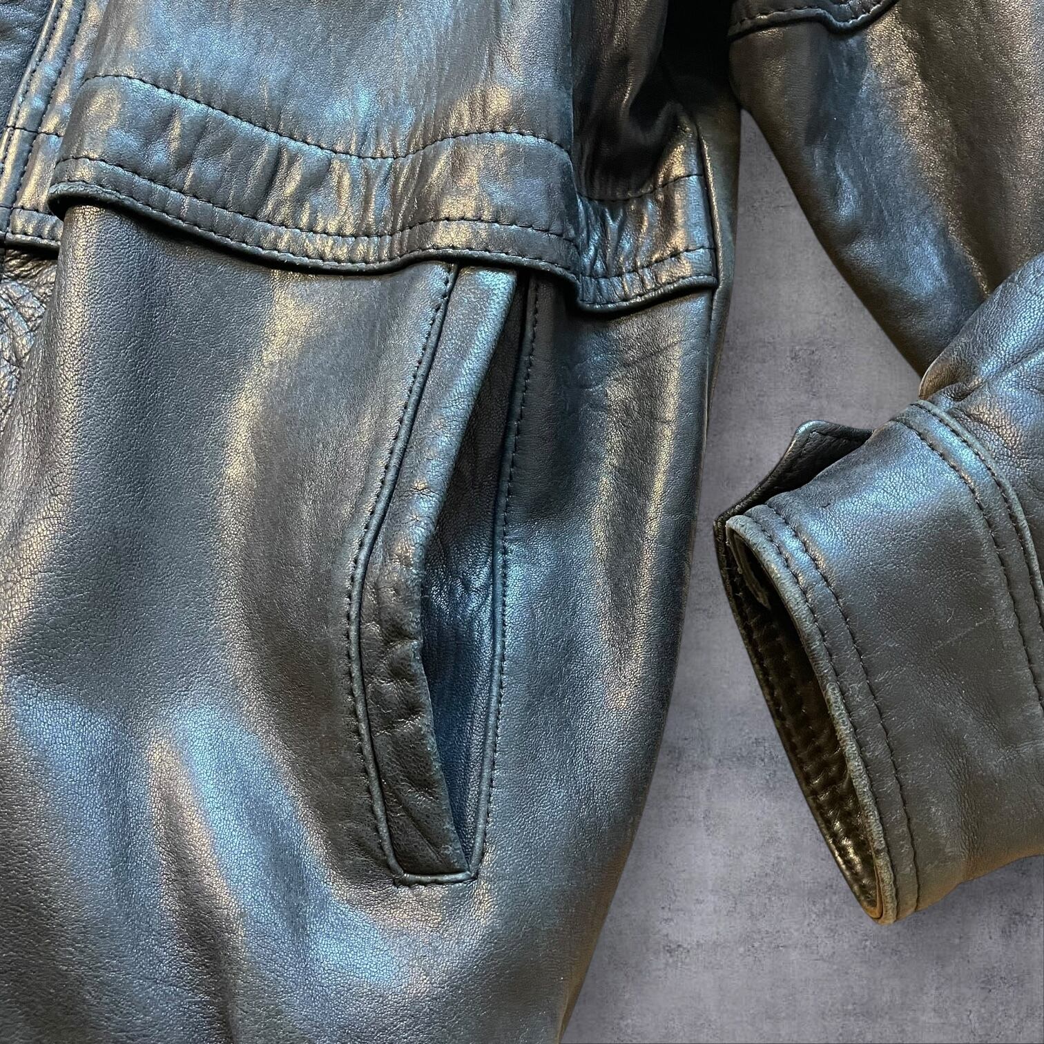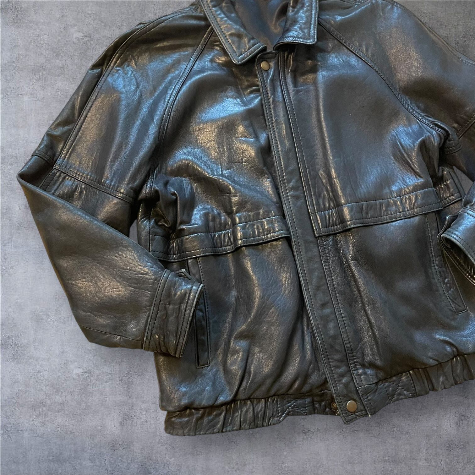 程よく艶のあるブラックレザーが、シンプルながらも存在感のある一着。