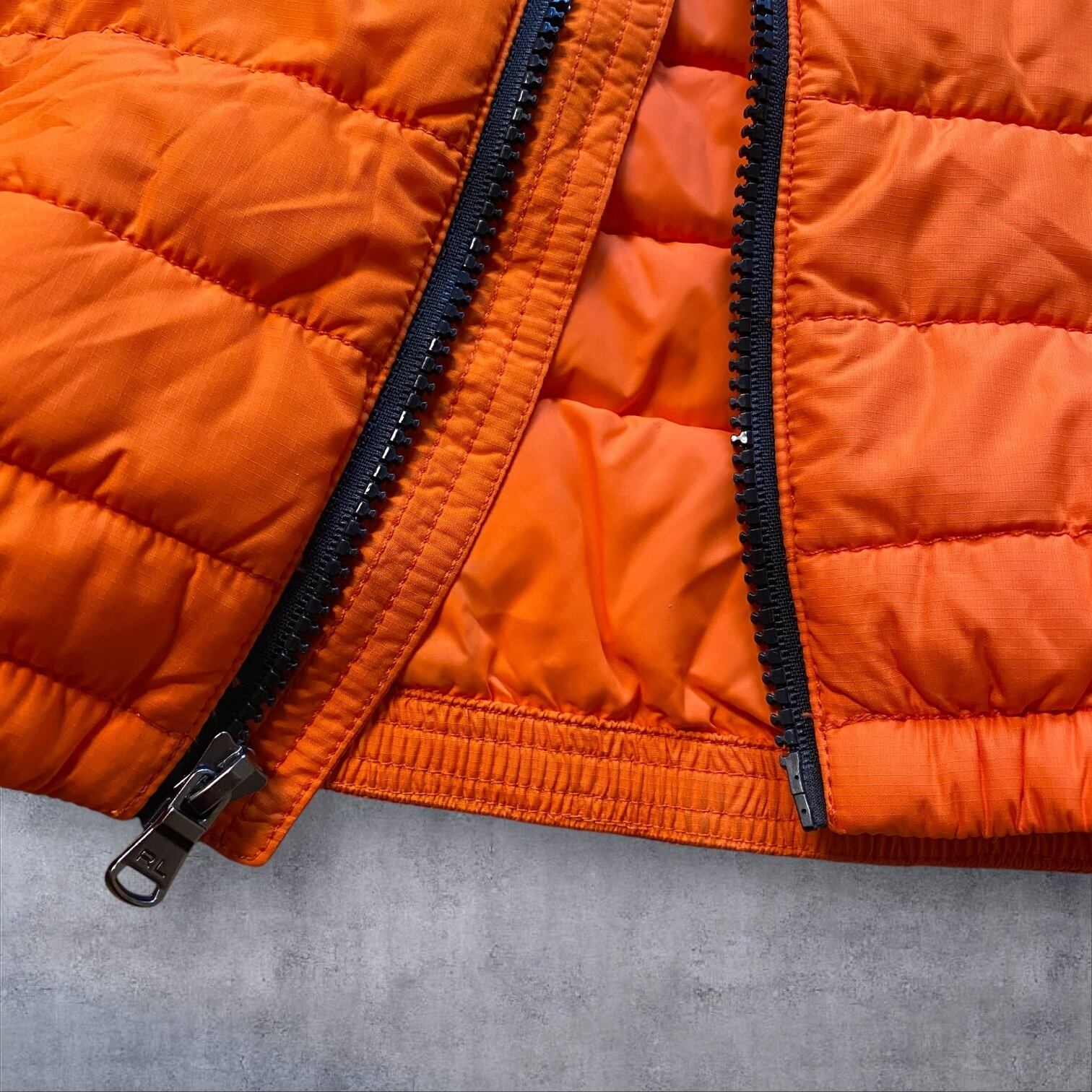 発色の良いオレンジカラーがコーディネートの主役になる一着です。