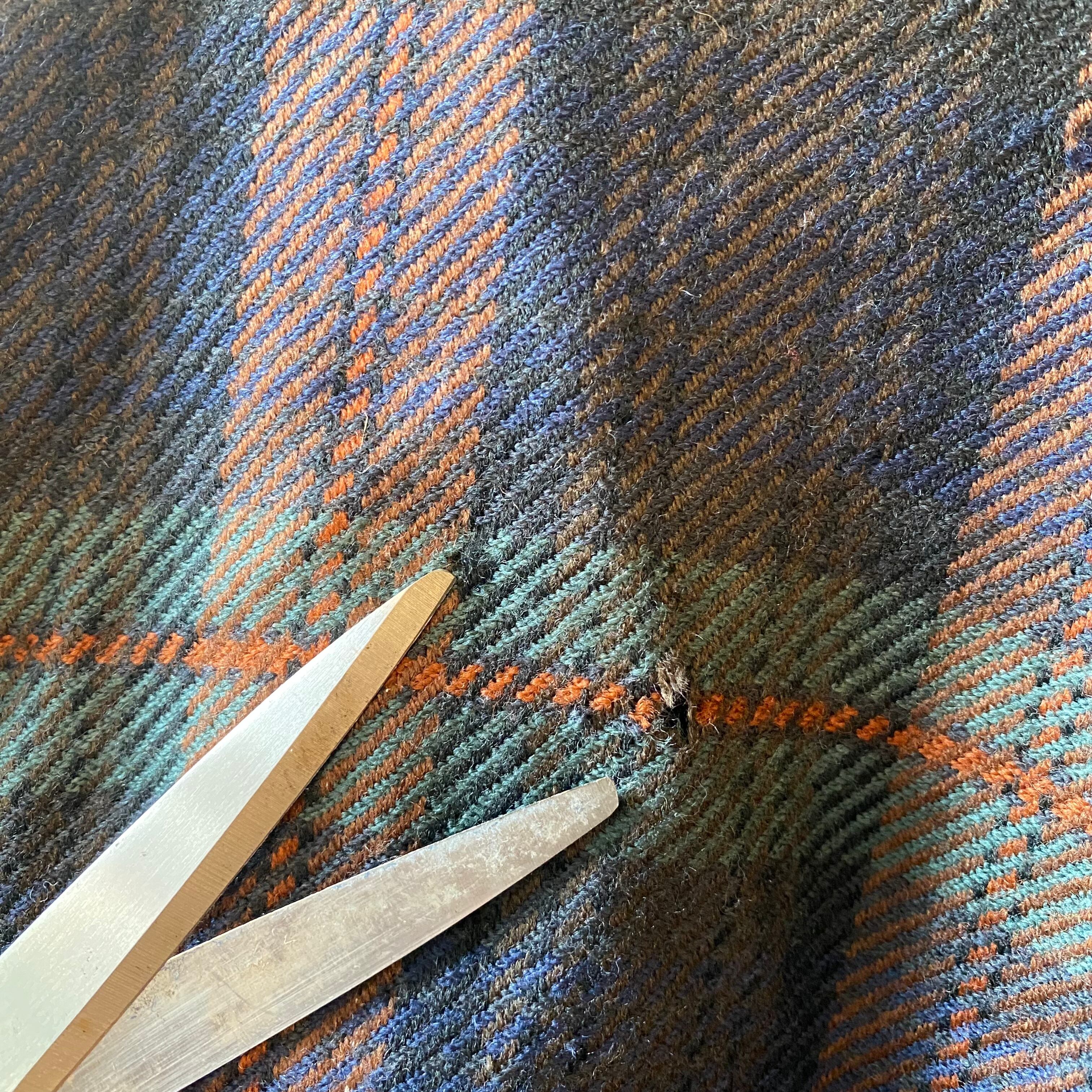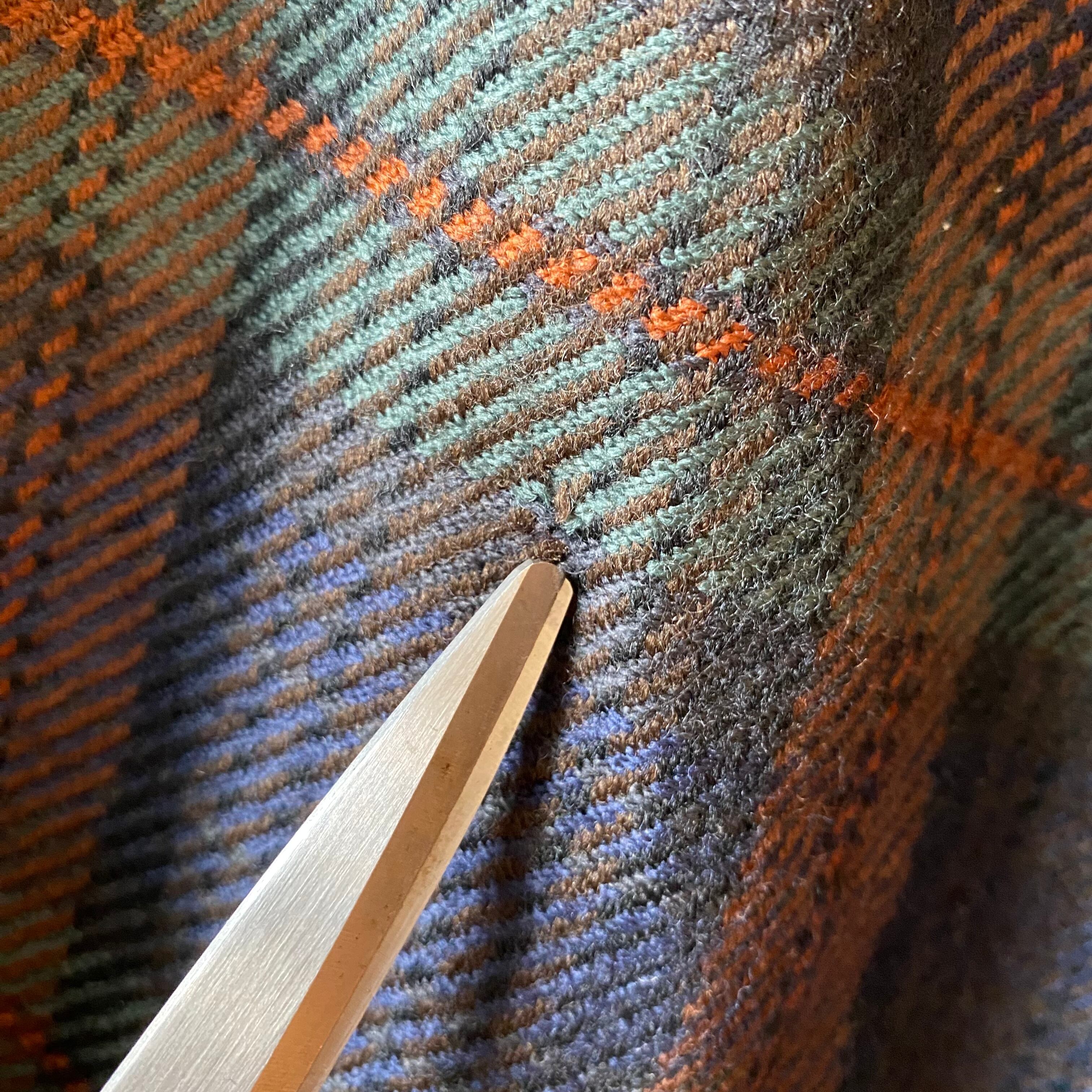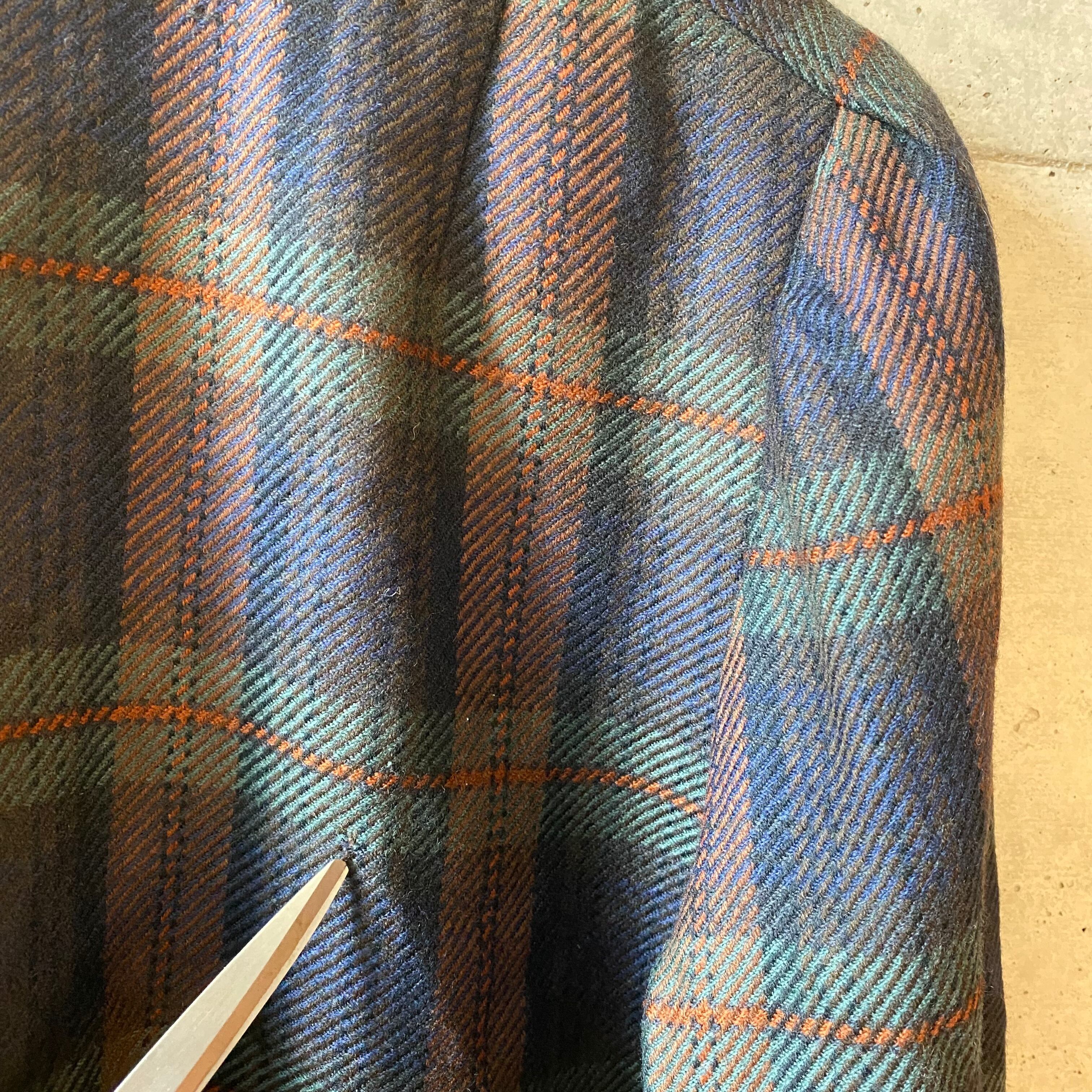 深みのあるネイビー・グリーンを基調に、オレンジのラインが効いたクラシックなチェック柄。