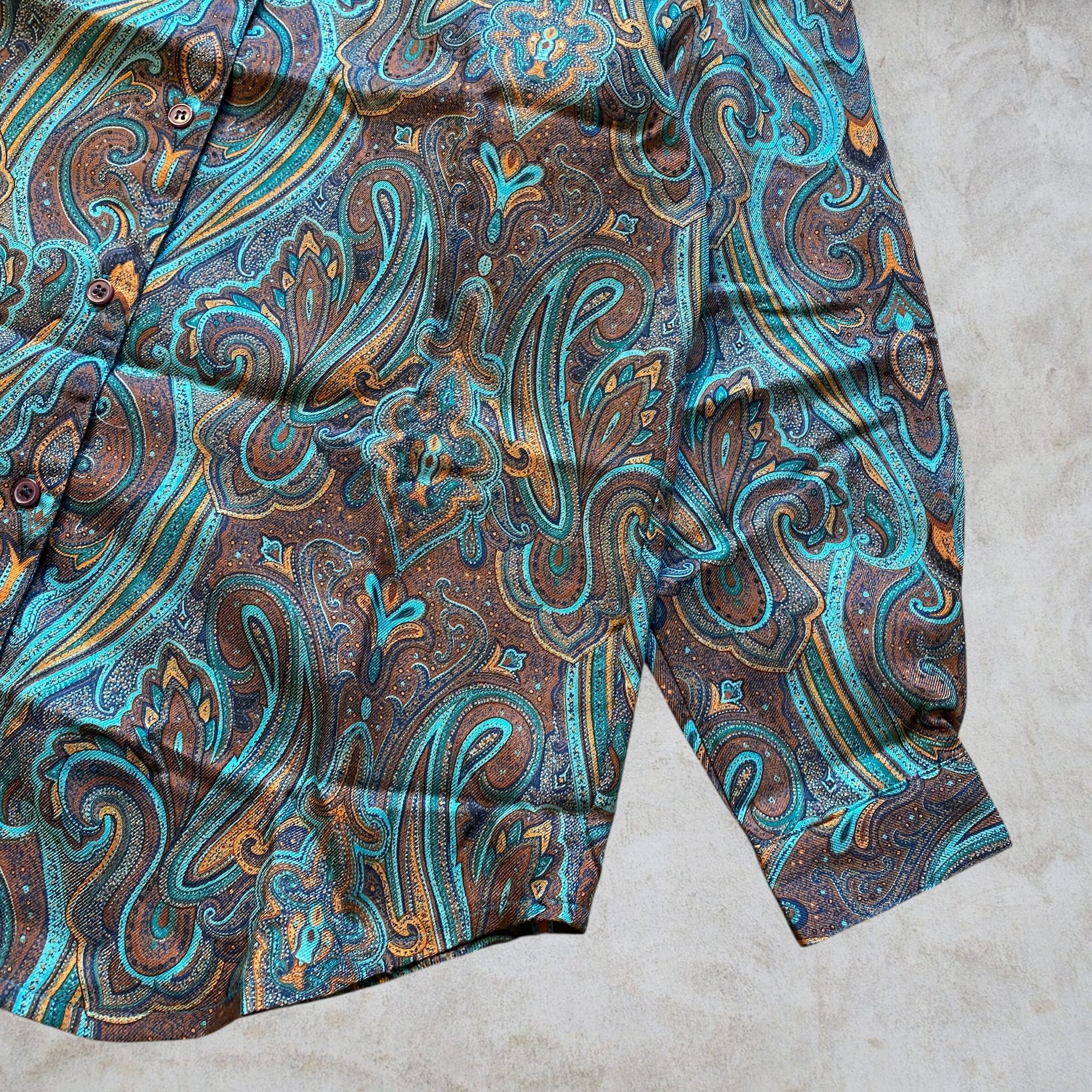 カラーリング抜群のペイズリー総柄シャツ。