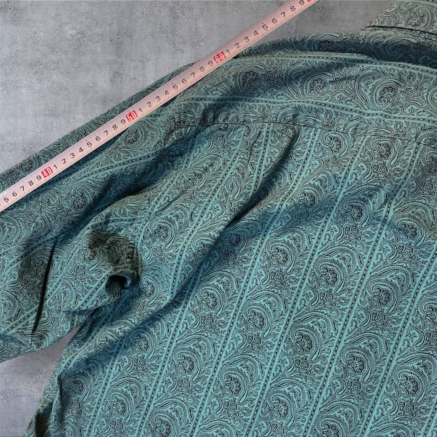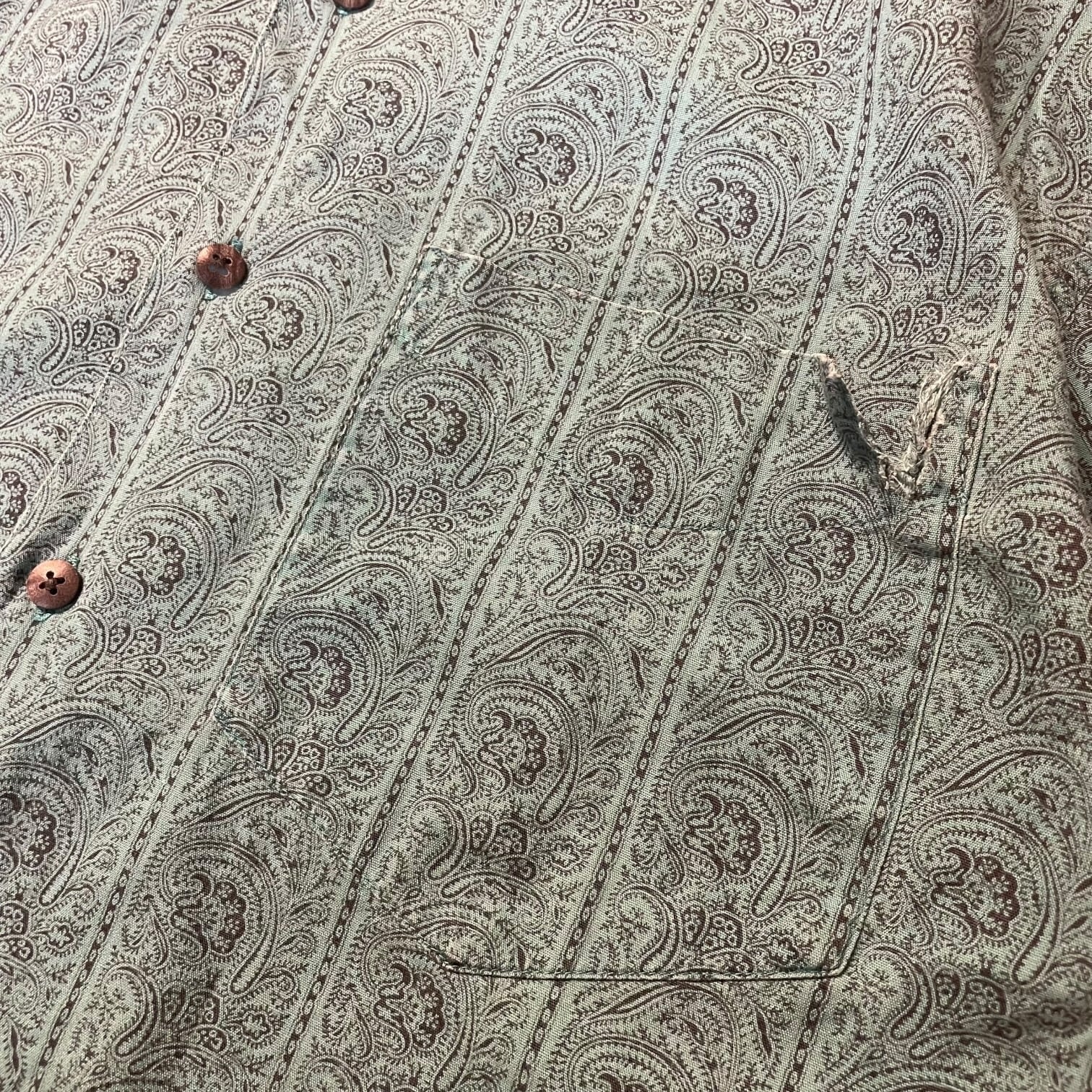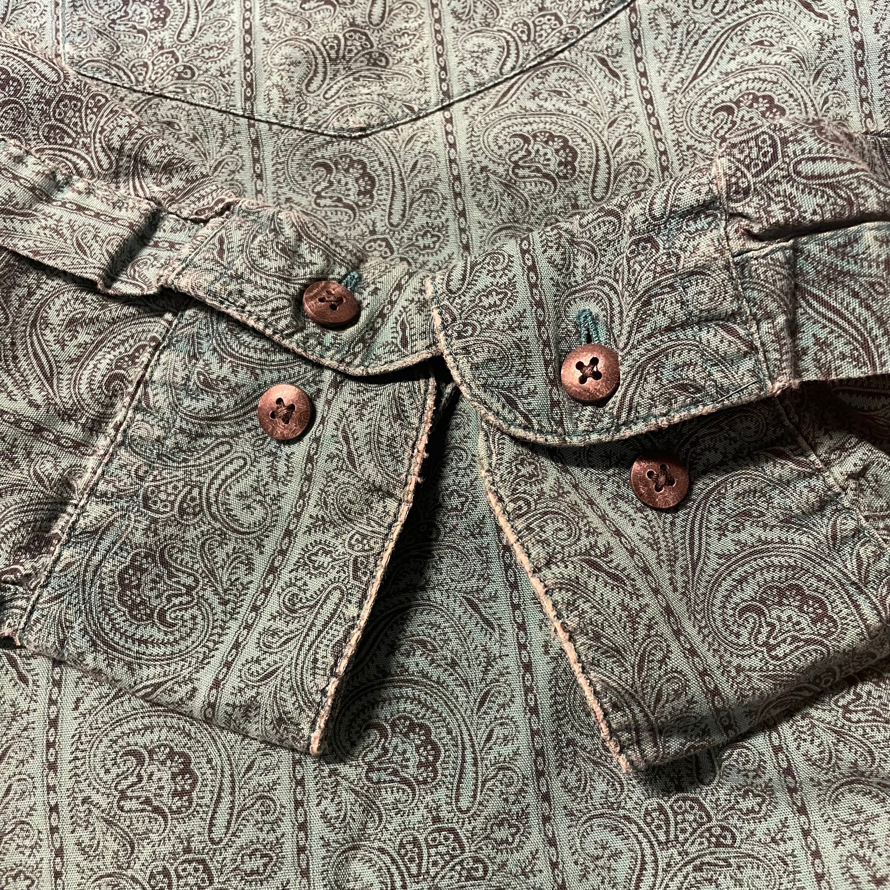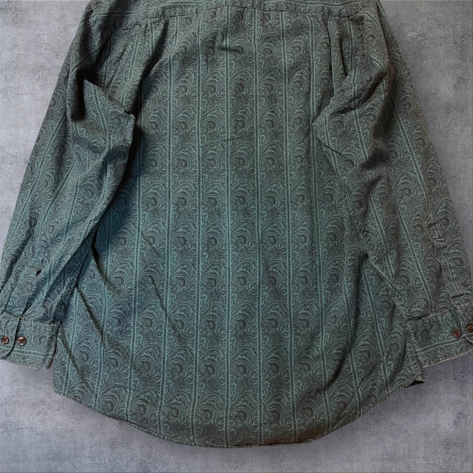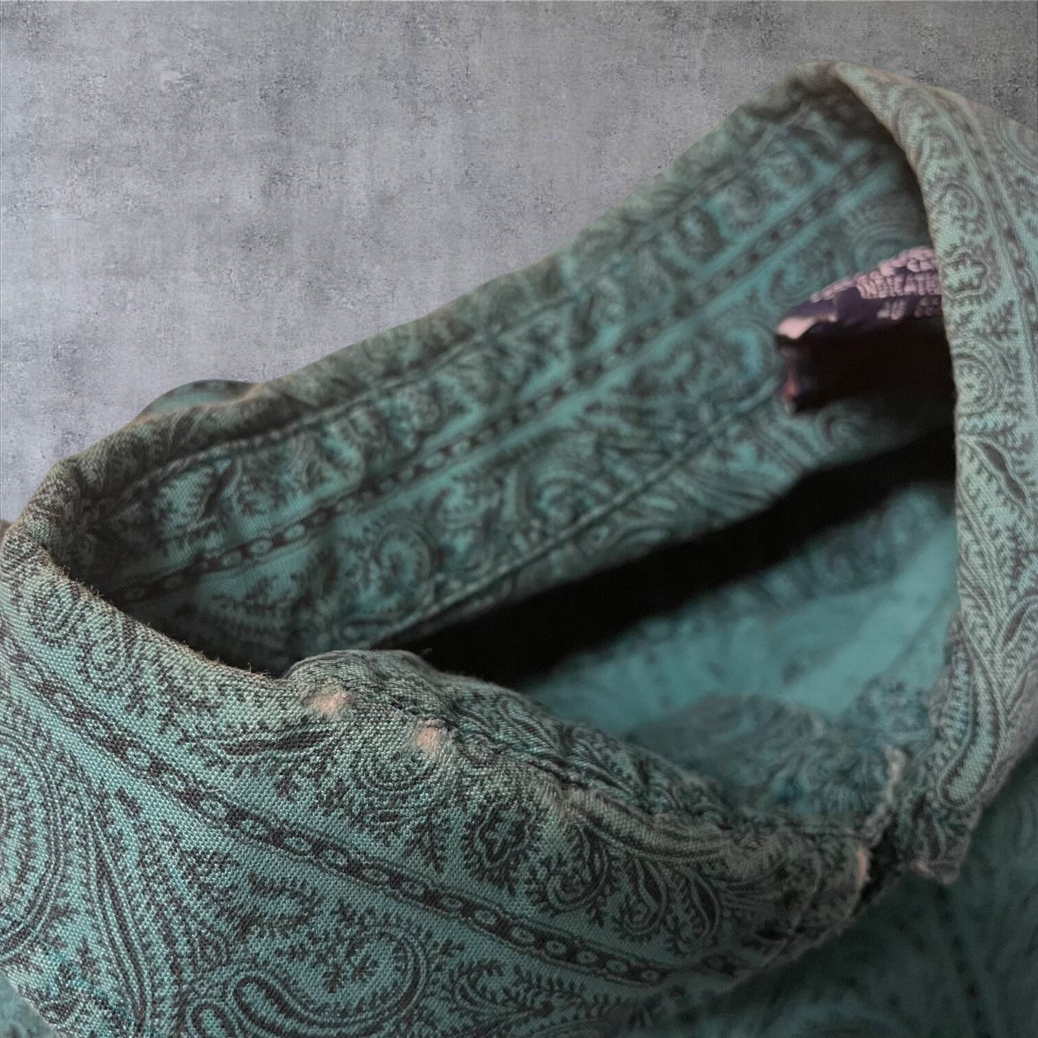 グッドカラーなエメラルドグリーンに、繊細でオリエンタルなペイズリー総柄。