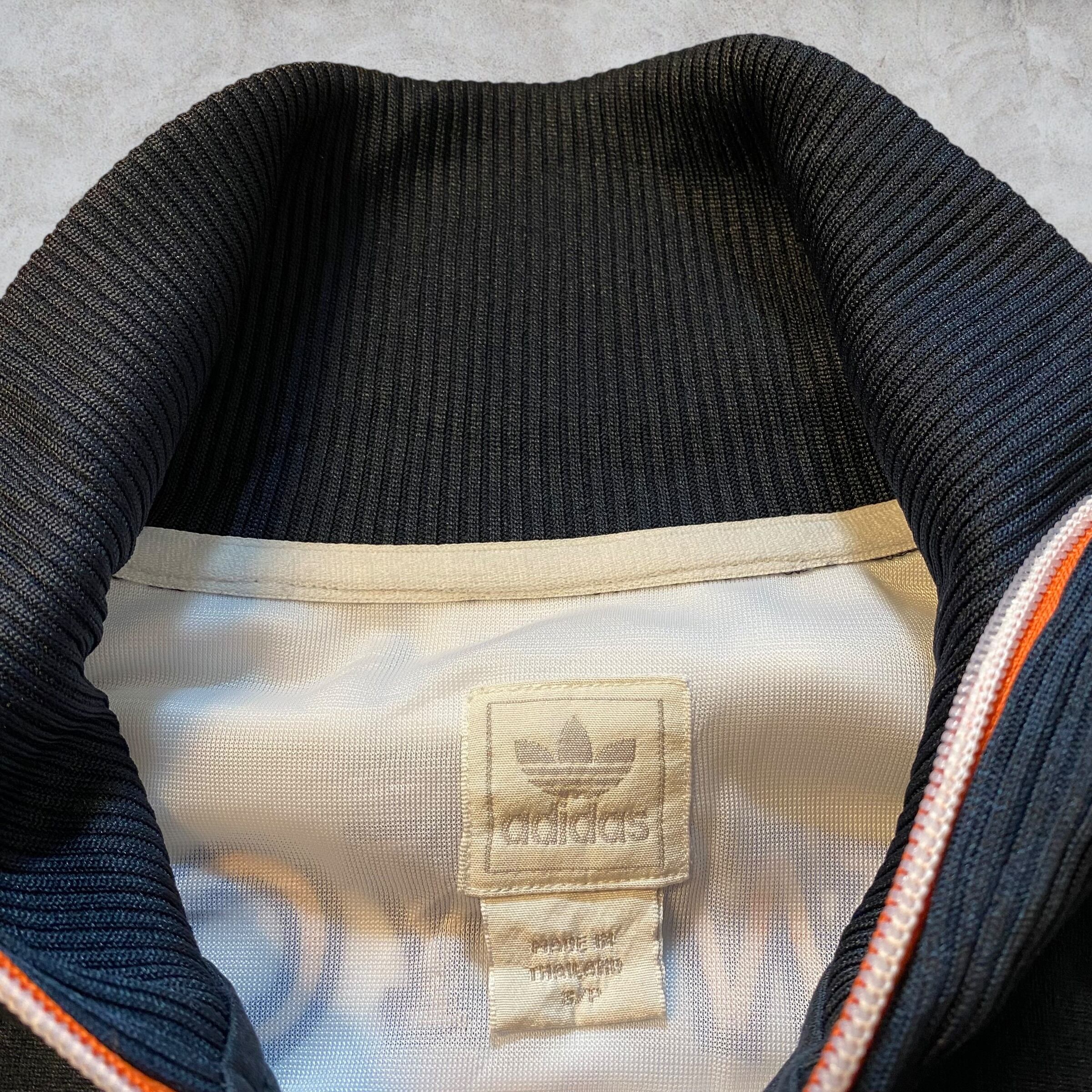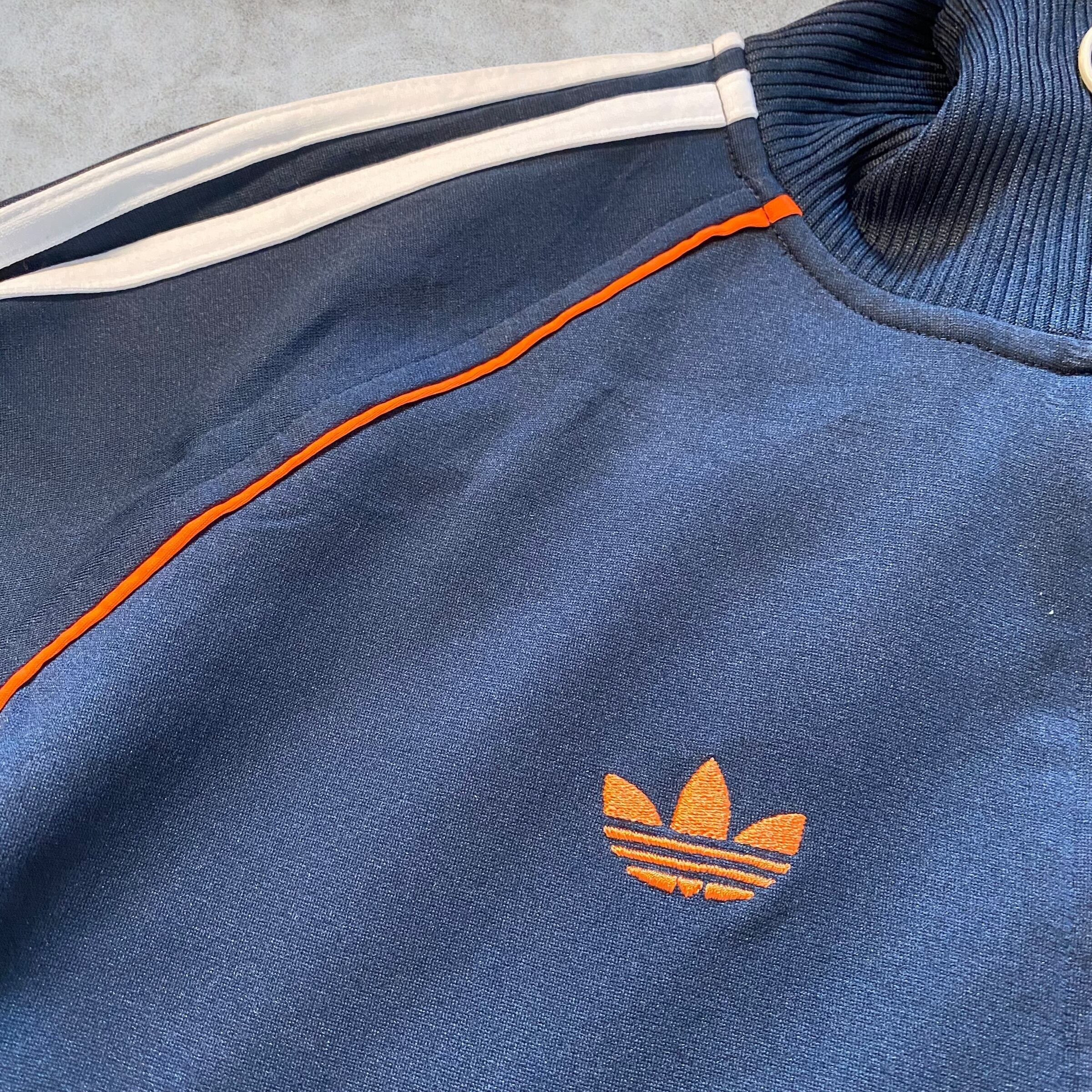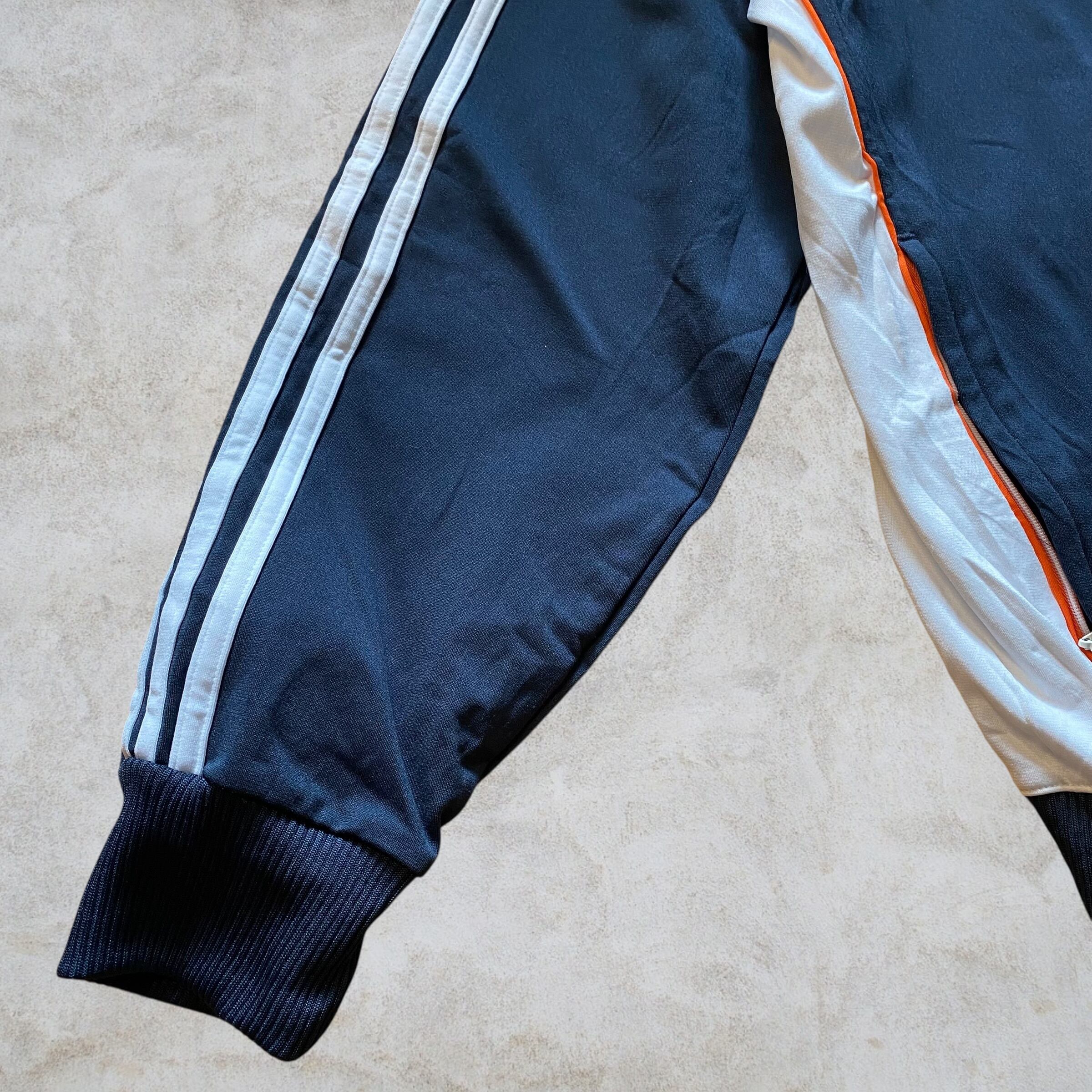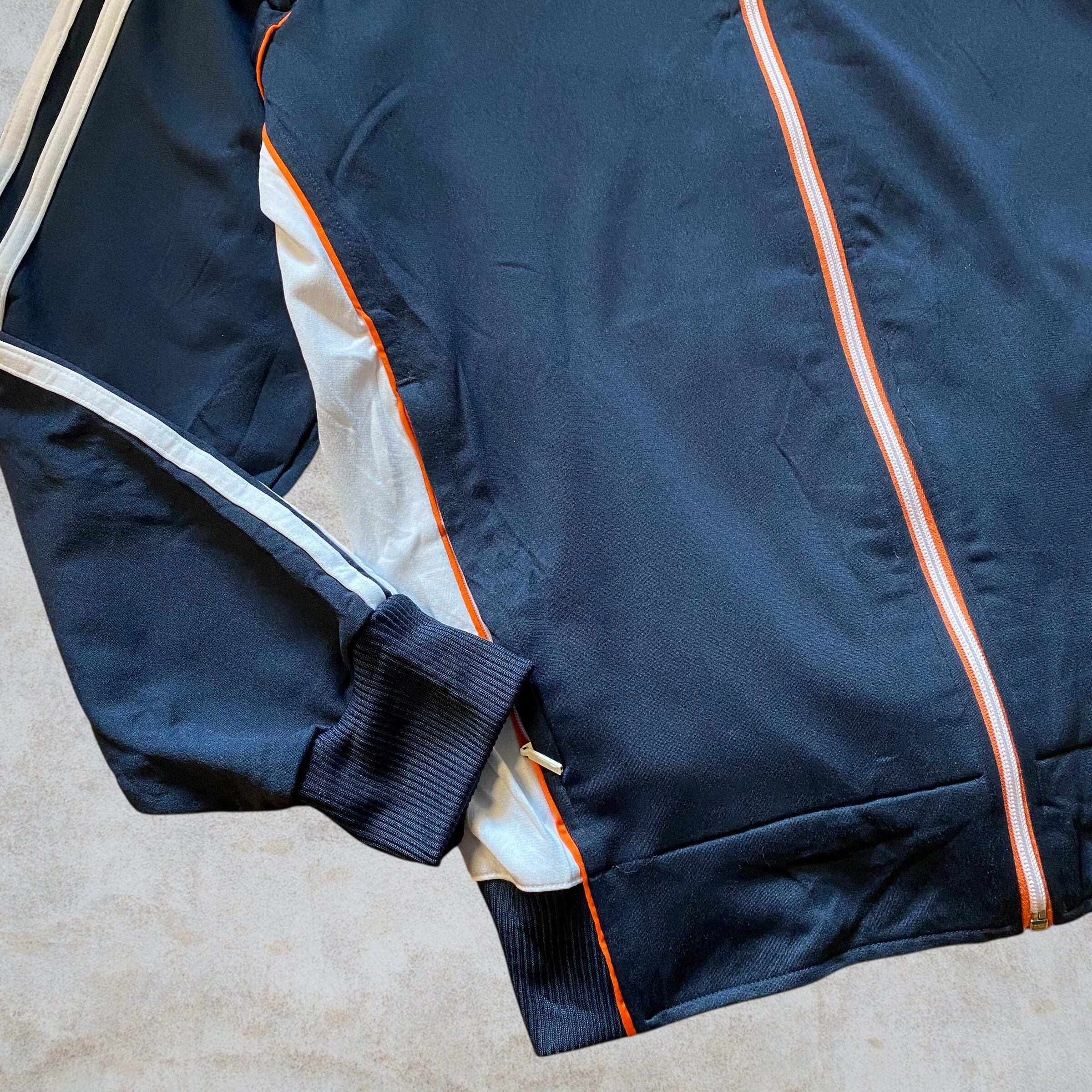 ネイビーをベースにオレンジラインが入る90年代らしい配色。ゆったり着られるサイズ感でトラックパンツやデニムとの相性も抜群。