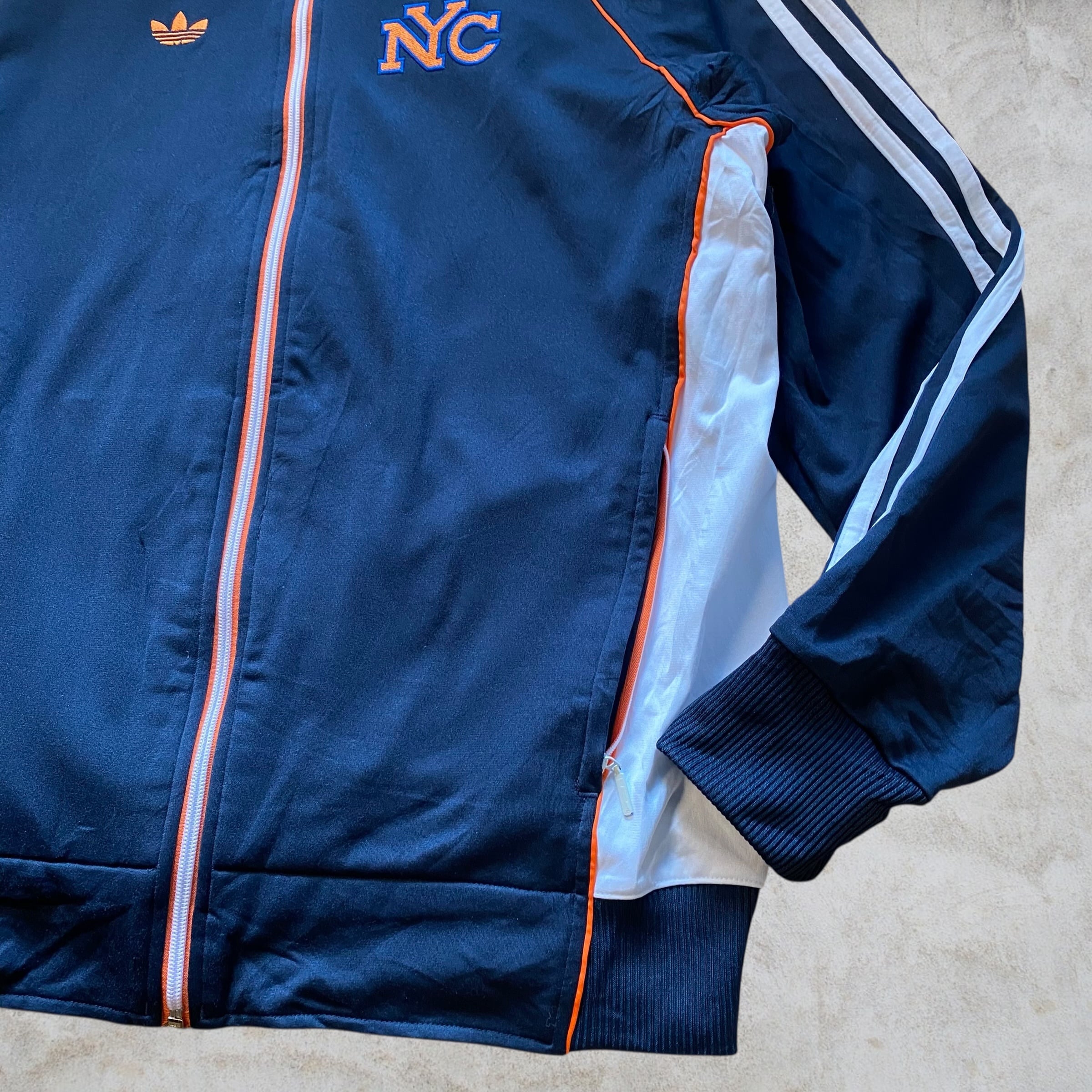 ヴィンテージアディダスの中でもデザイン性の高いNYCシリーズは年々相場上昇中。コレクションにもおすすめの一枚です。