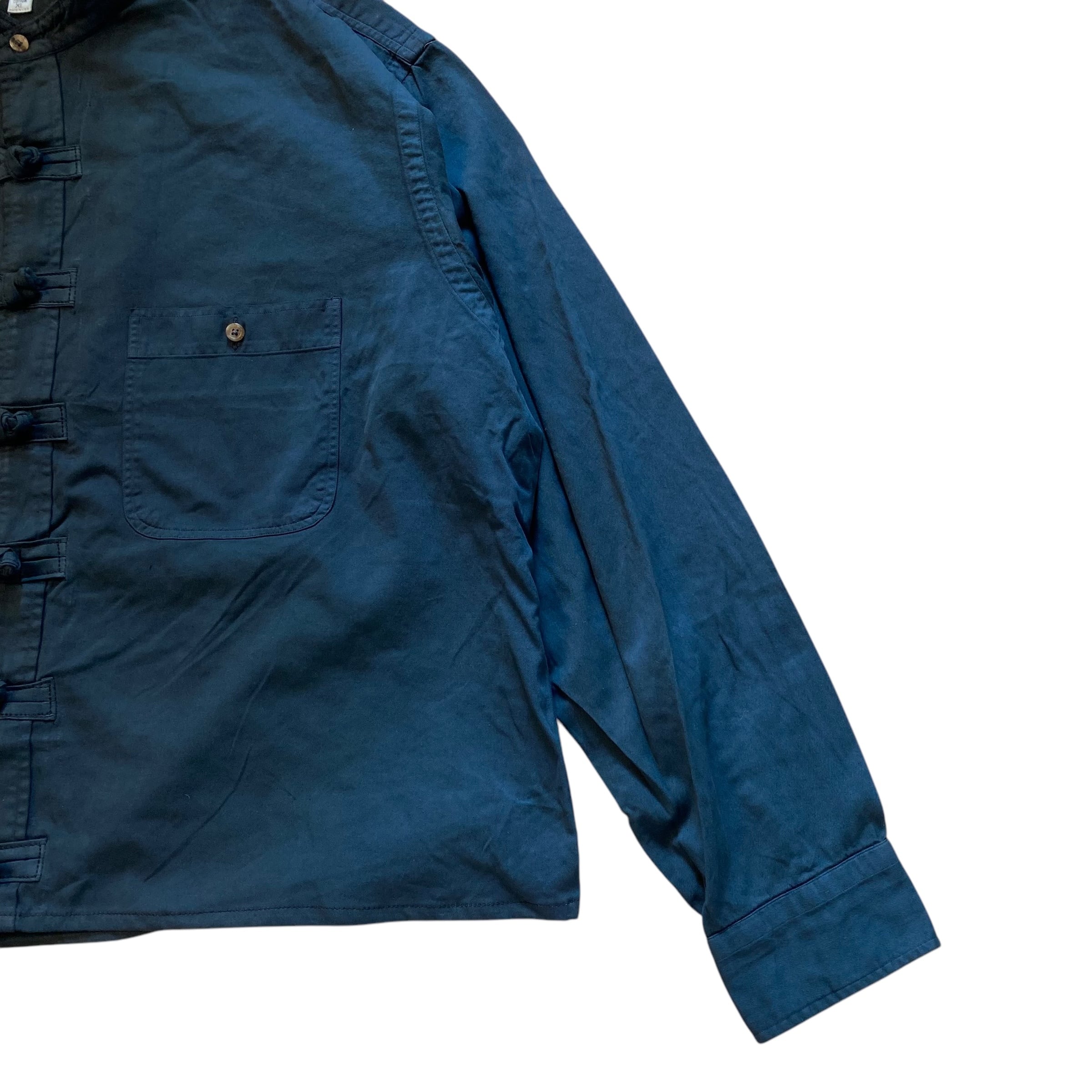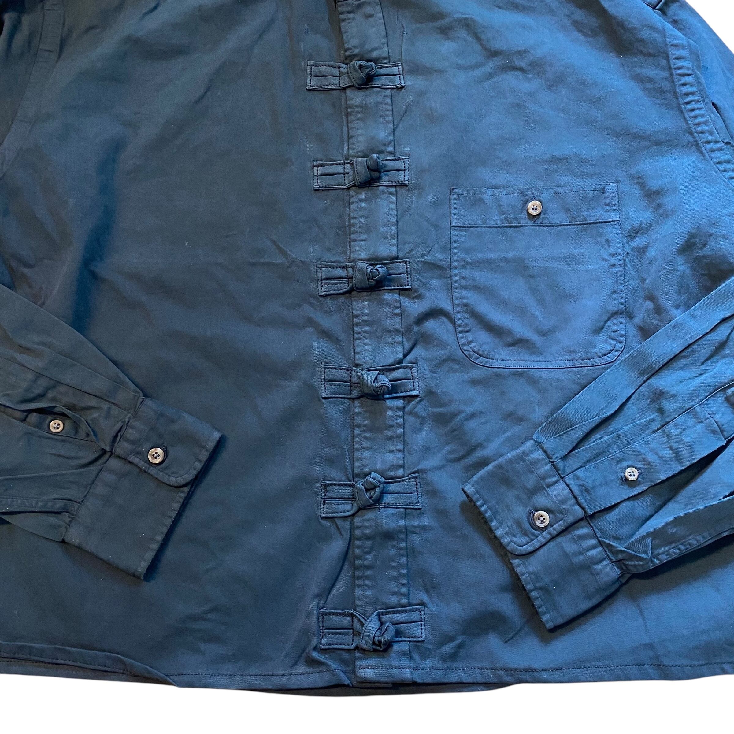 チャイナボタンが個性的なリメイクシャツになります。