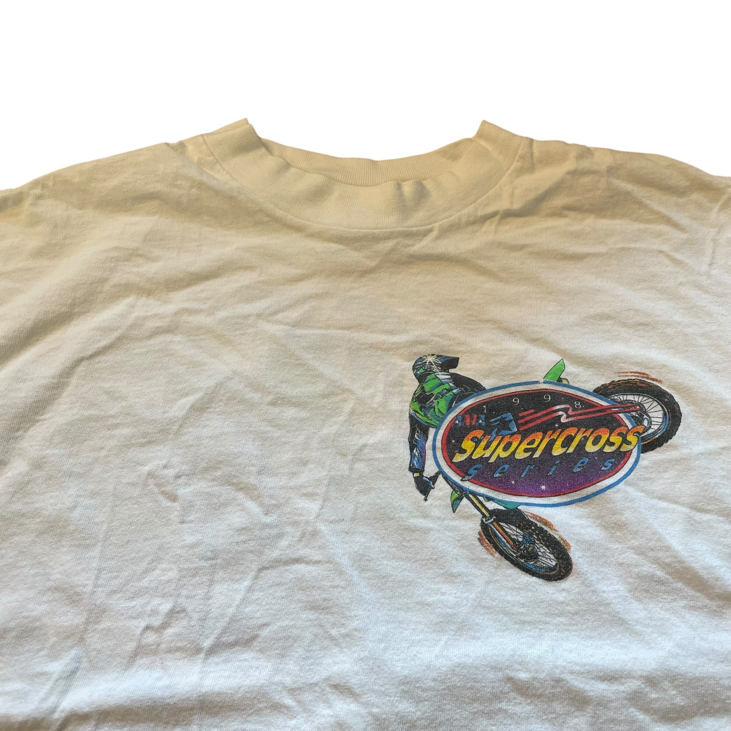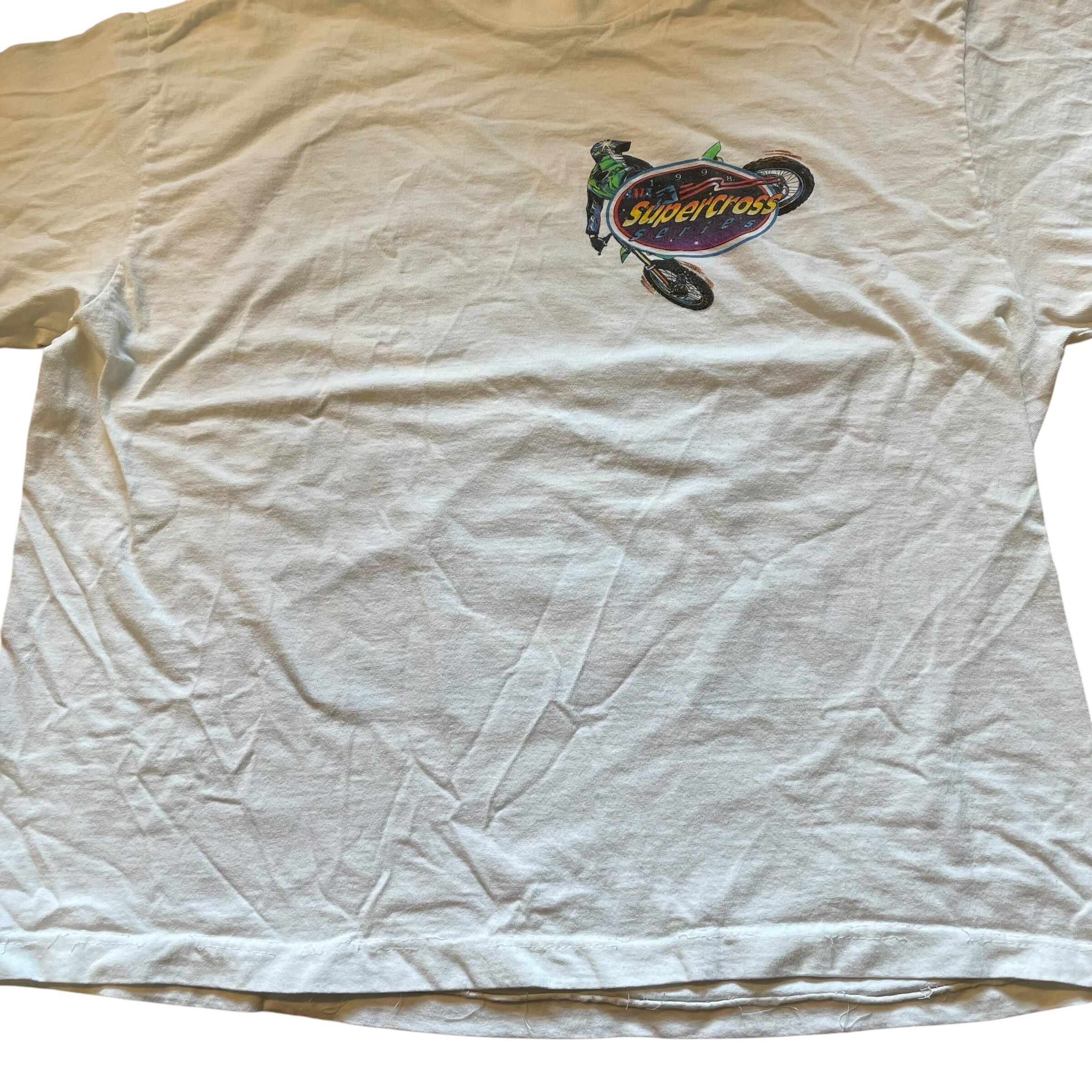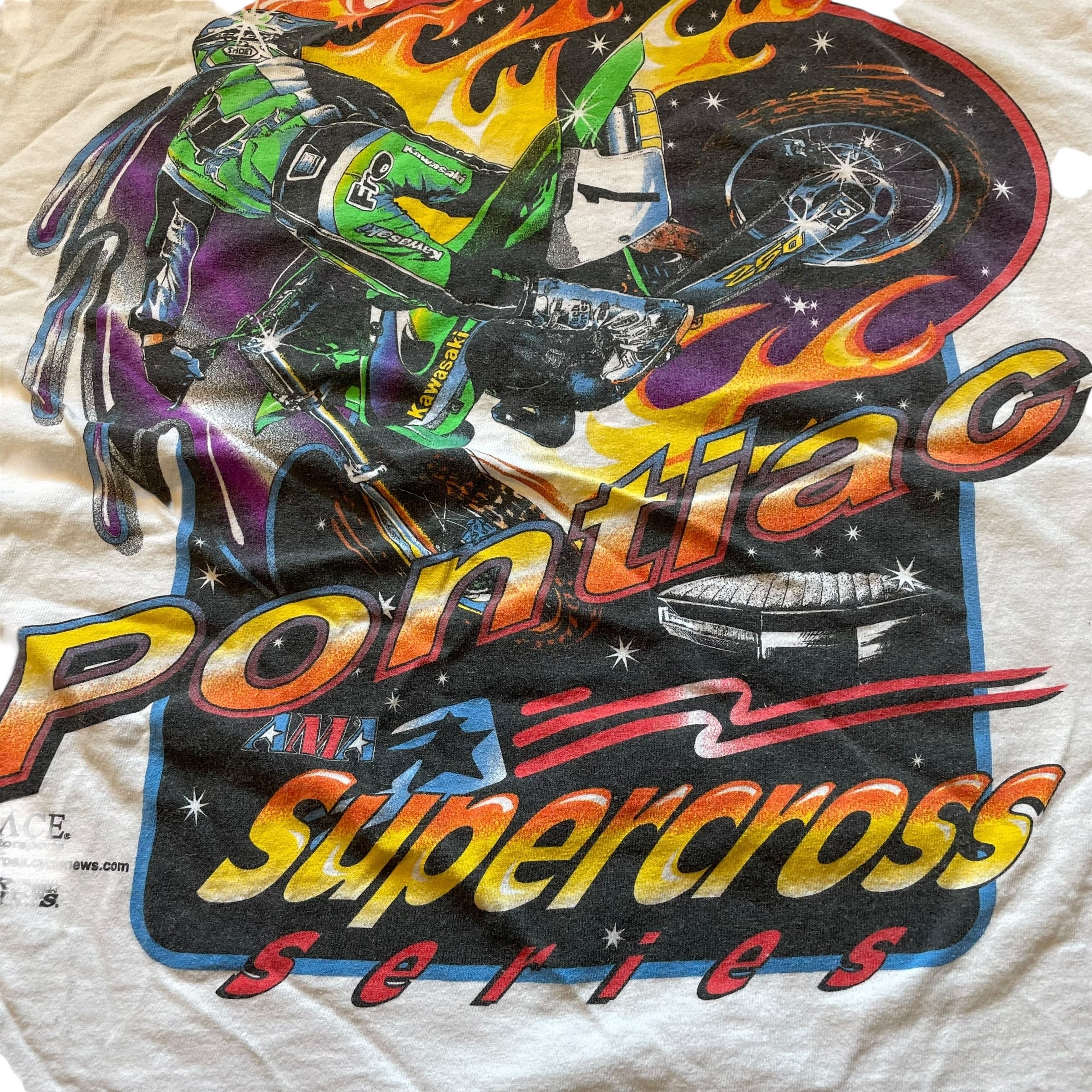 フロントにはライダーとSupercrossのロゴ、バックには燃えるようなバイクジャンプシーンがド迫力でプリント!
