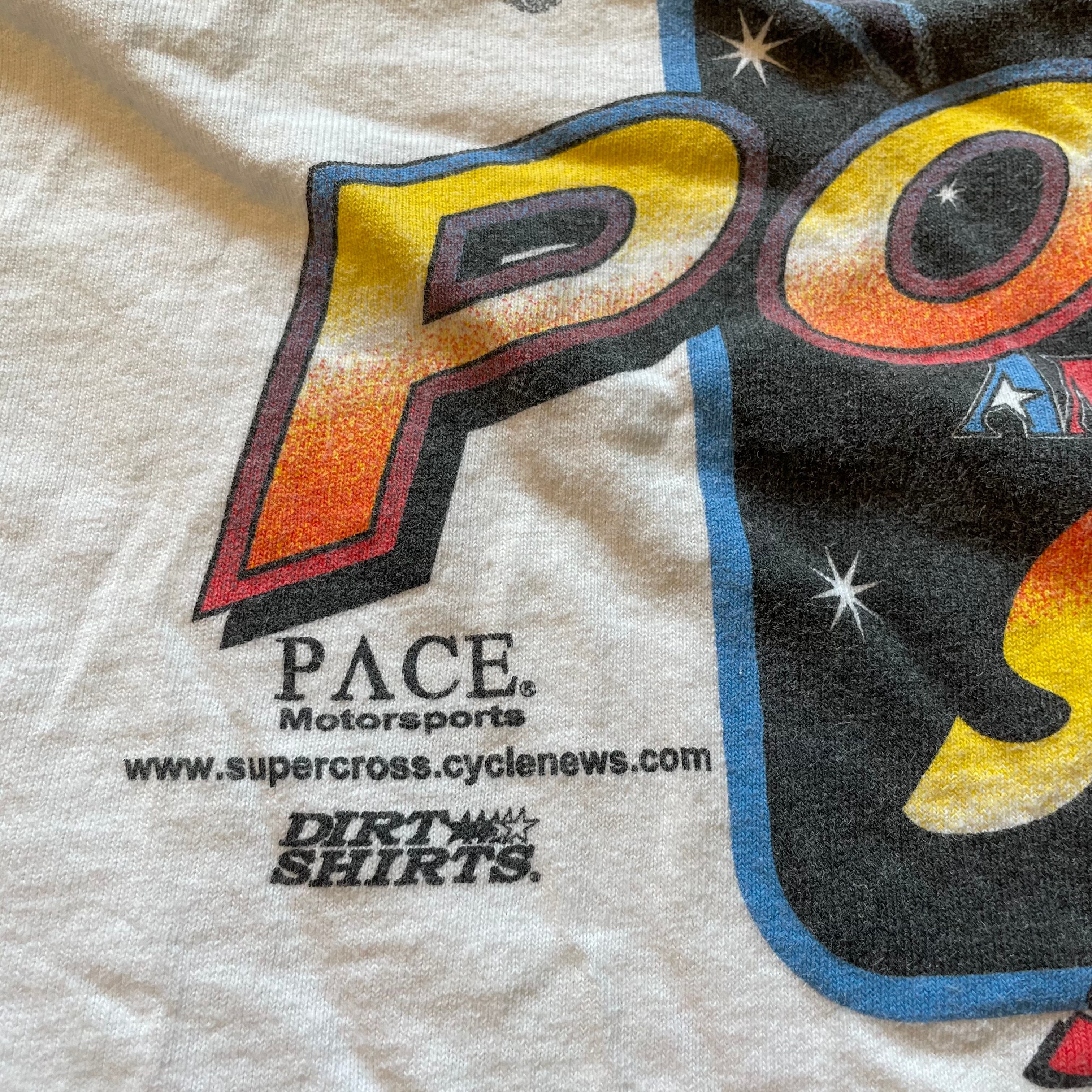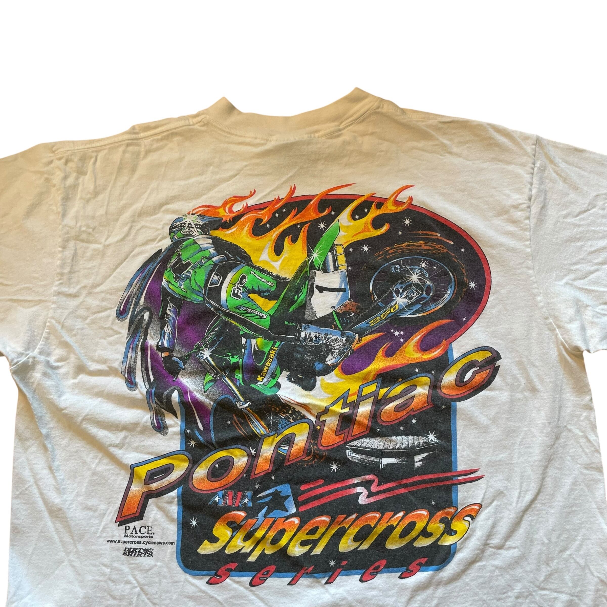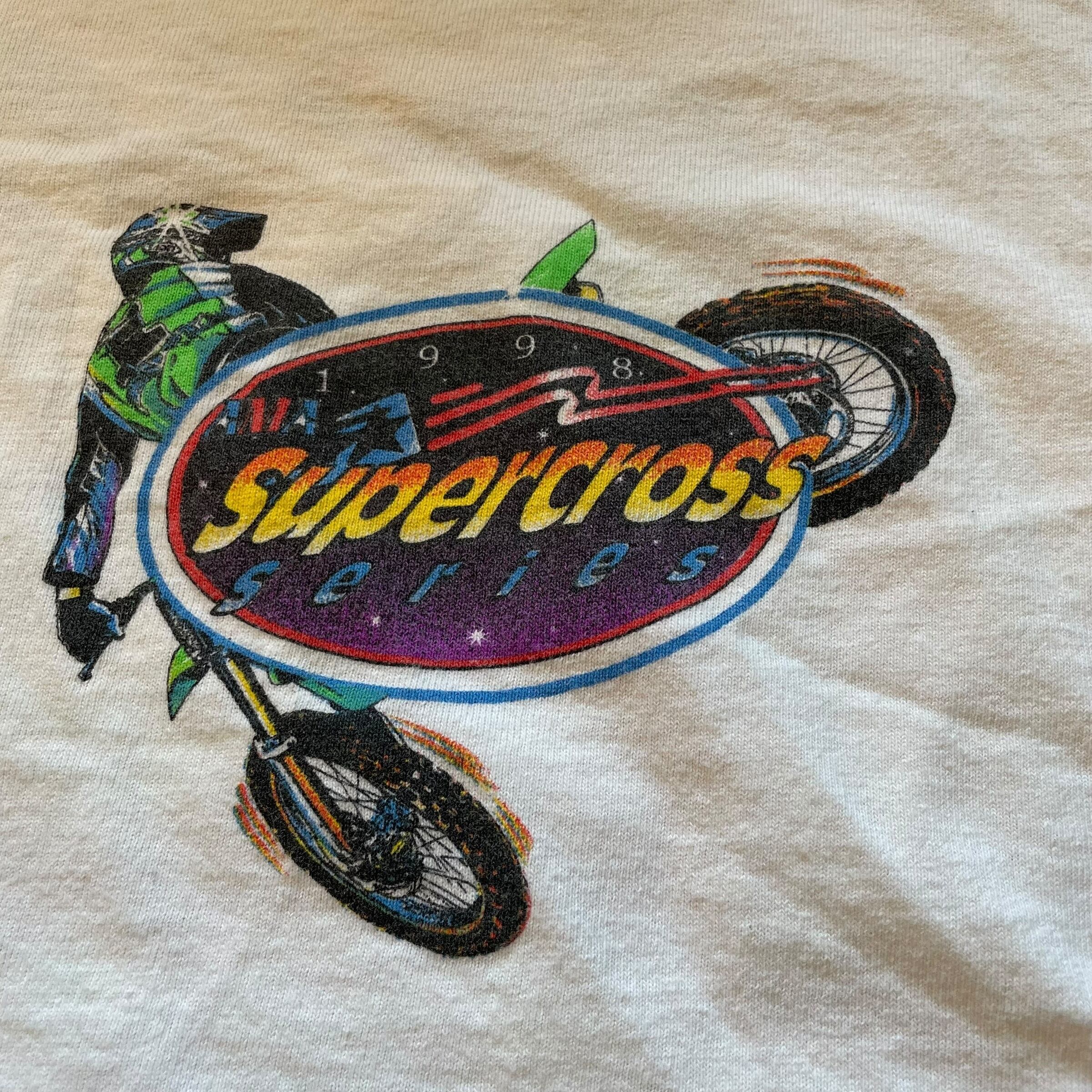 フロントにはライダーとSupercrossのロゴ、バックには燃えるようなバイクジャンプシーンがド迫力でプリント!