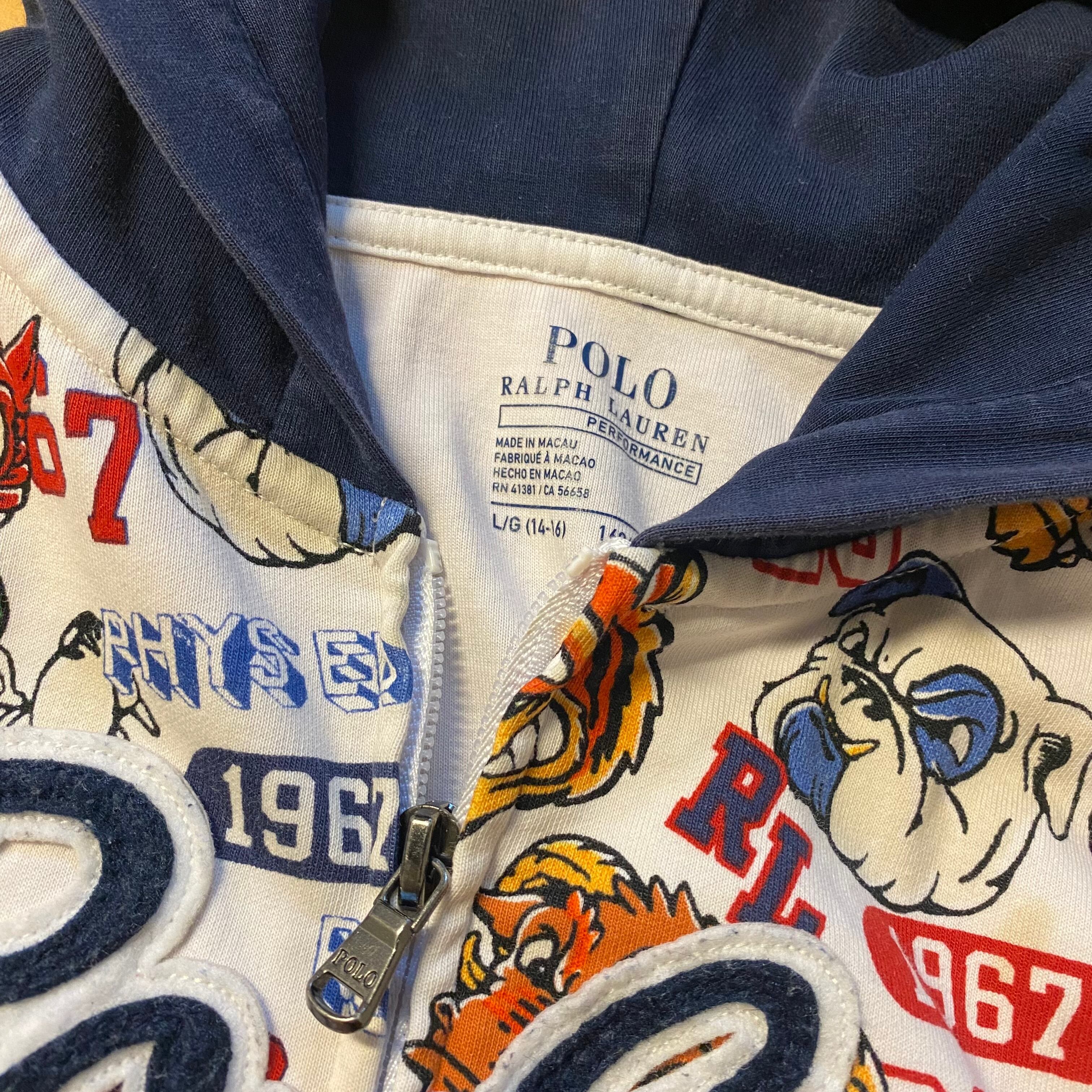 Polo Ralph Lauren All Over Print Hoodie Kids L 160 Rare