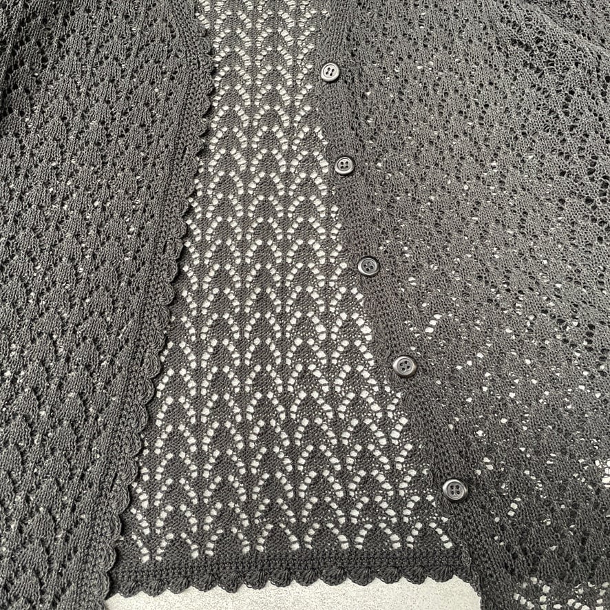 トレンドの透かし編みカーディガンになります。