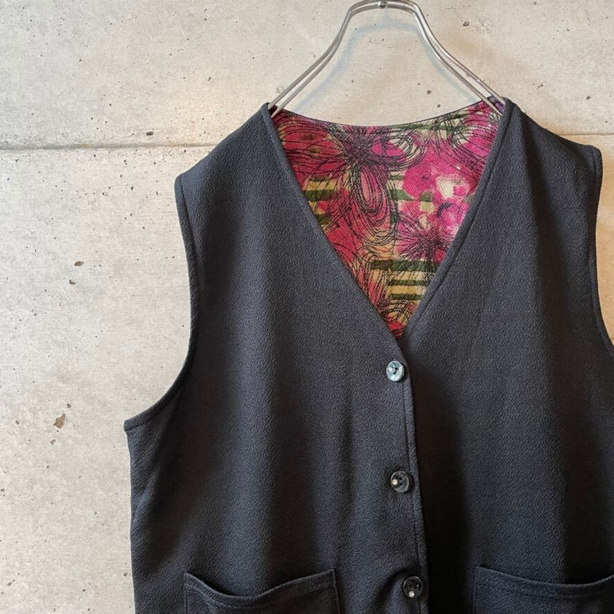 無地の黒と総柄の対象的なデザインで着こなしに合わせて選択していただけます。