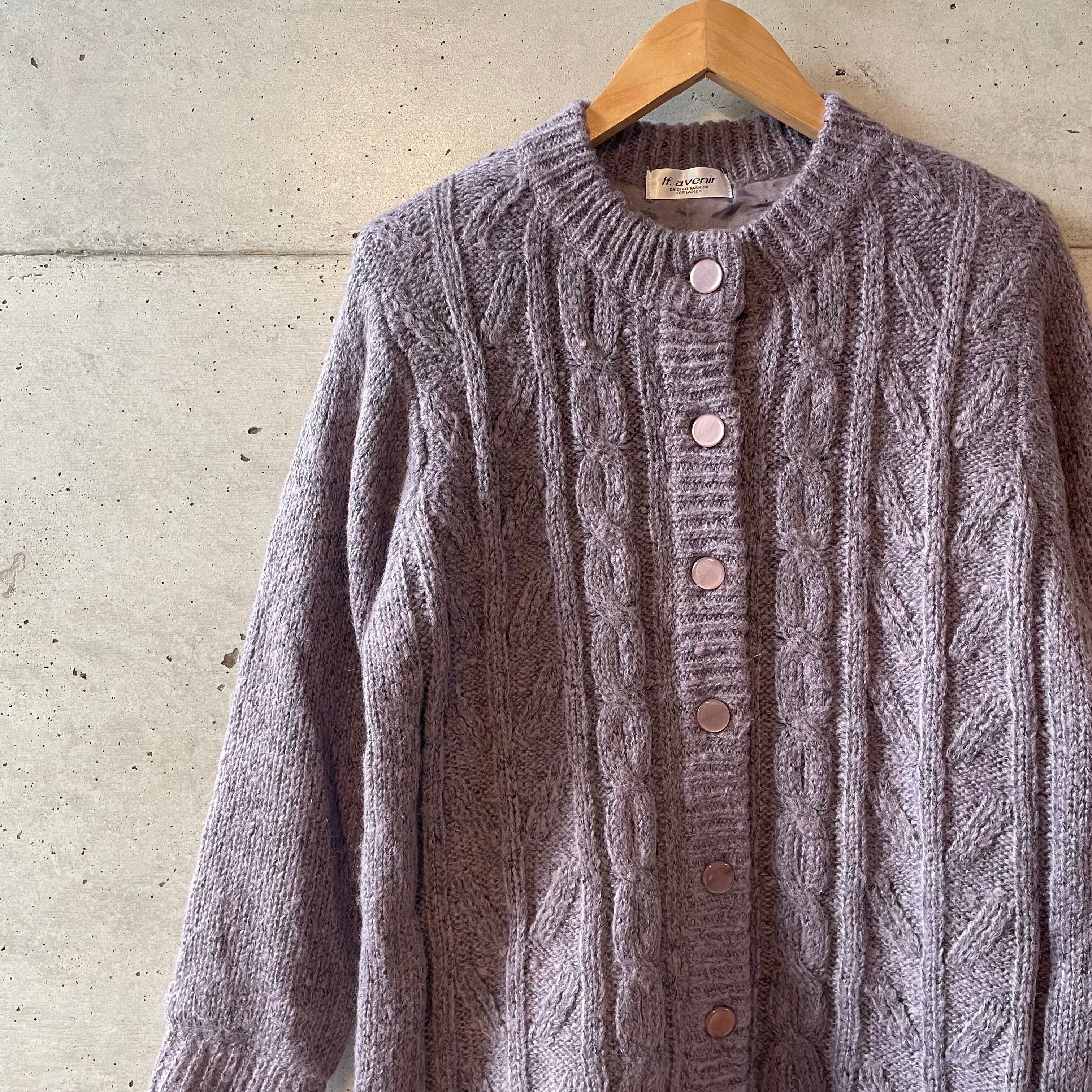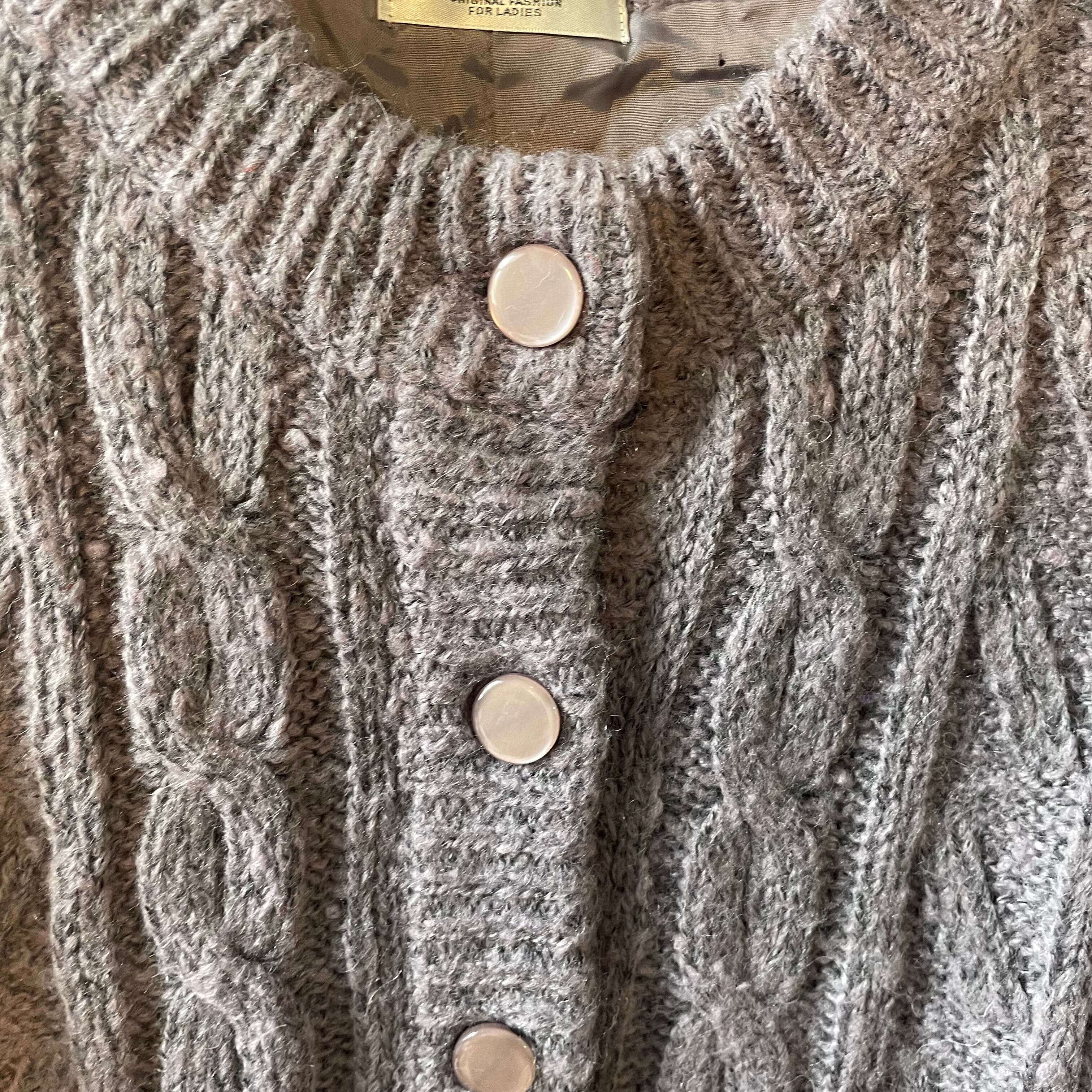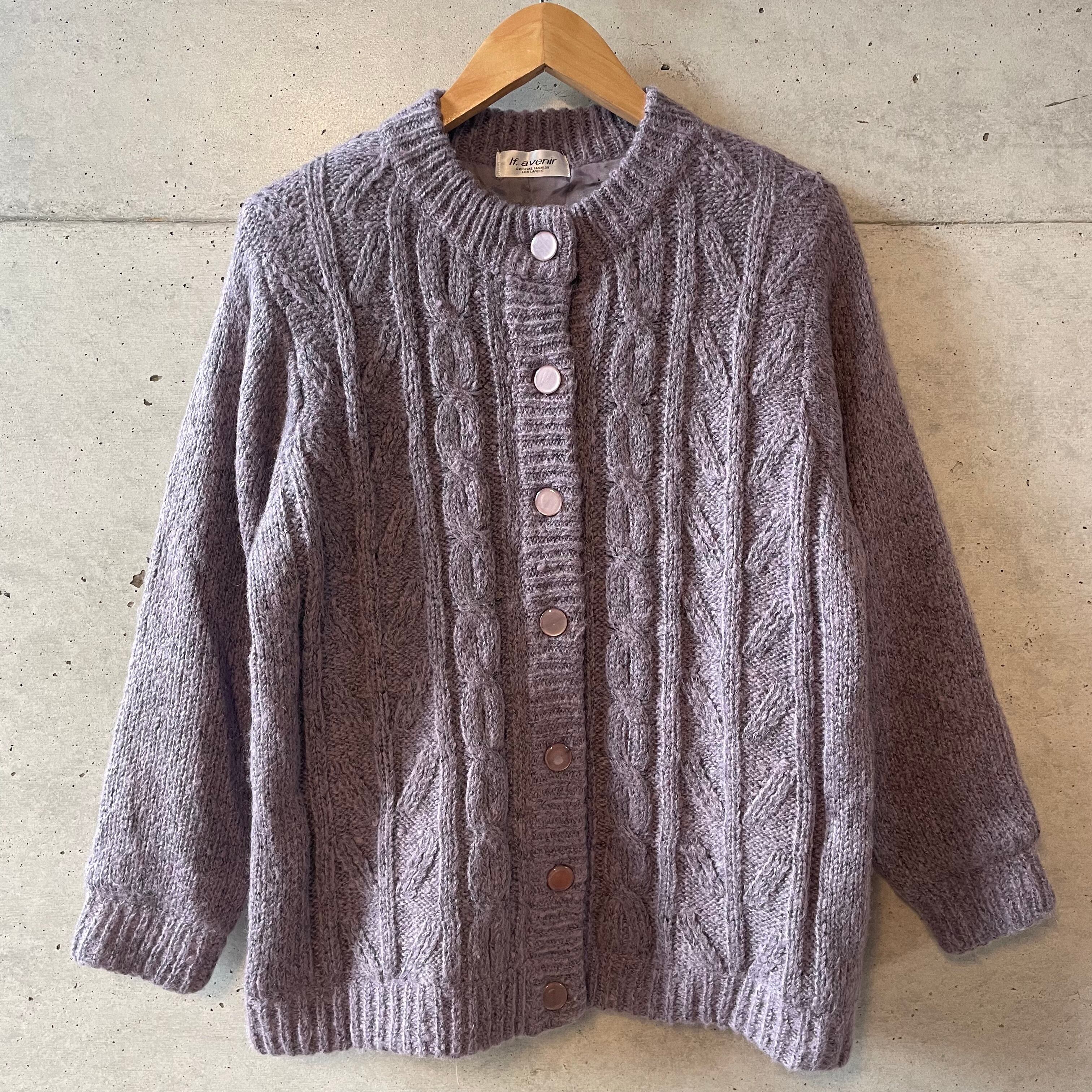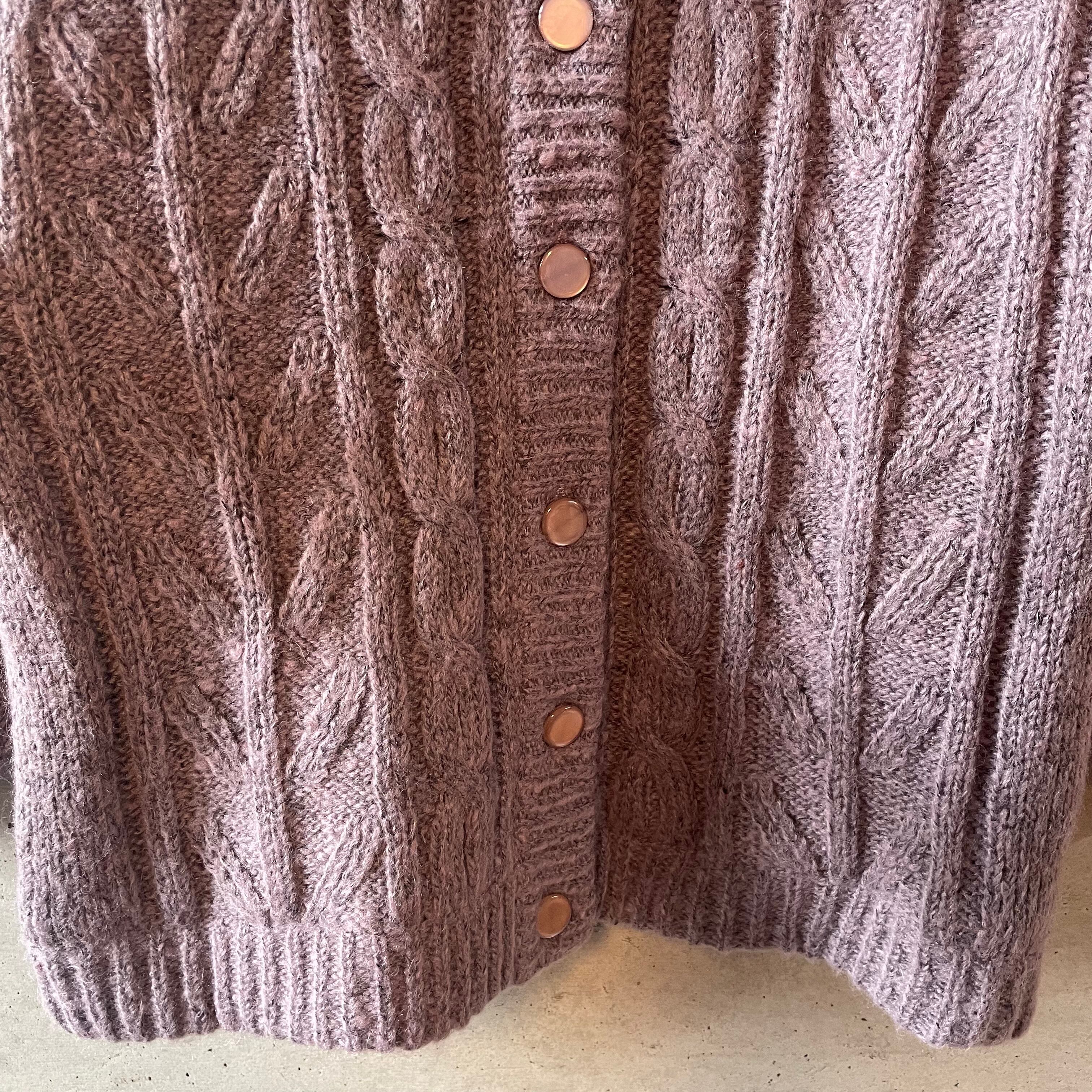 ケーブル柄、大きめのボタン、丸首仕様がとてもレトロでかわいいです。