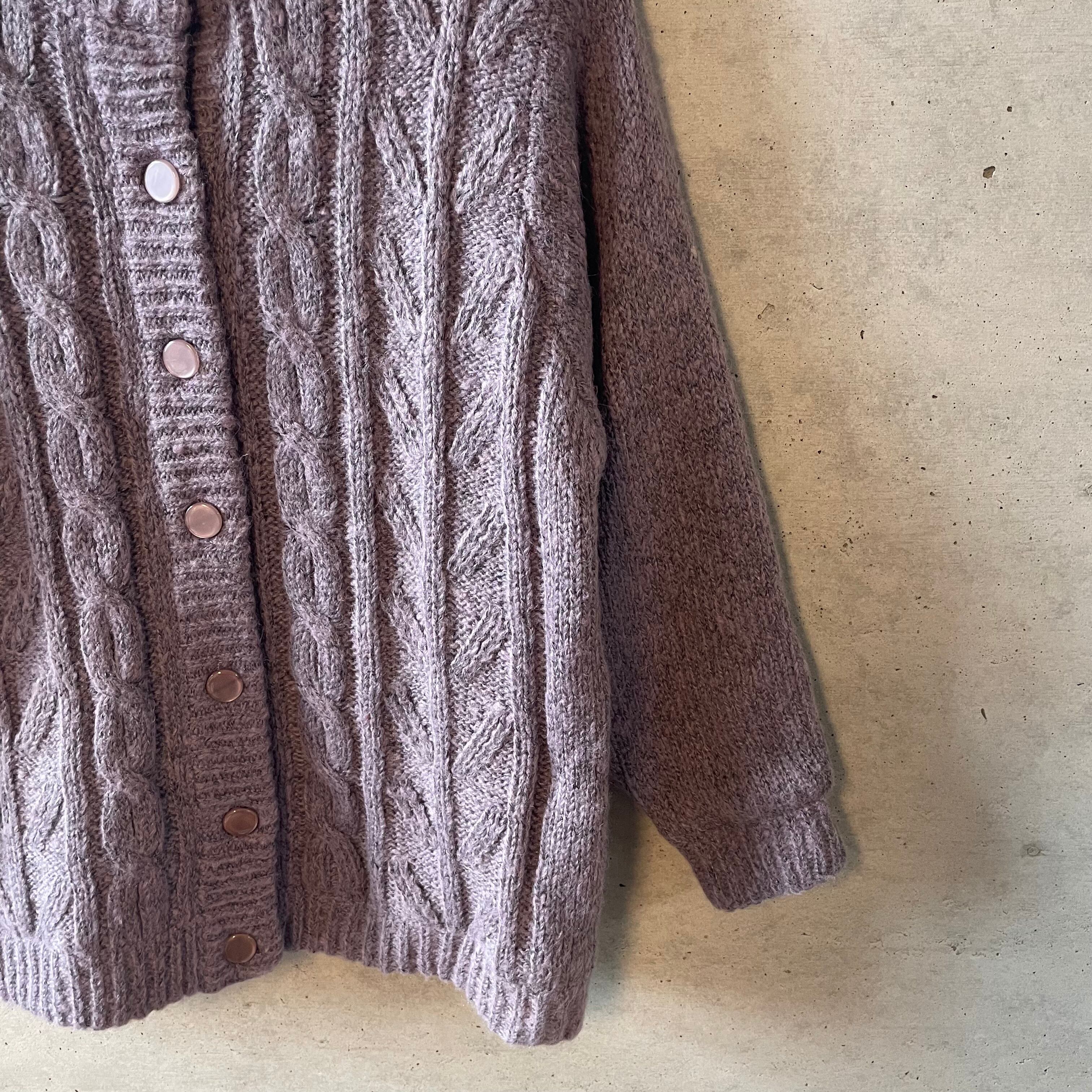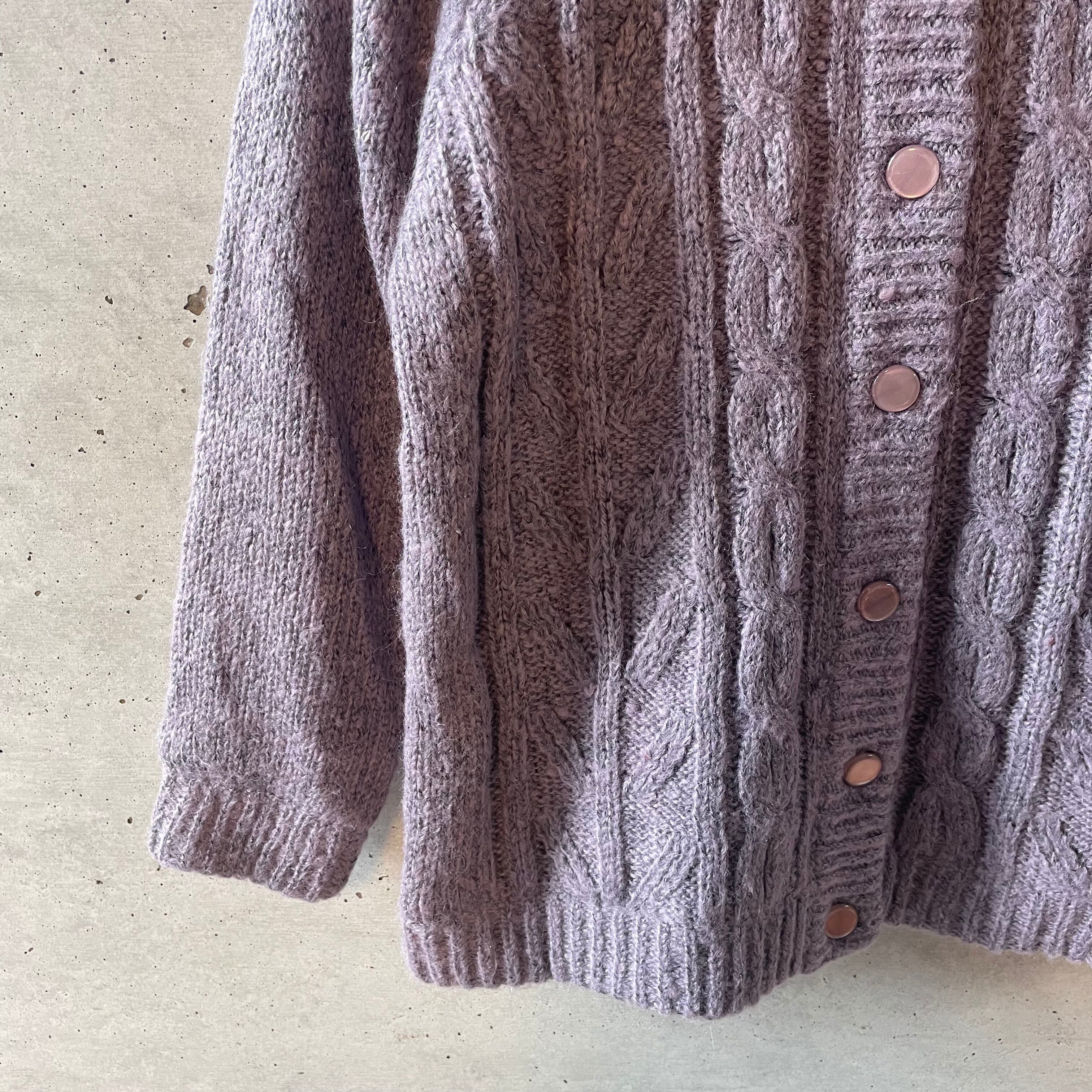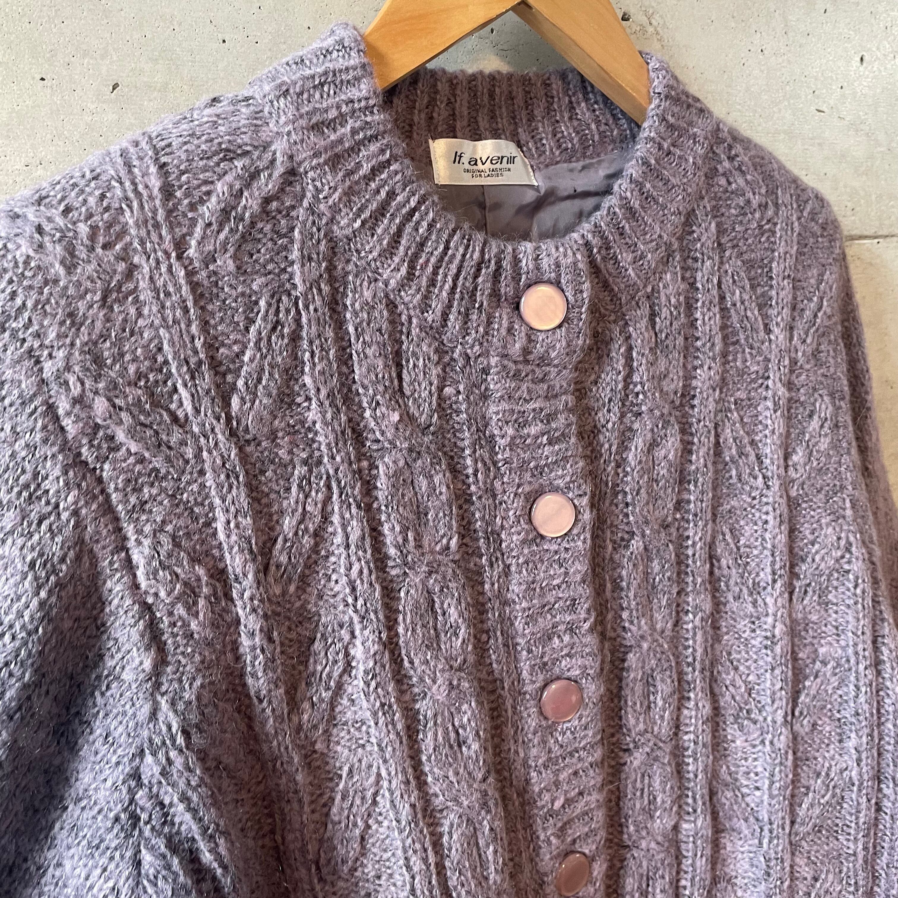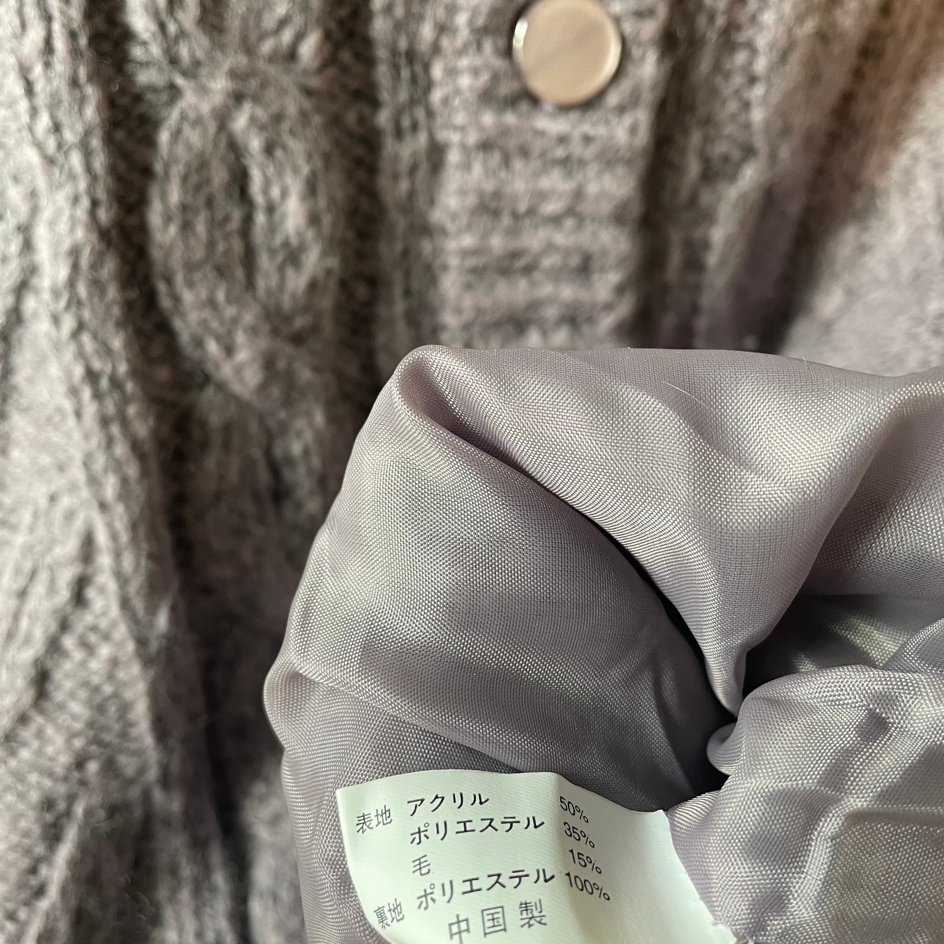 ケーブル柄、大きめのボタン、丸首仕様がとてもレトロでかわいいです。