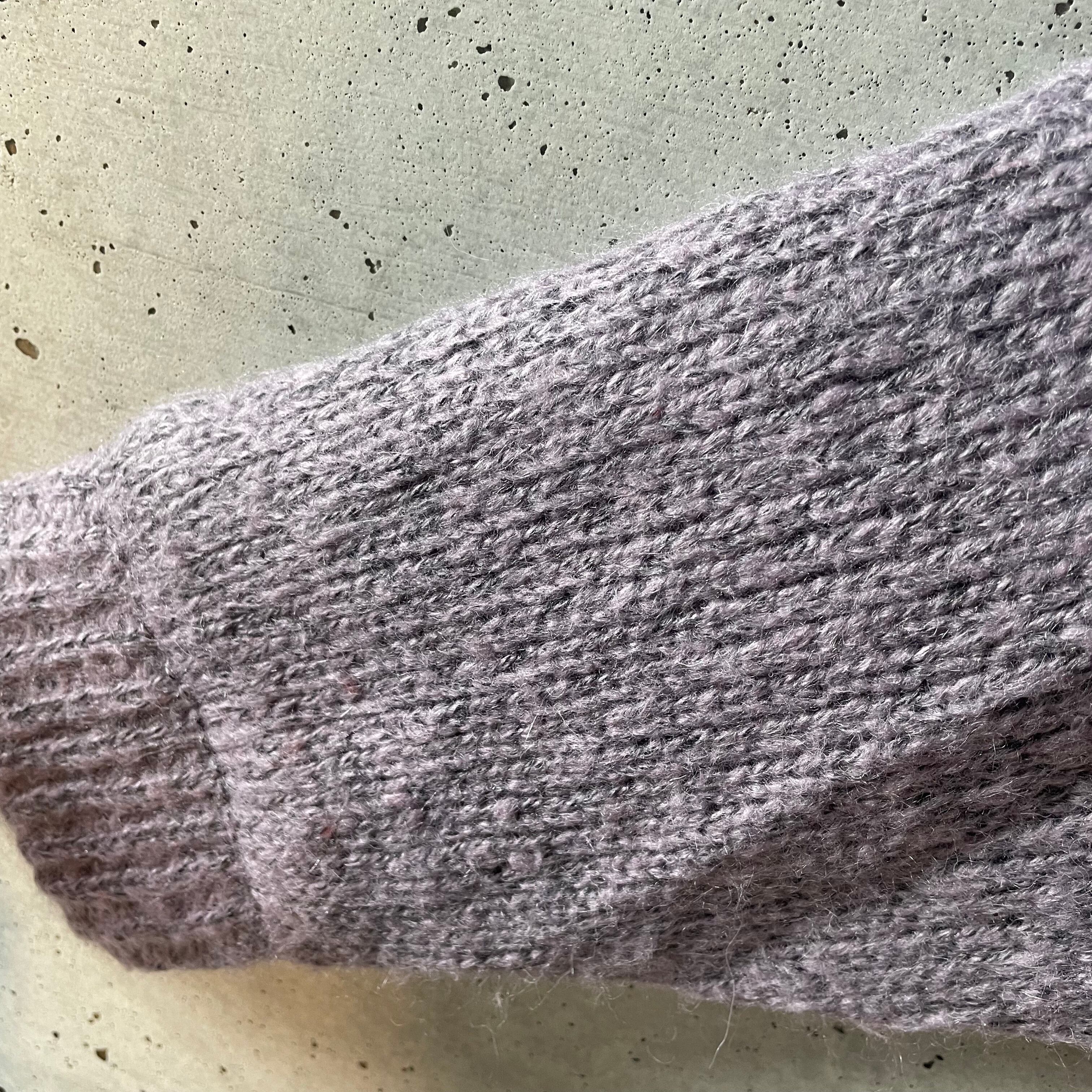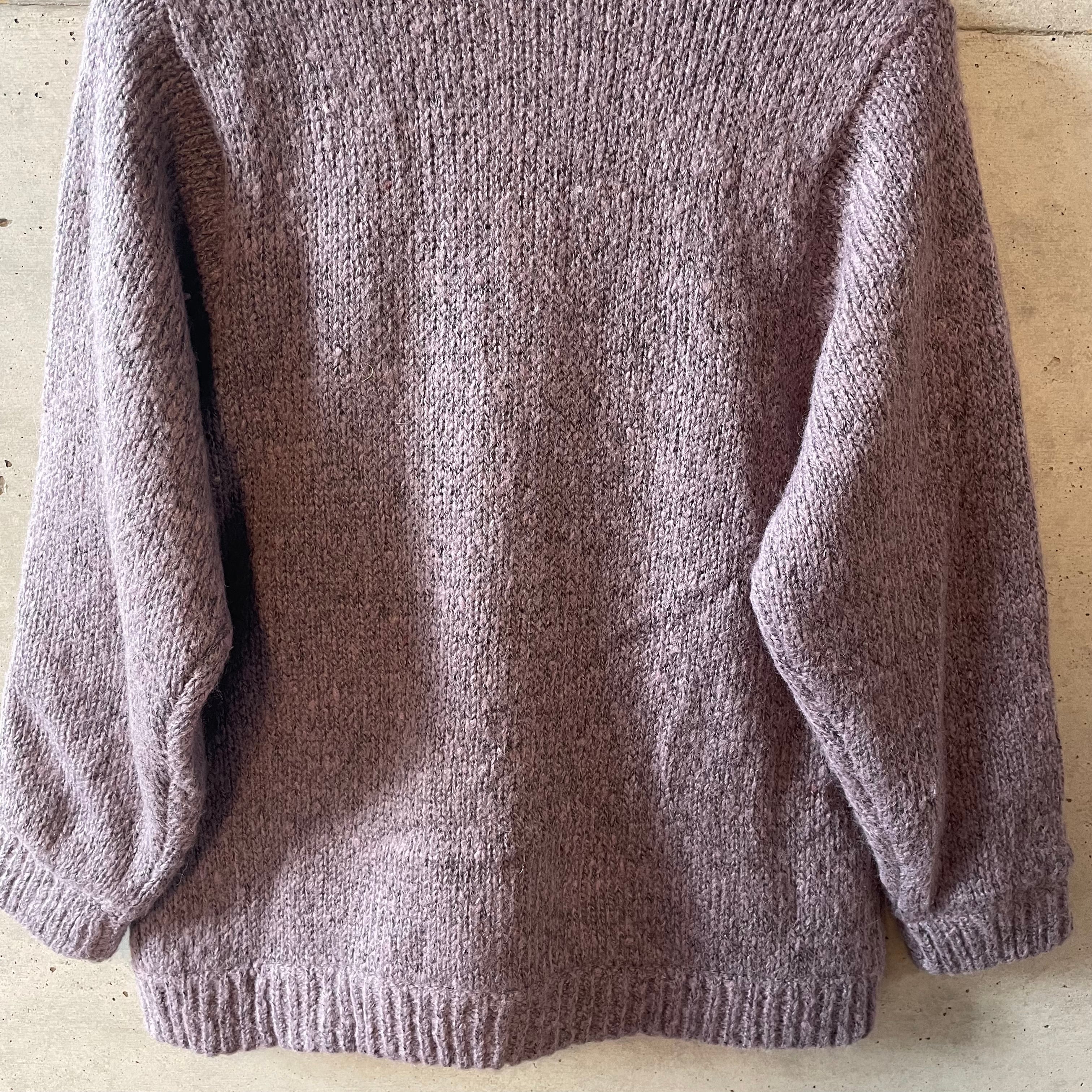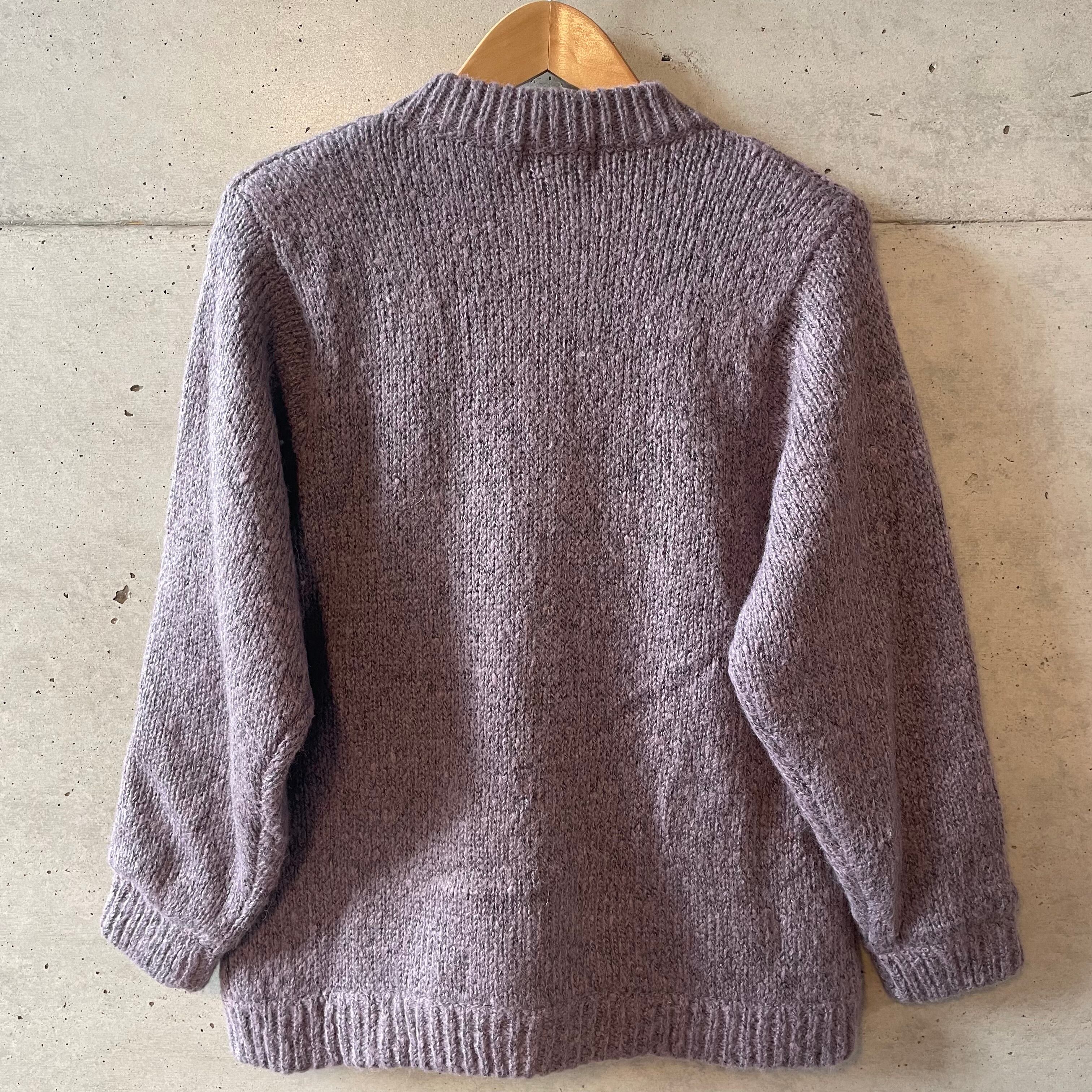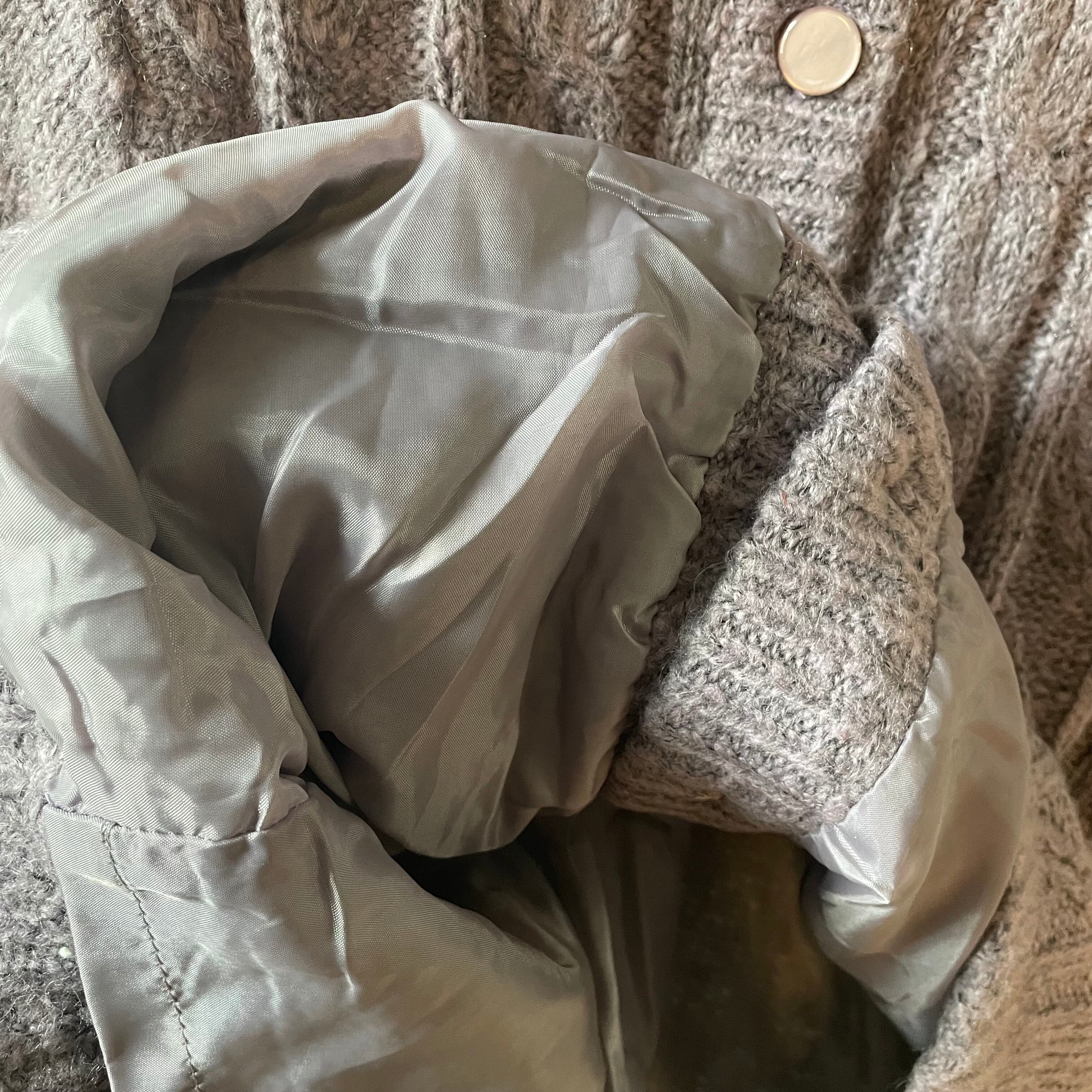 ケーブル柄、大きめのボタン、丸首仕様がとてもレトロでかわいいです。