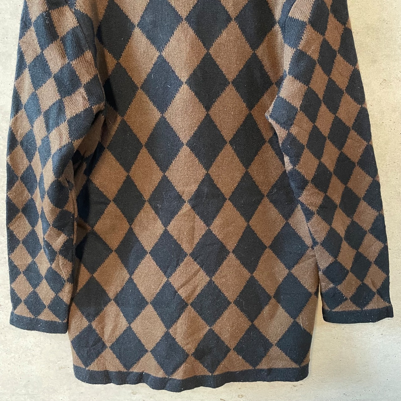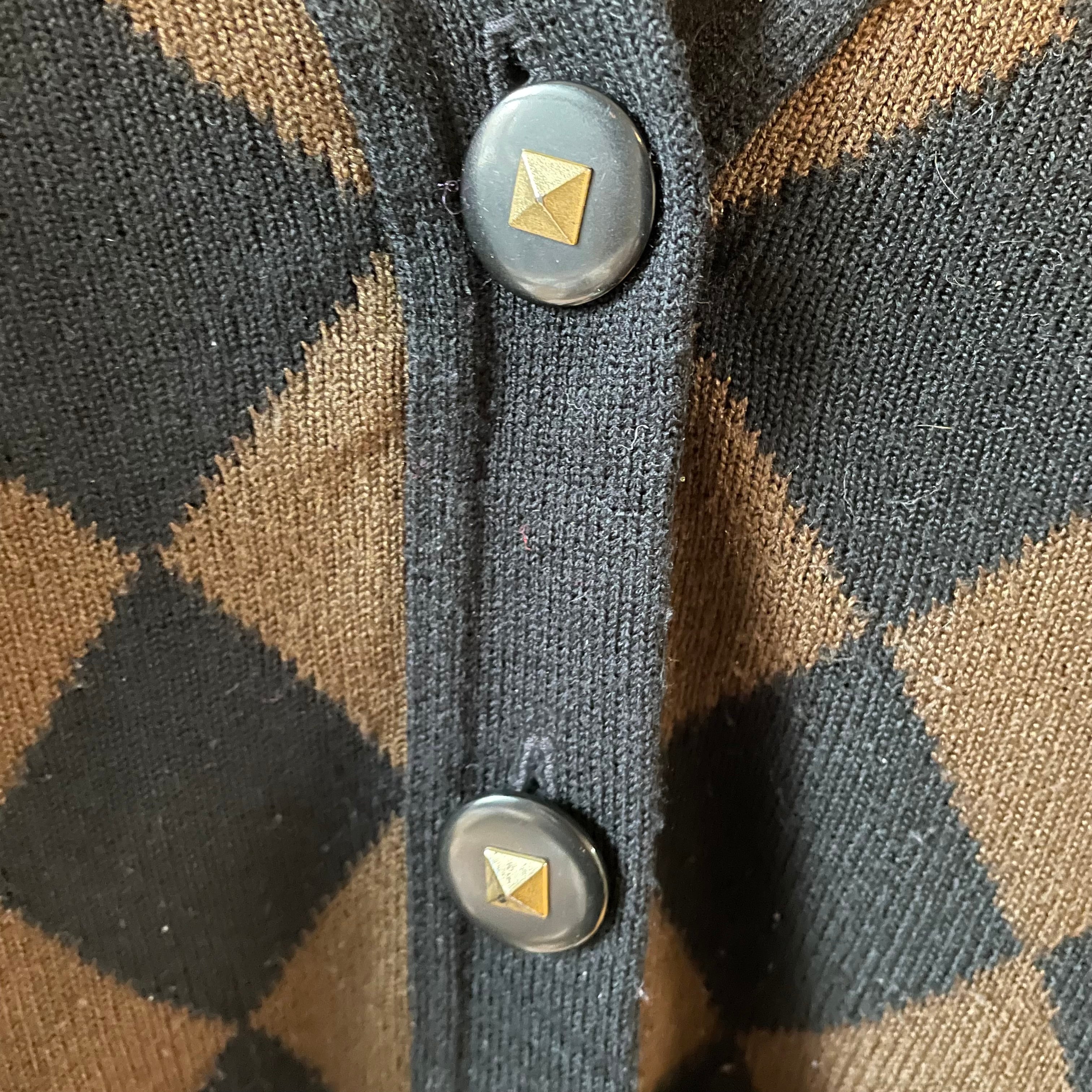 アーガイル柄がかわいらしいニットカーディガンになります。