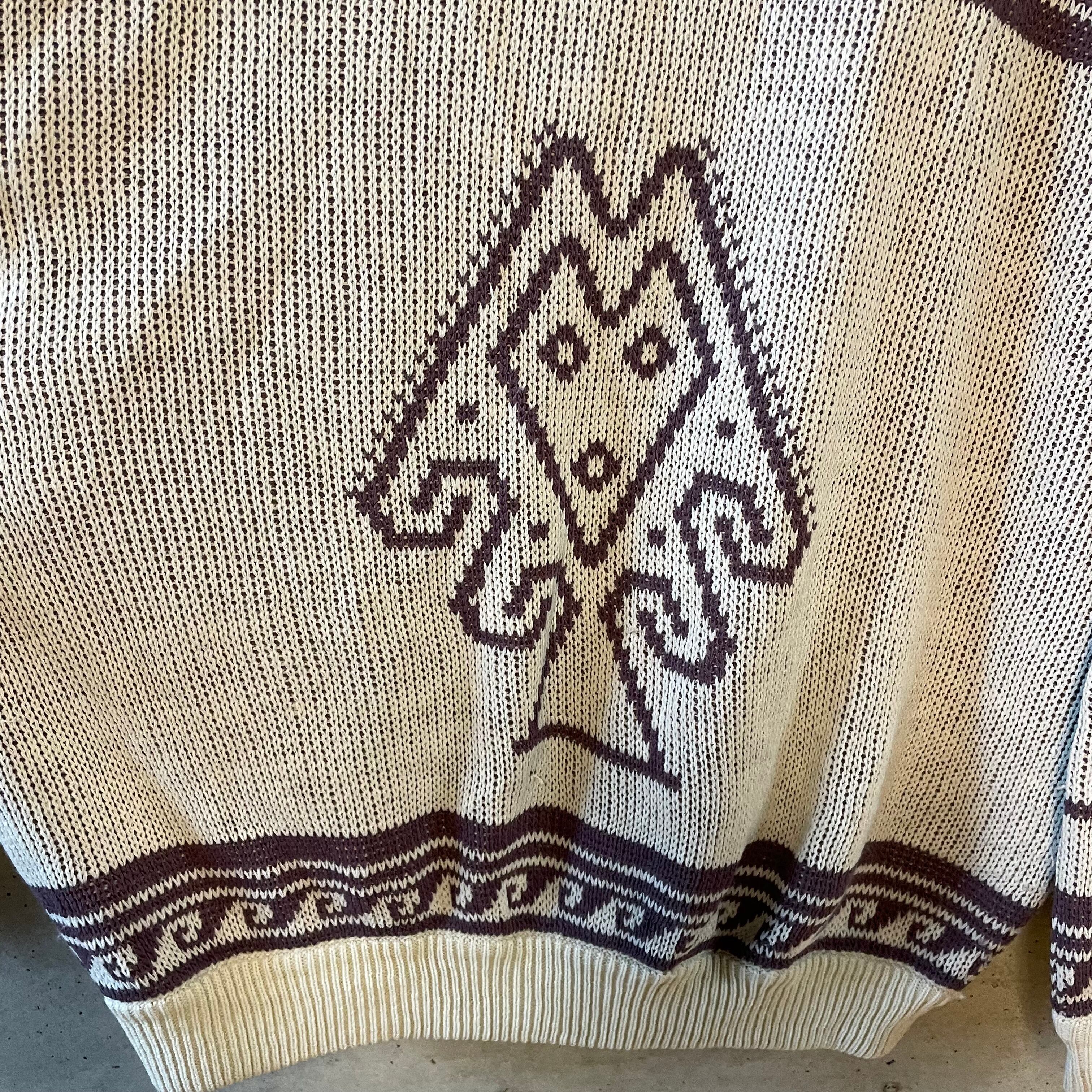 レトロな雰囲気漂う柄ニットになります。