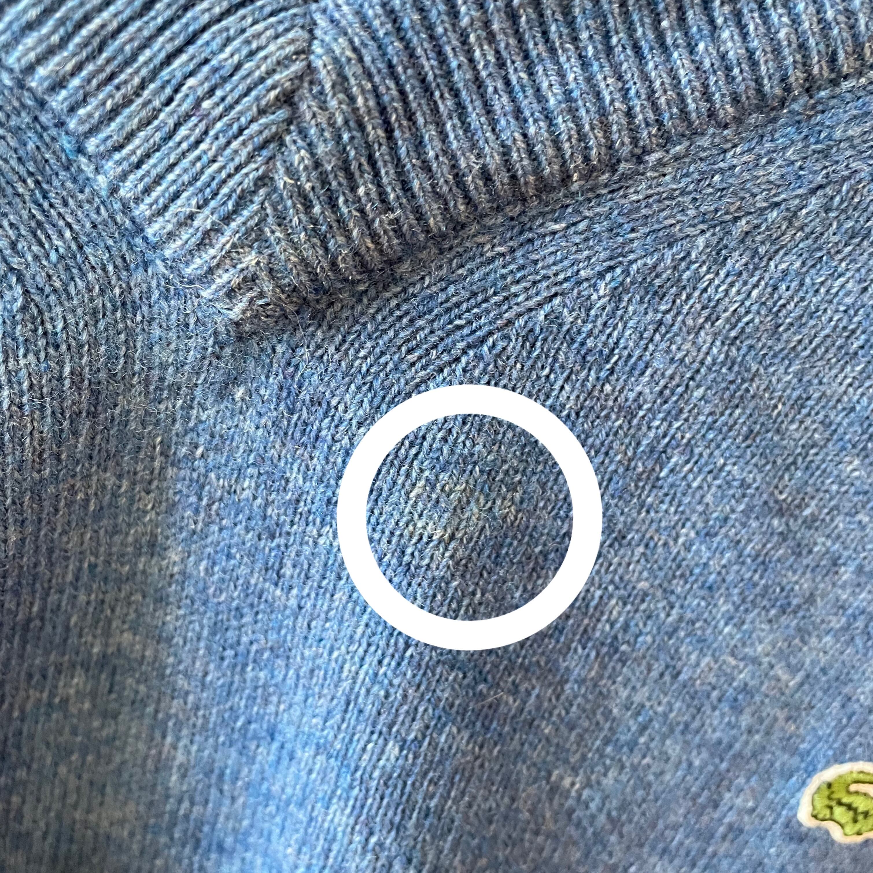※Vネックの襟ぐり下部付近に画像◯のような汚れがあります。